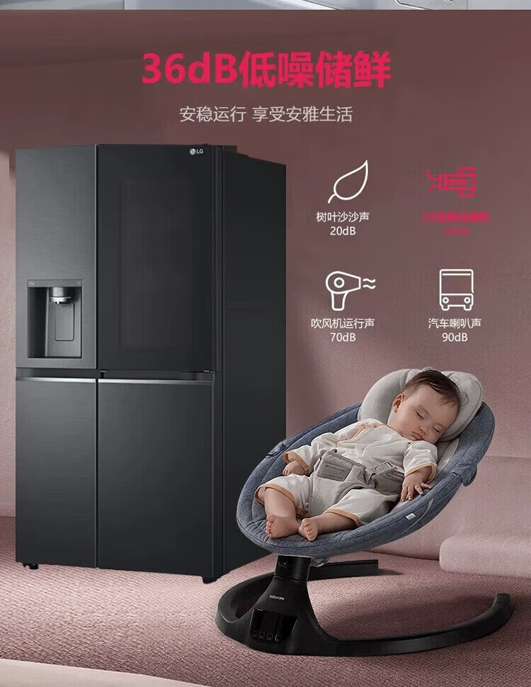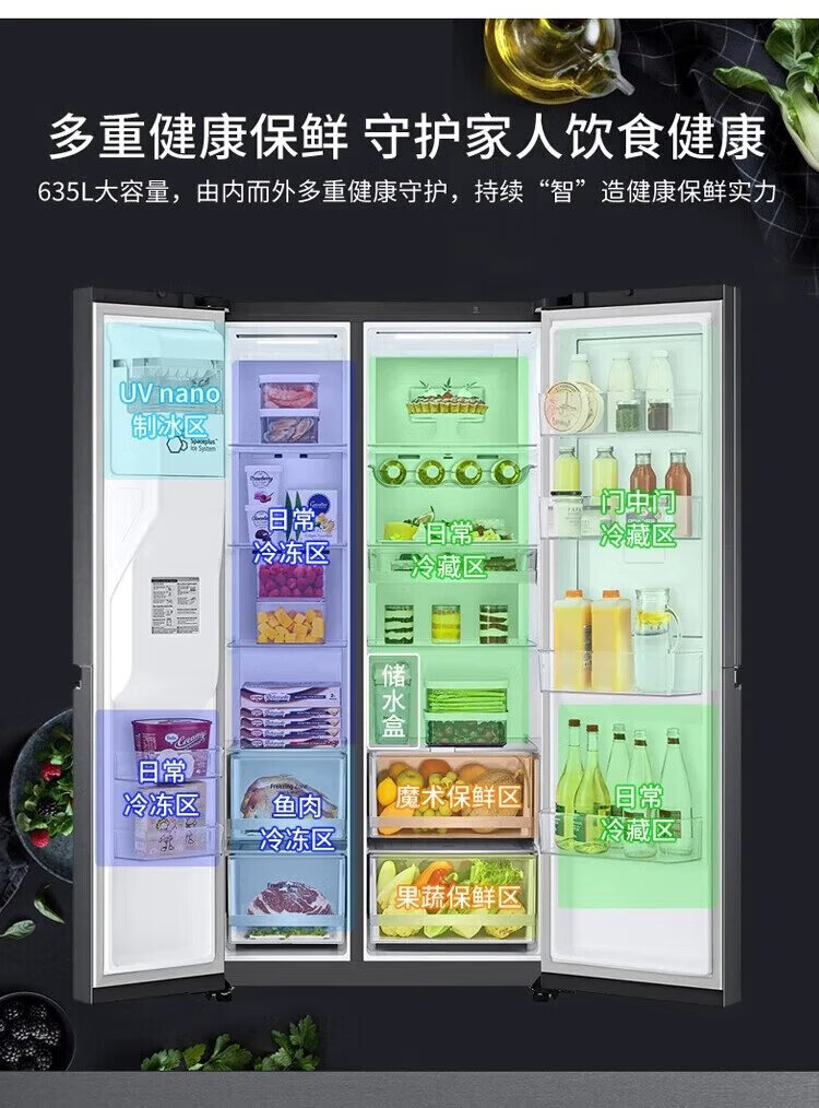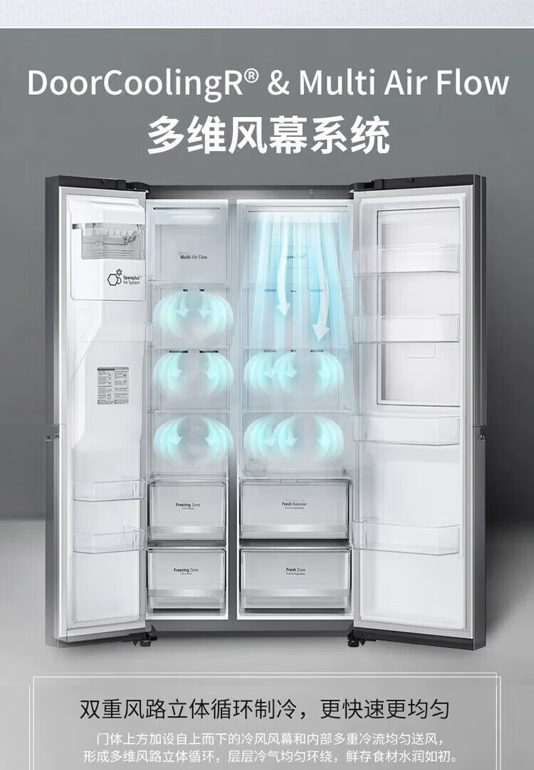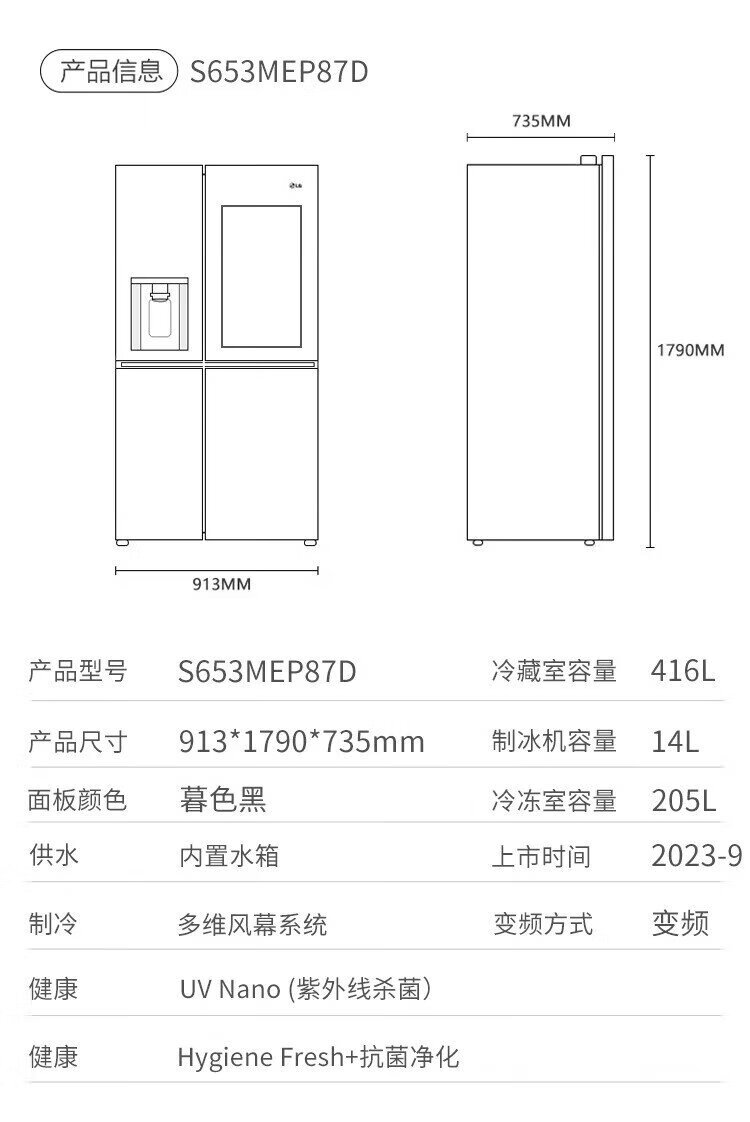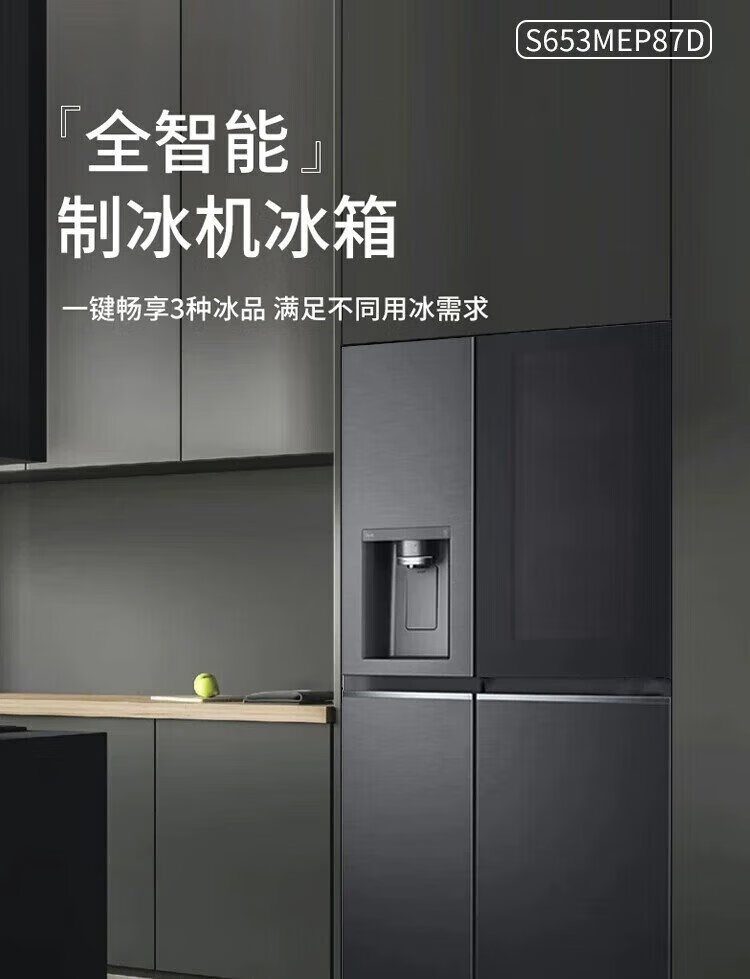 LG635L side-by-side refrigerator automatic ice maker with see-through window, air-cooled, frost-free, energy-saving, frequency conversion, household large capacity 87D see-through window ice maker, black S653MEP87D