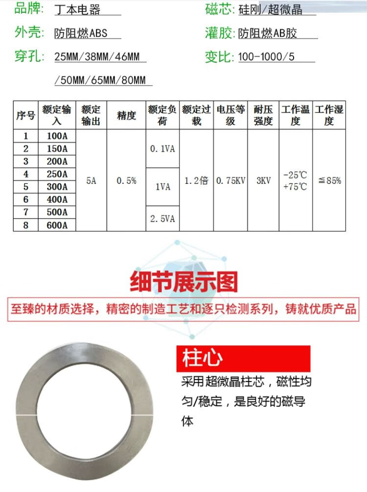 Dingben open type current transformer opening and closing type 0.5 level DBKCT38/25/50 measurement high precision 380V 38mm hole -400/5
