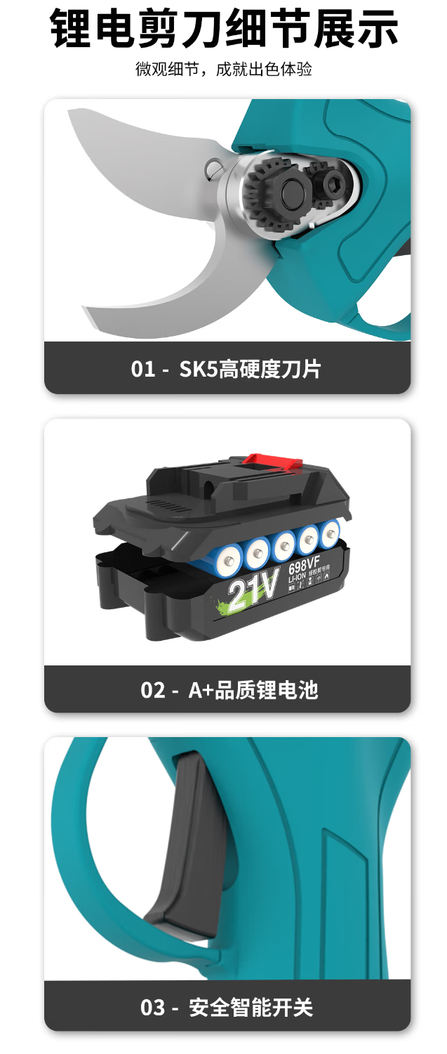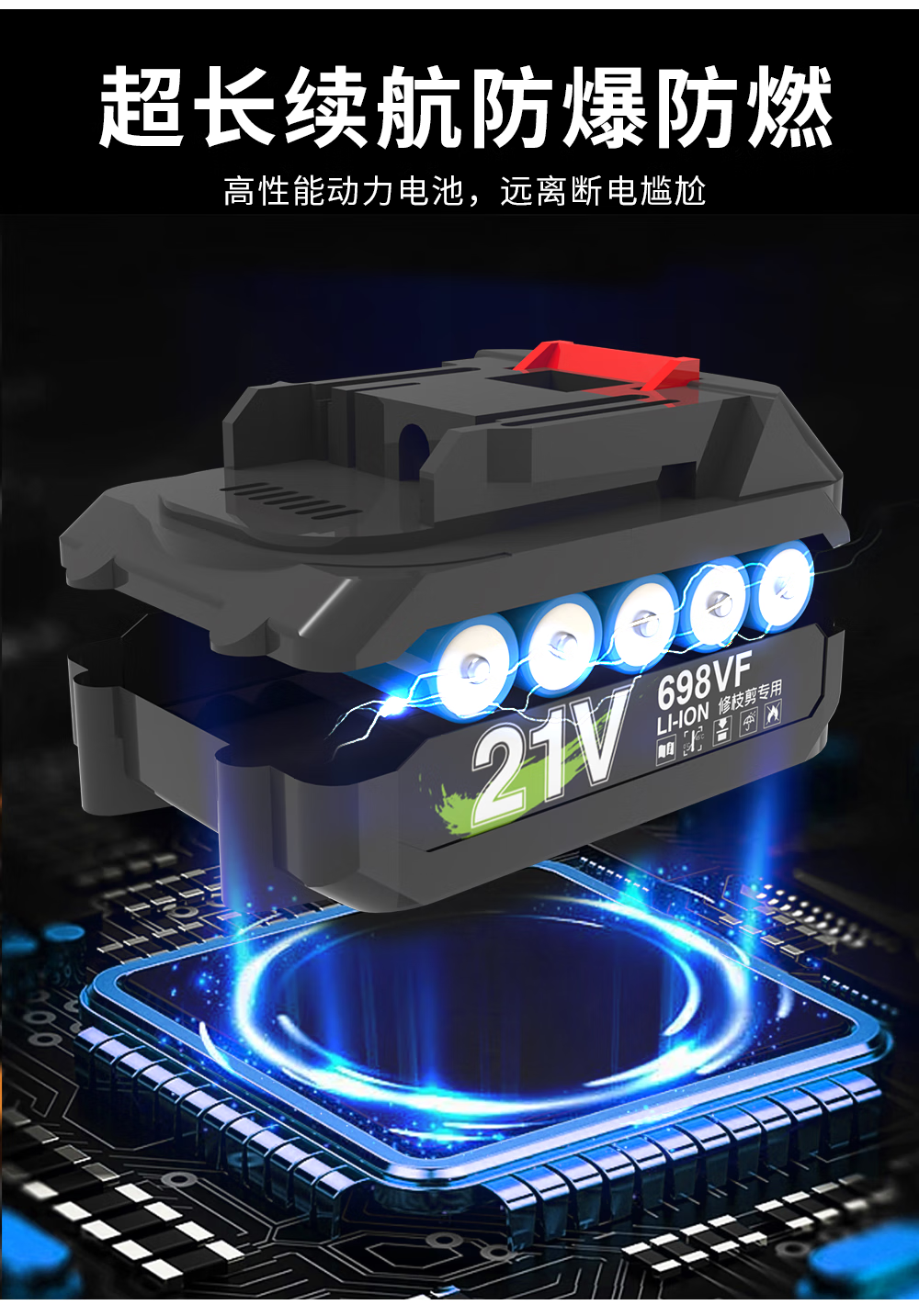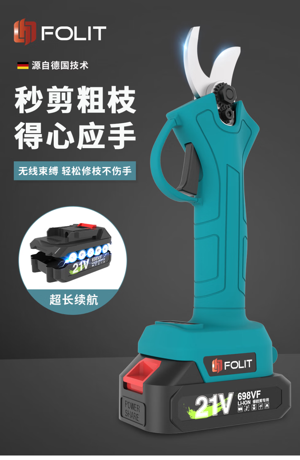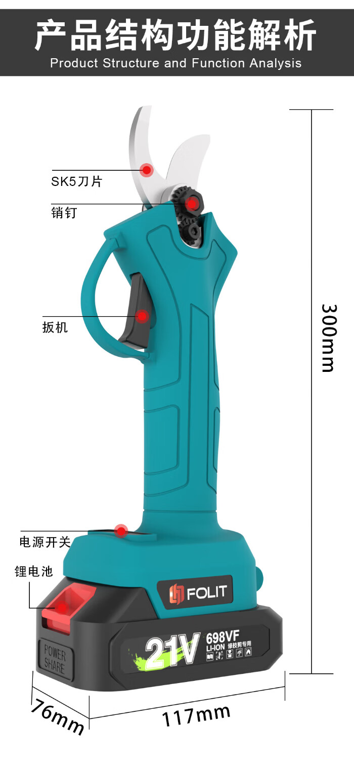 FOLIT electric scissors to cut branches, lithium battery rechargeable 21V electric pruning shears, garden fruit tree scissors, gardening branch shears, one power, one charge | red plastic box, Vickers interface