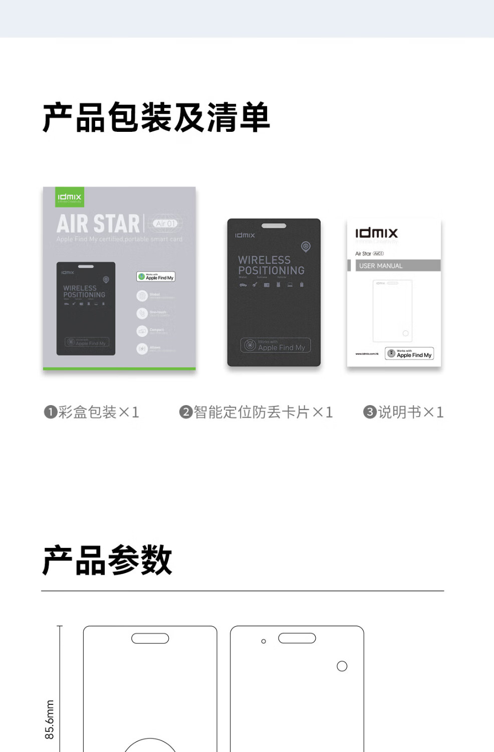 IDMIX barley airtag positioning tracker anti-lost device positioning card Apple certified Find my network global positioning route guide no installation required for children and the elderly escort black no installation | global positioning | one-click call | anti-tracking | one-time charge for half a year