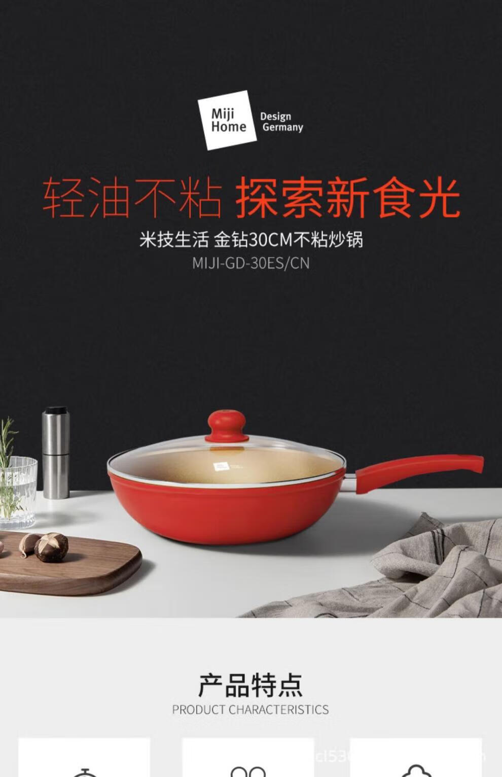 Miji Miji Life Golden Diamond Series non-stick wok 30cm electric ceramic stove special pot induction cooker wok soup pot Gold Diamond Series non-stick wok 30cm
