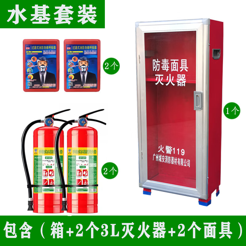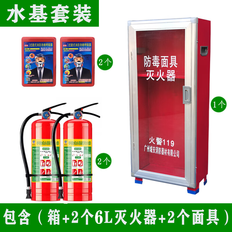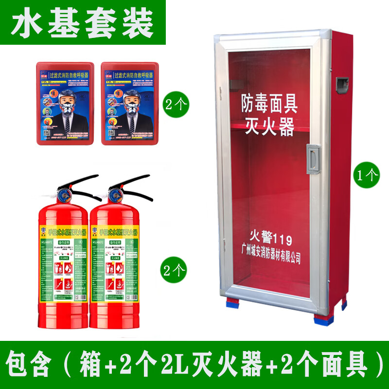 Tangan water-based fire extinguisher fire cabinet set can hold 4KG*2 water-based fire extinguishers, 2 gas masks, fire-fighting equipment box 2L water-based empty box (can hold 2L 2 + 2 masks)