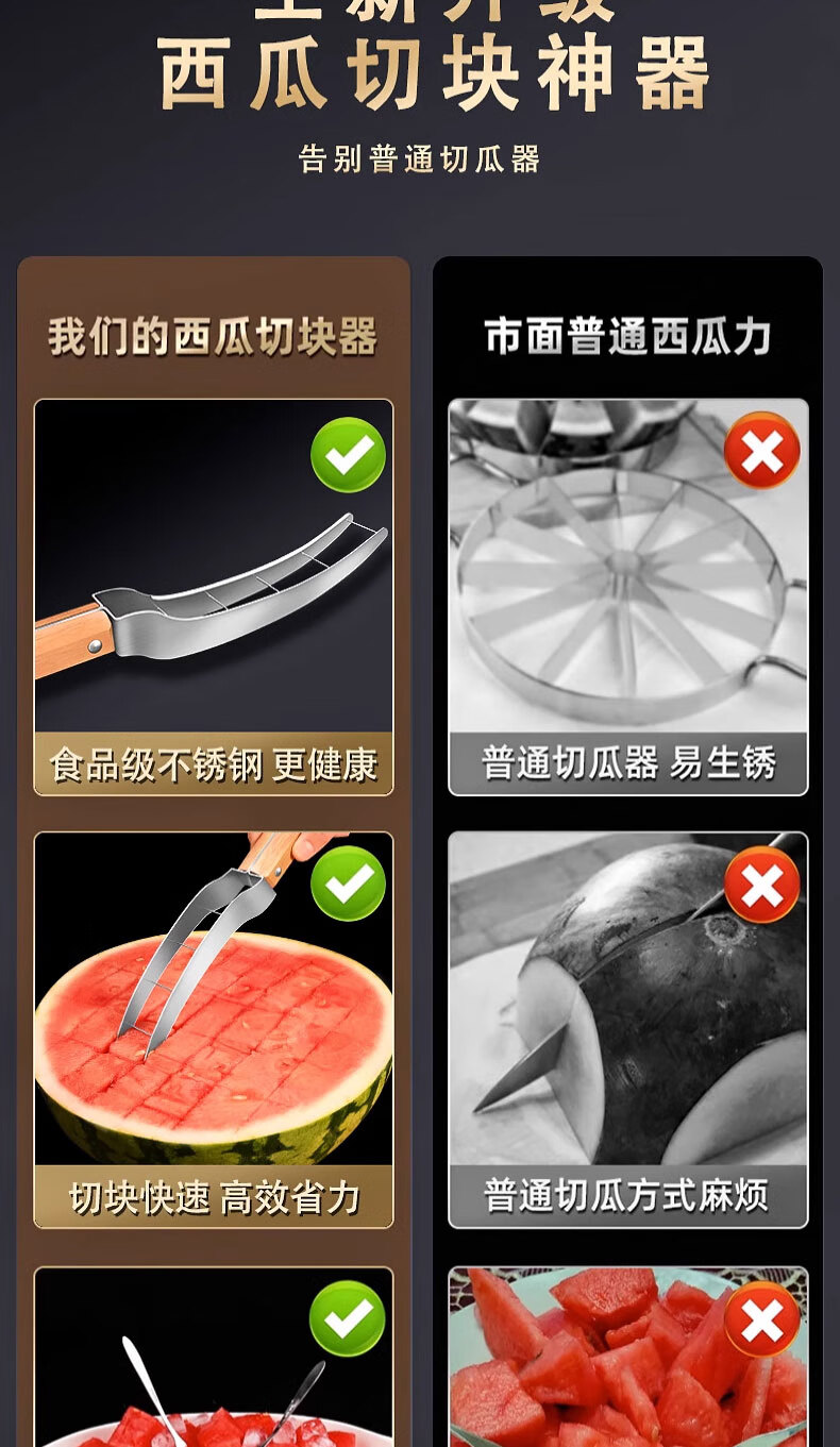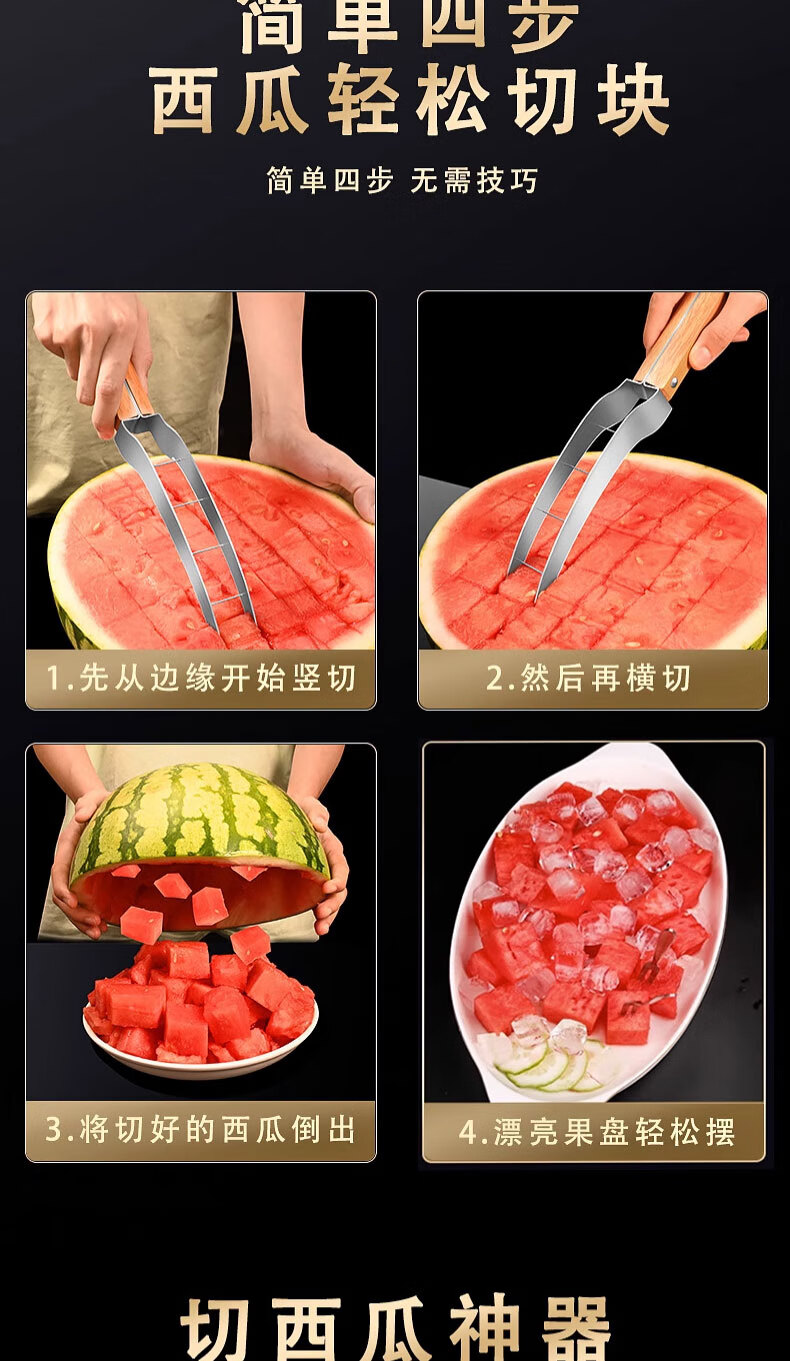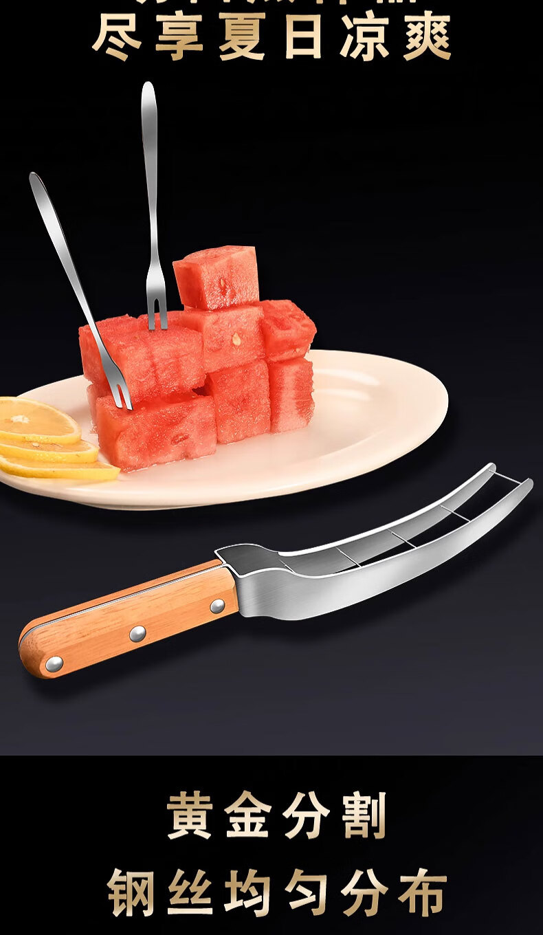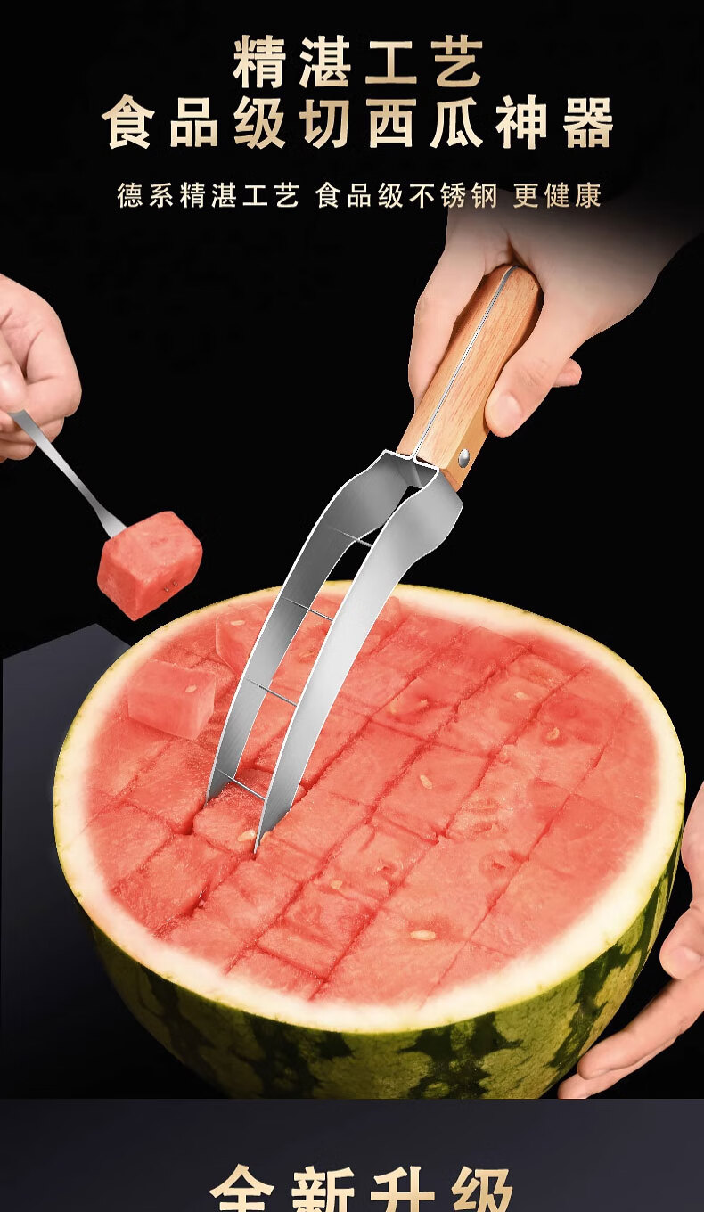 Chuangmu Workshop watermelon cutting tool stainless steel watermelon divider watermelon knife fruit knife cantaloupe meat dicing tool watermelon cutting tool + 8 fruit forks