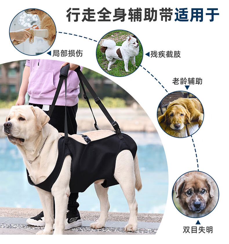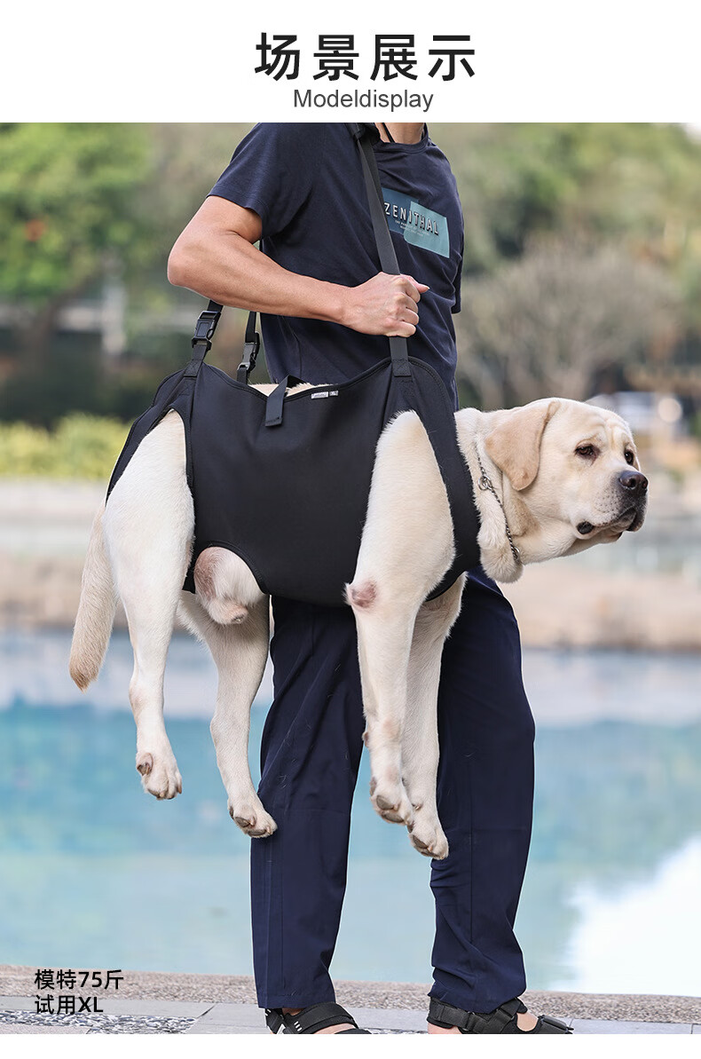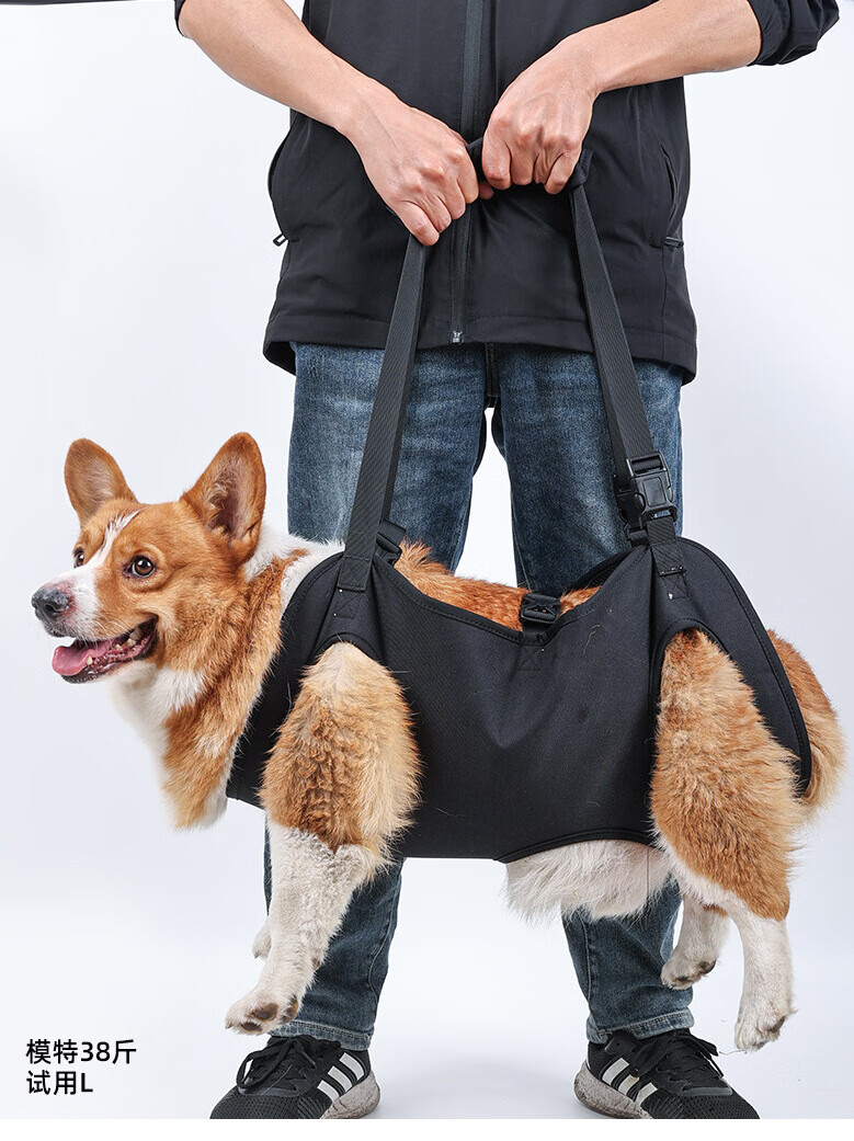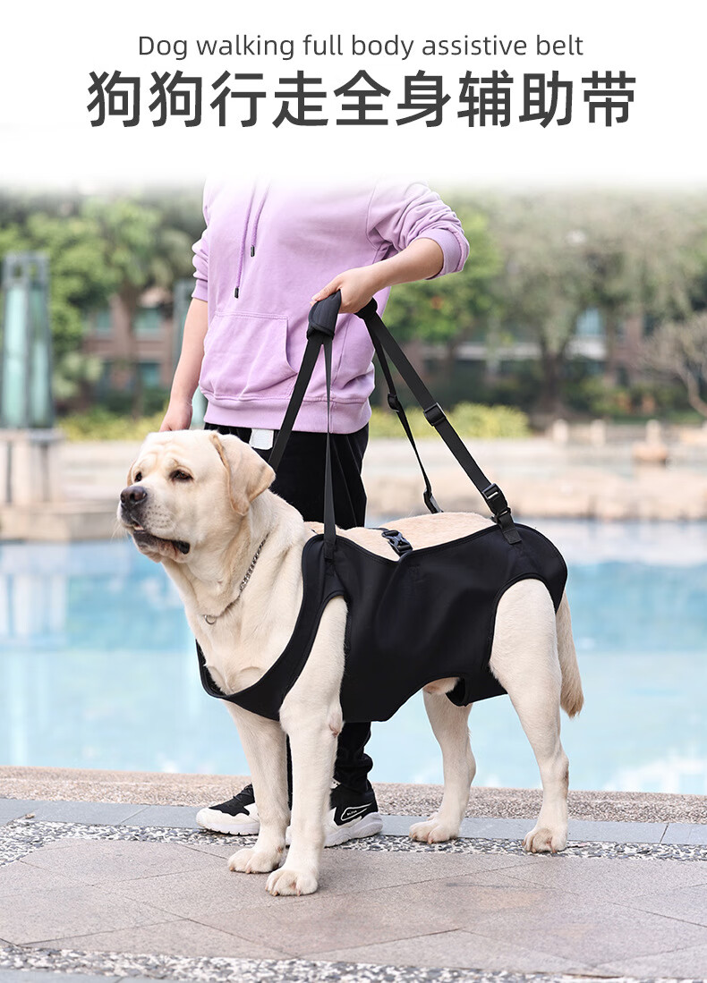OIMG dog leash portable auxiliary belt for elderly dogs, disabled dog rehabilitation exercise belt, upstairs assistance belt, black L-large