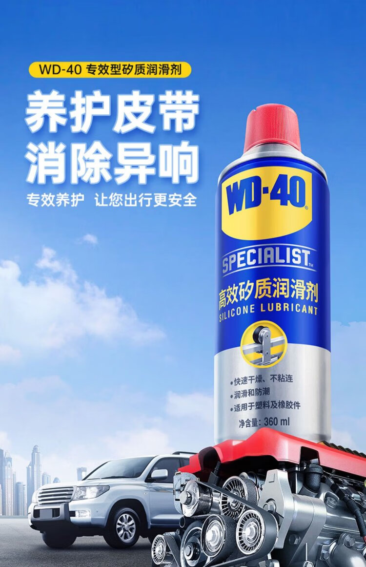 WD-40 silicone lubricant wd40 car window lubricant rubber cover strip maintenance protection engine belt abnormal noise elimination silicone lubricant free 50cm tube