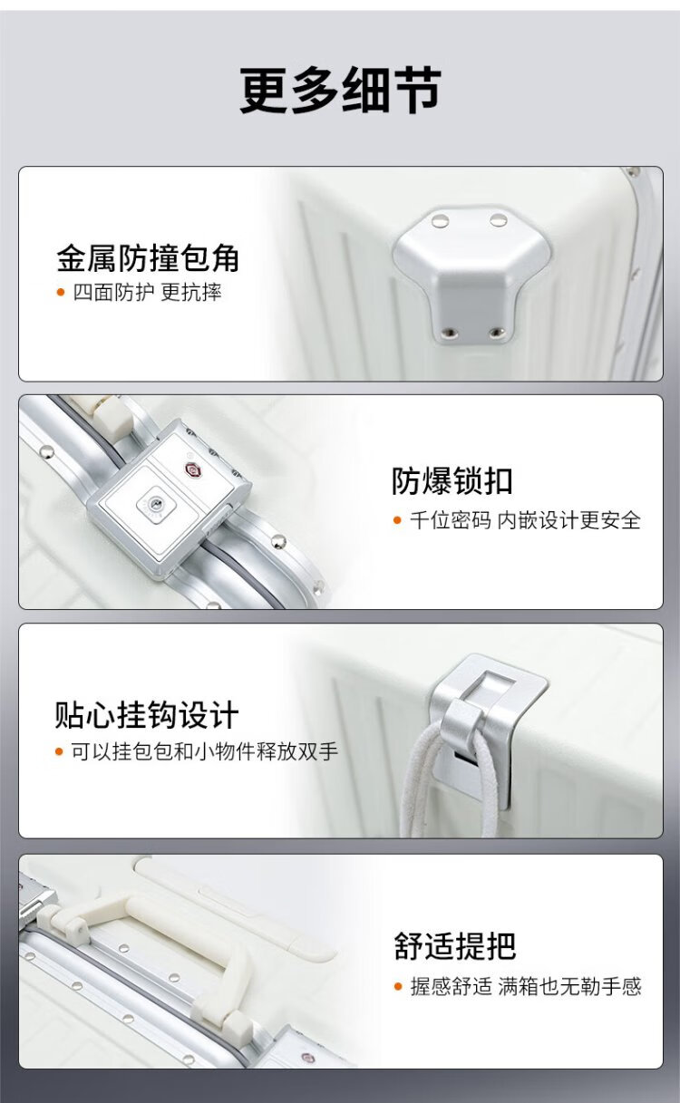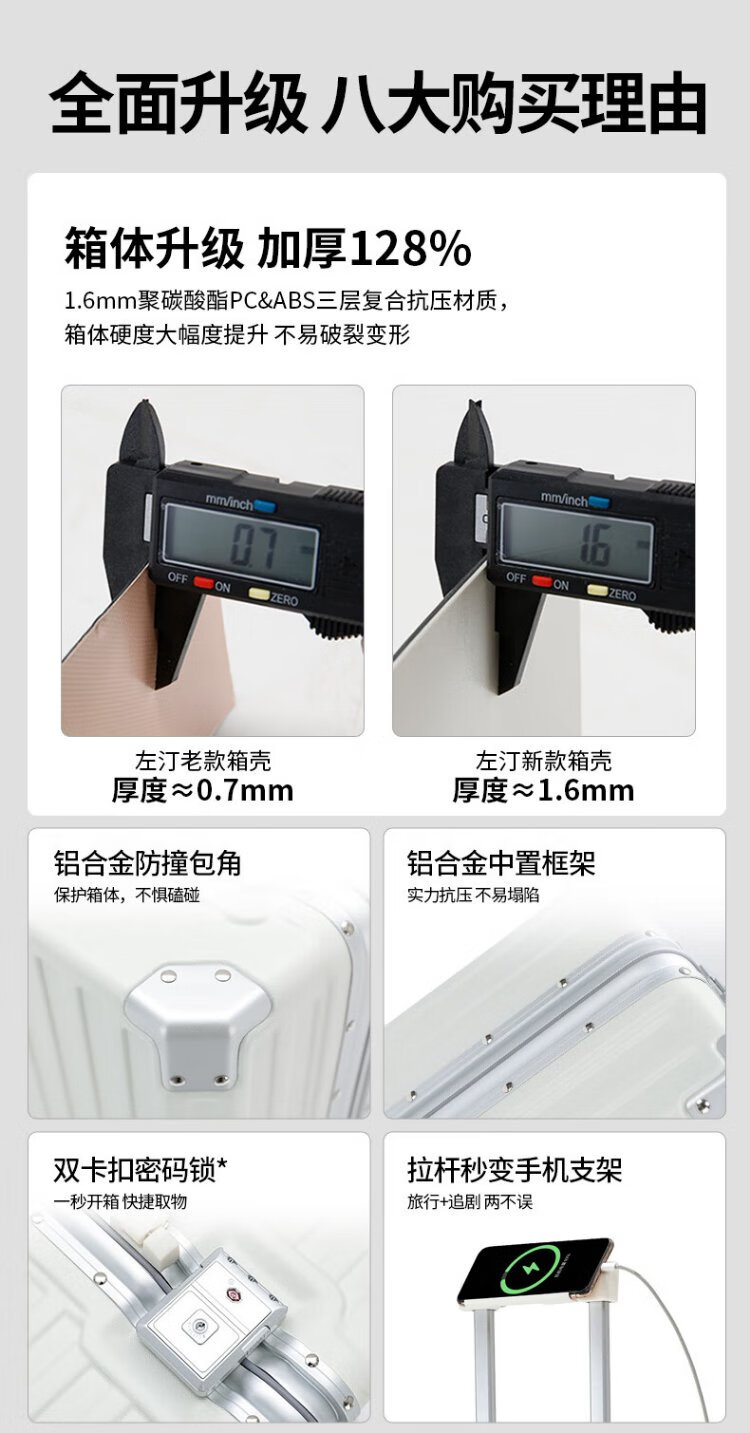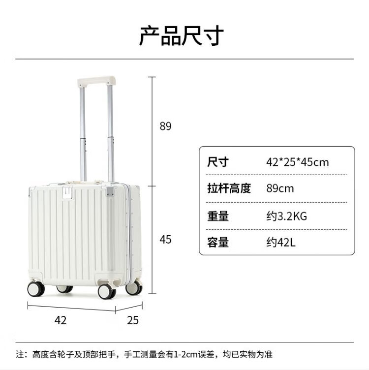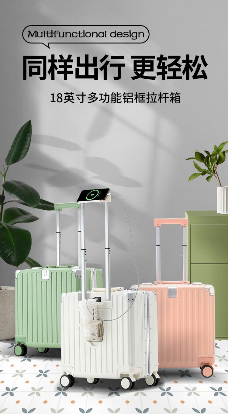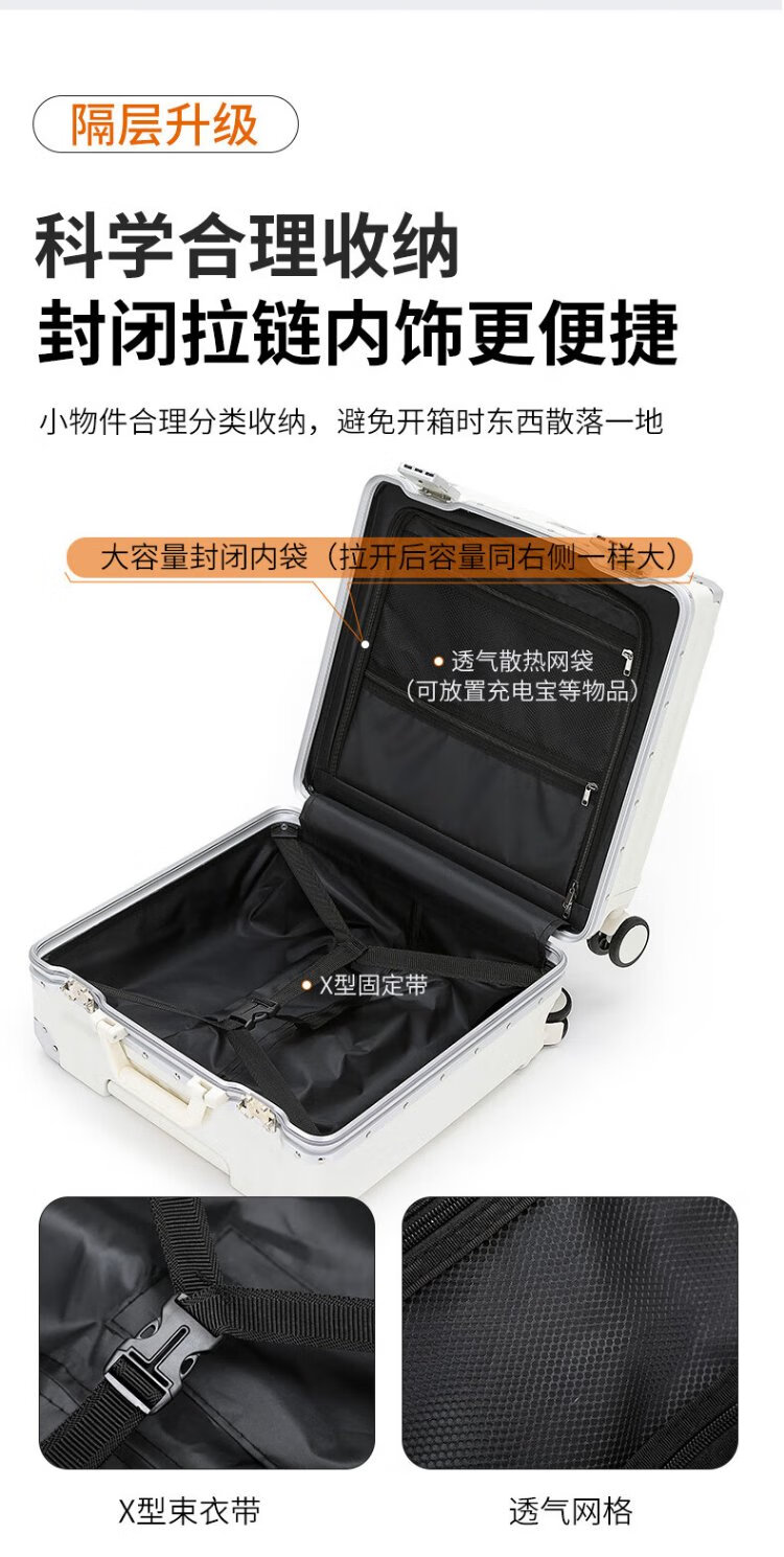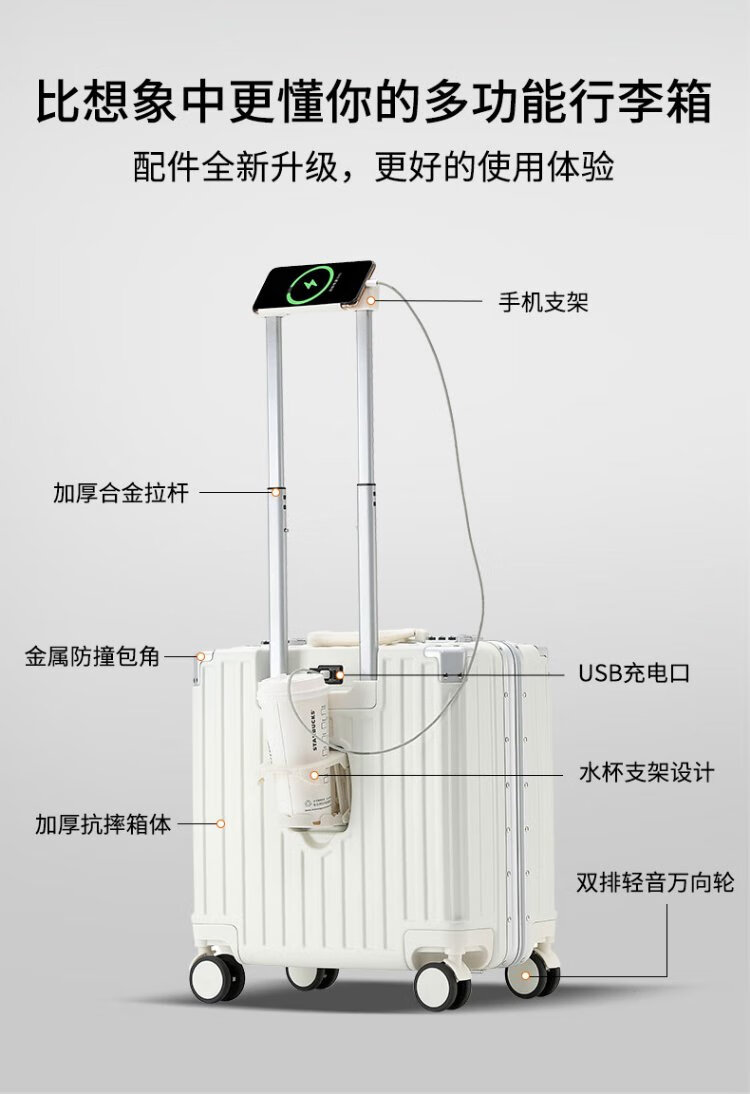 Zuo Ting multifunctional aluminum frame suitcase trolley case, sturdy and pressure-resistant suitcase, password box, small portable boarding case, smoke white 18 inches
