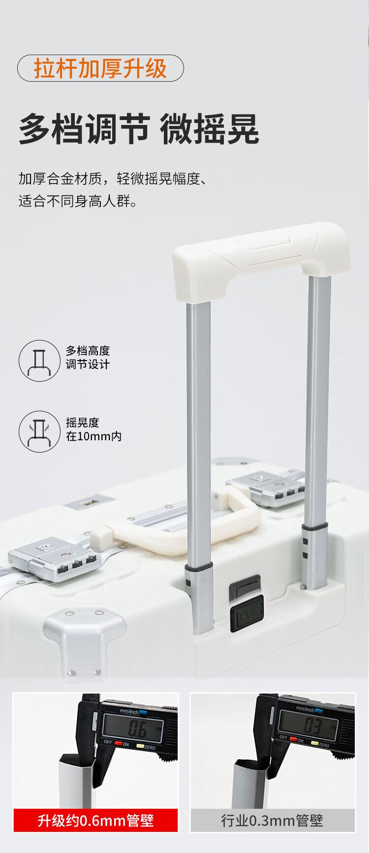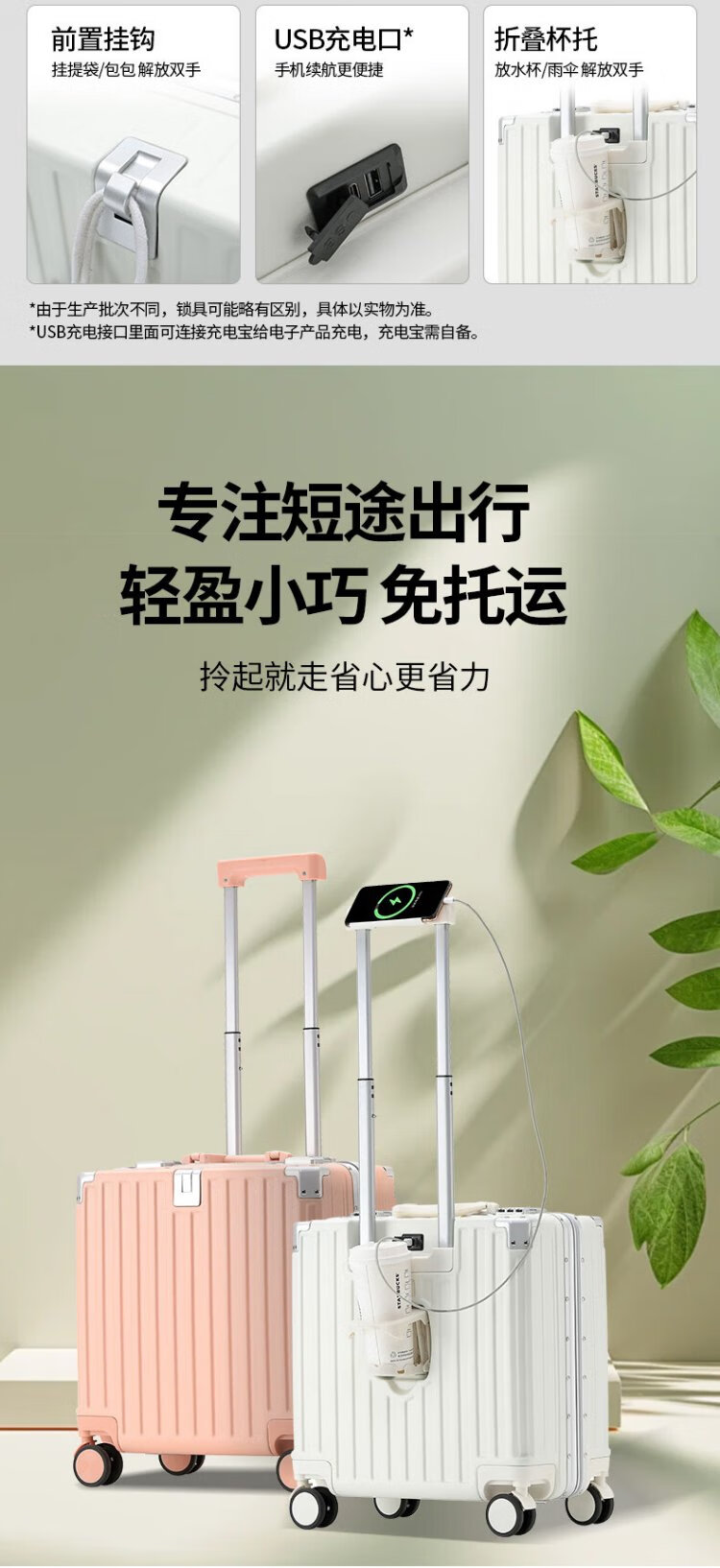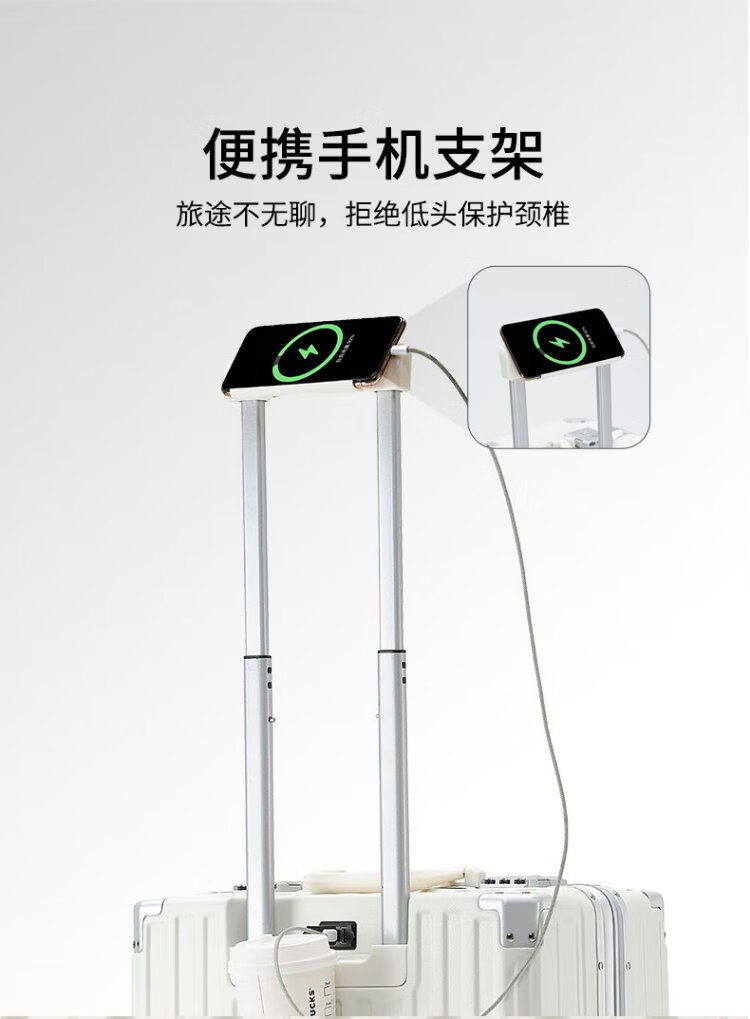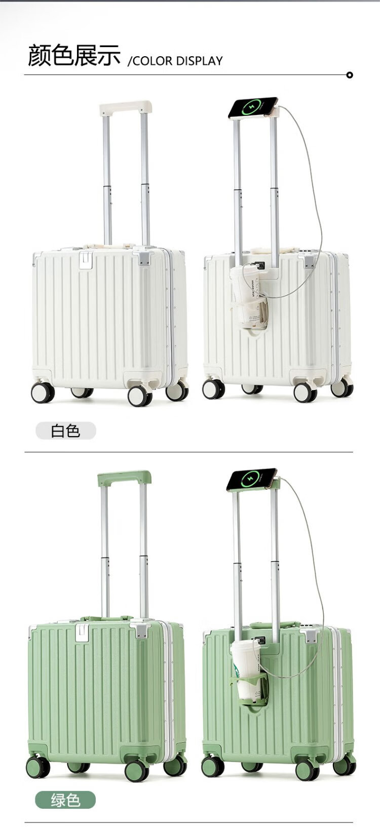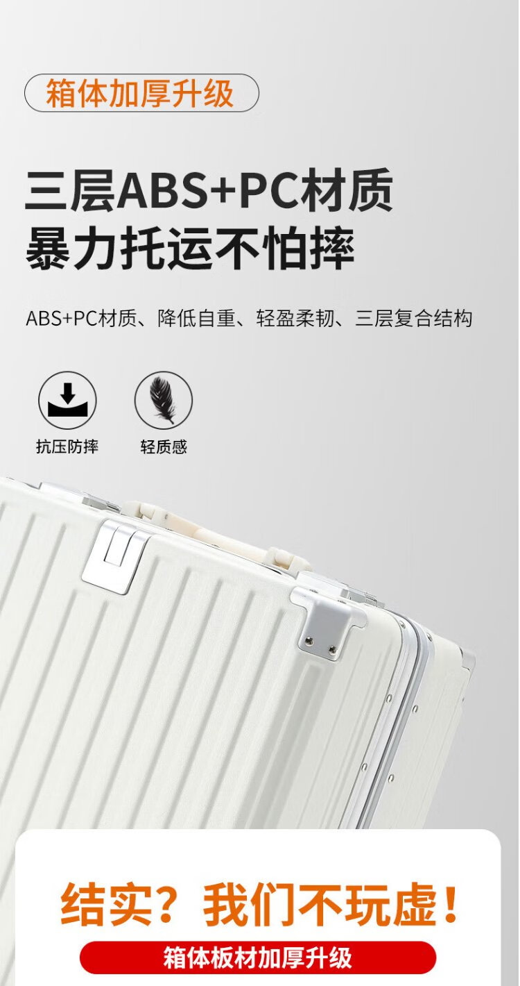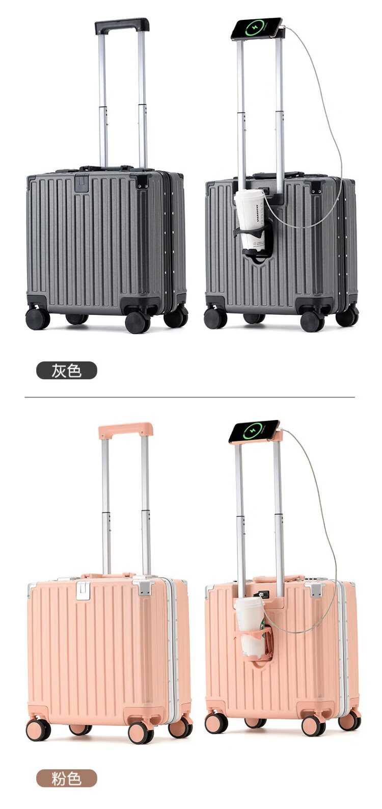 Zuo Ting multifunctional aluminum frame suitcase trolley case, sturdy and pressure-resistant suitcase, password box, small portable boarding case, smoke white 18 inches