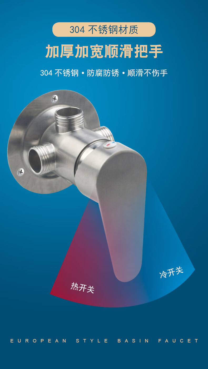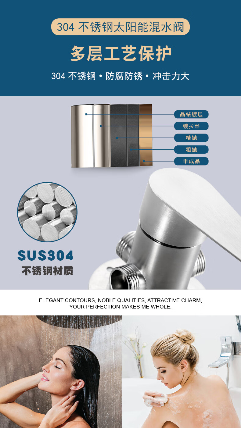 AZOS stainless steel exposed mixing valve hot and cold shower set faucet electric water heater solar switch booster nail-free stainless steel shower seat