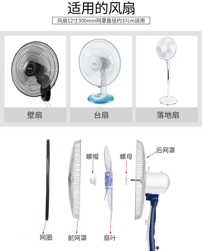 Suitable for Midea Airmate electric fan grille fixed ring plastic strip mesh hoop 12-inch floor-standing table fan universal accessories Midea original 12-inch white mesh hoop