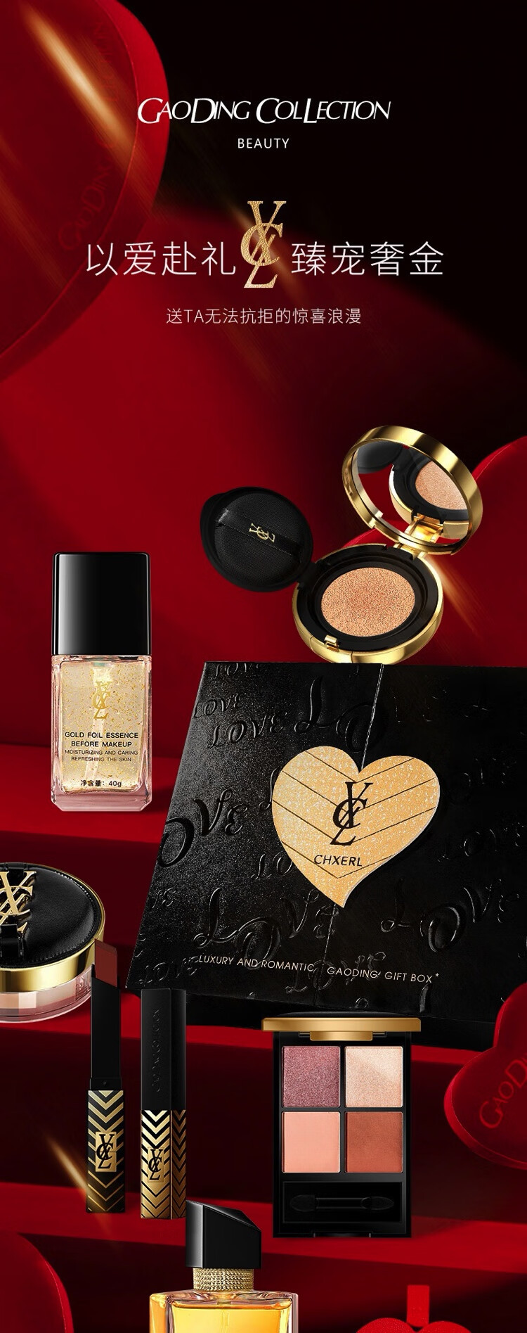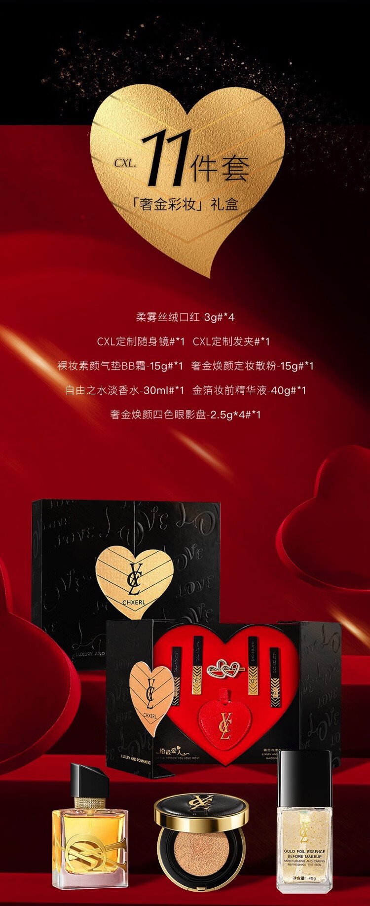 YCL luxury gold high-end romantic perfume lipstick air cushion gift box Valentine's Day gift for girlfriend and wife on Valentine's Day YCL luxury set of 11 pieces