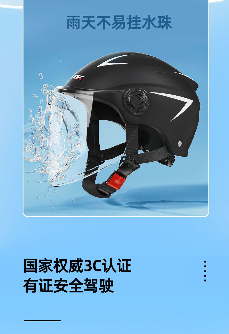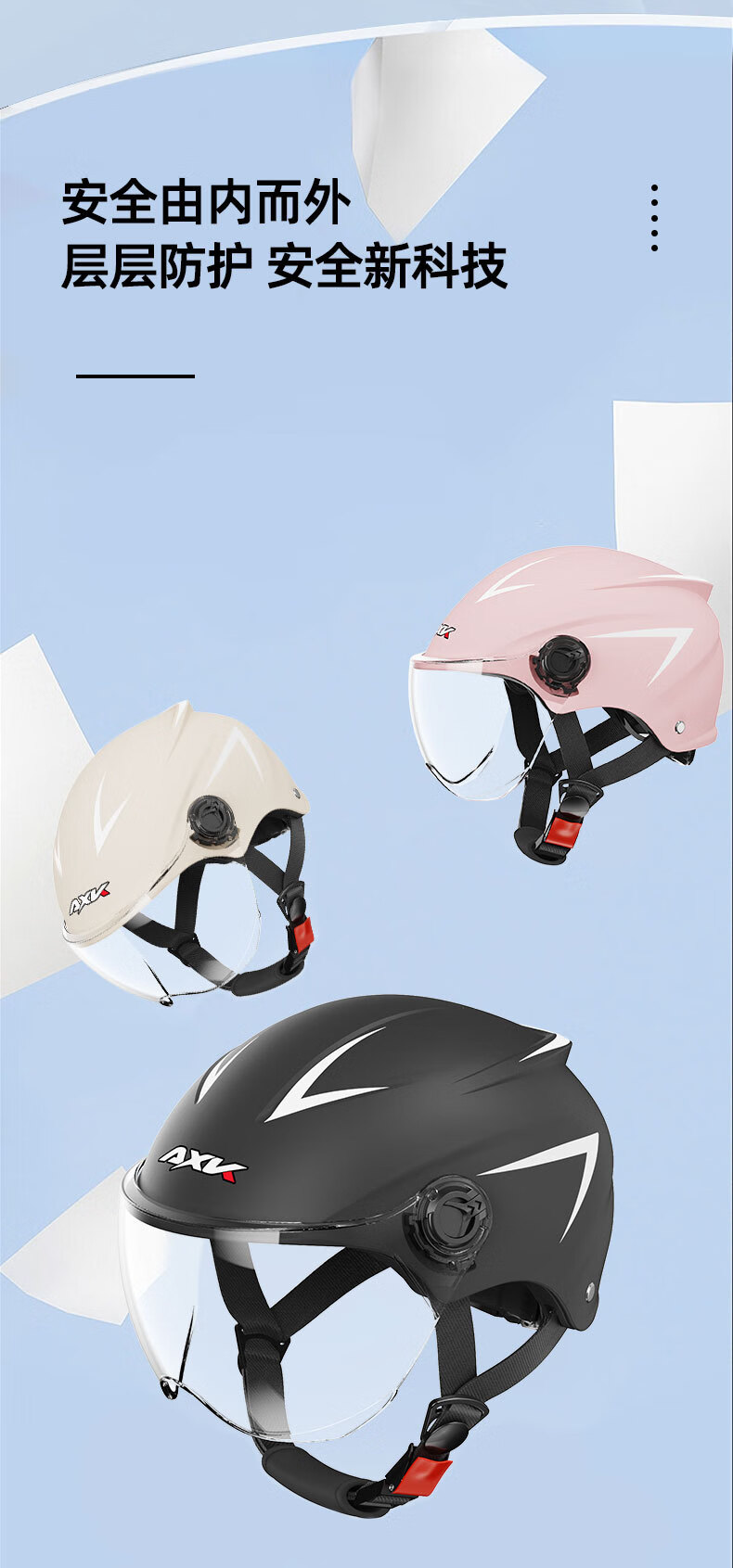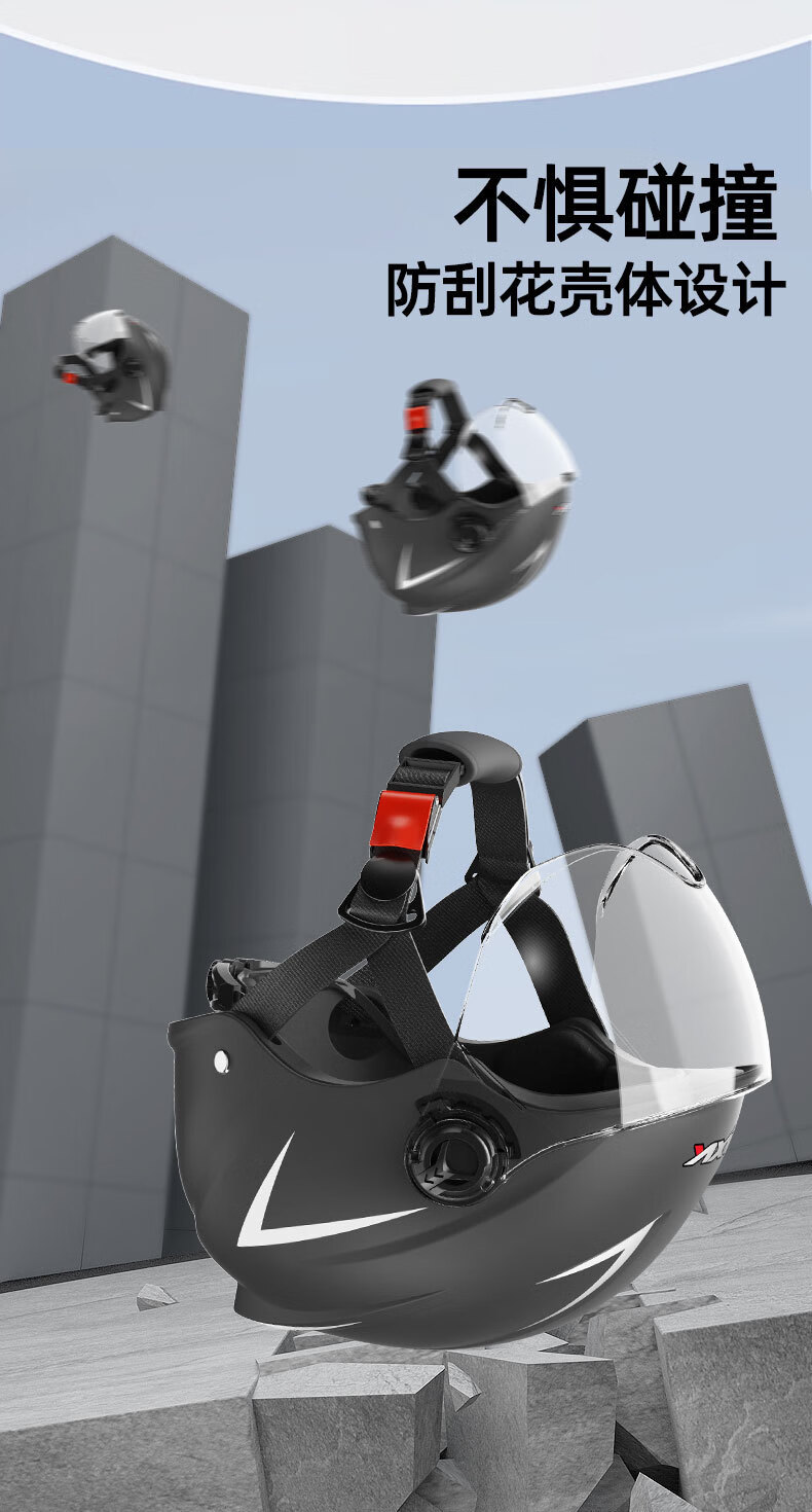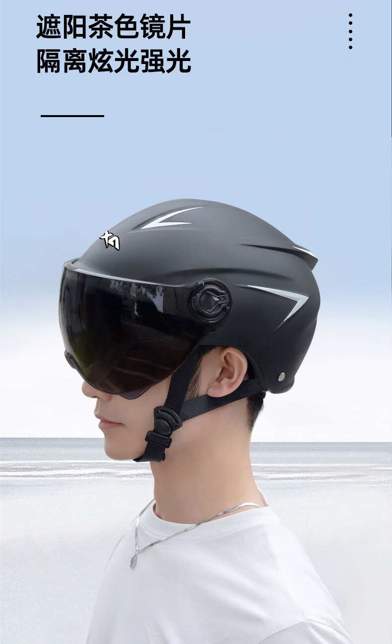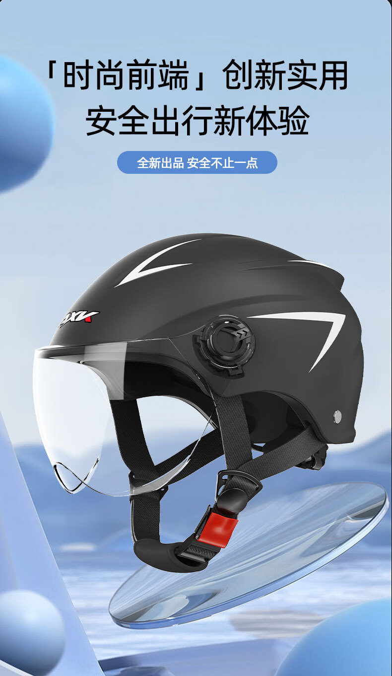 AXK electric bike helmet 3c certified men and women summer motorcycle half helmet riding battery bike helmet suitable for all seasons 3C certified - matte black short transparent double lens