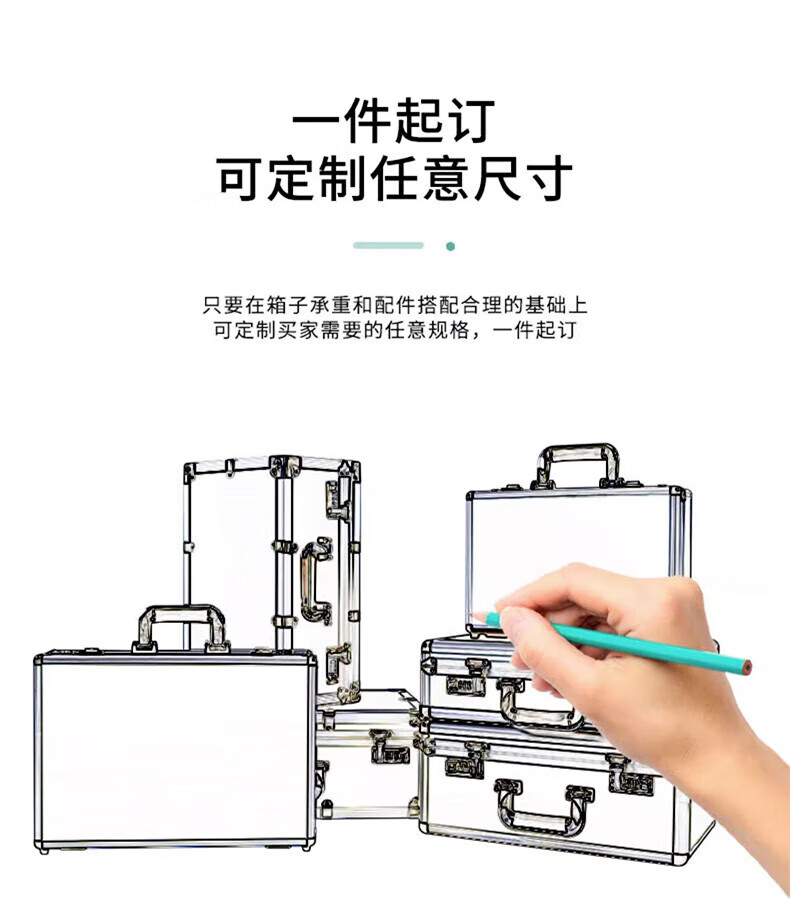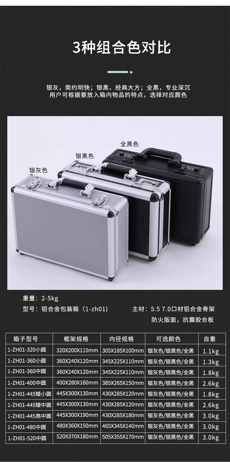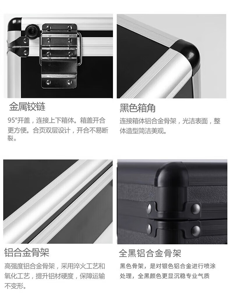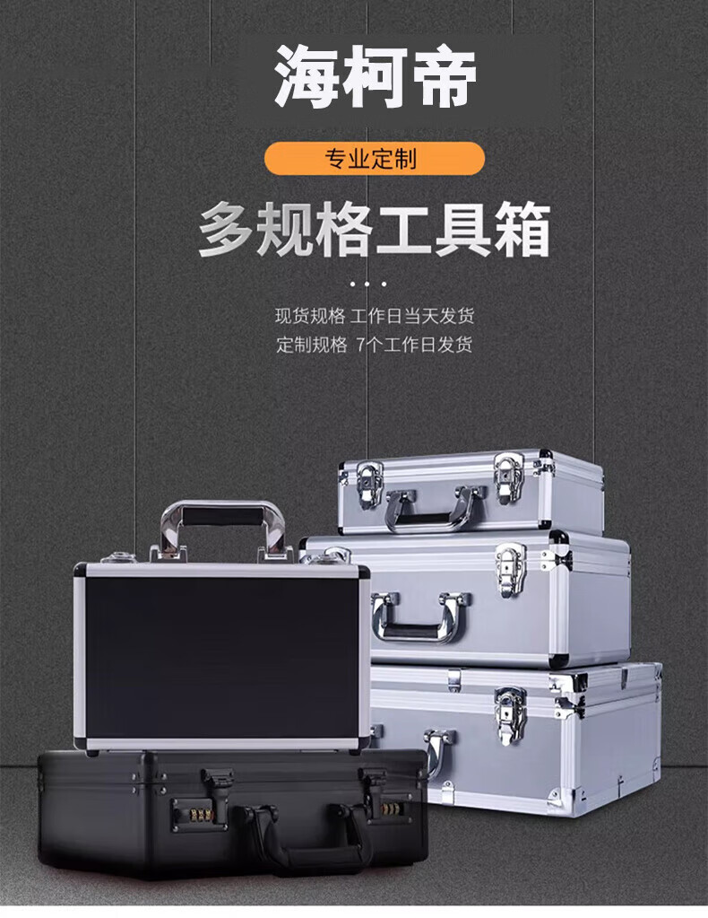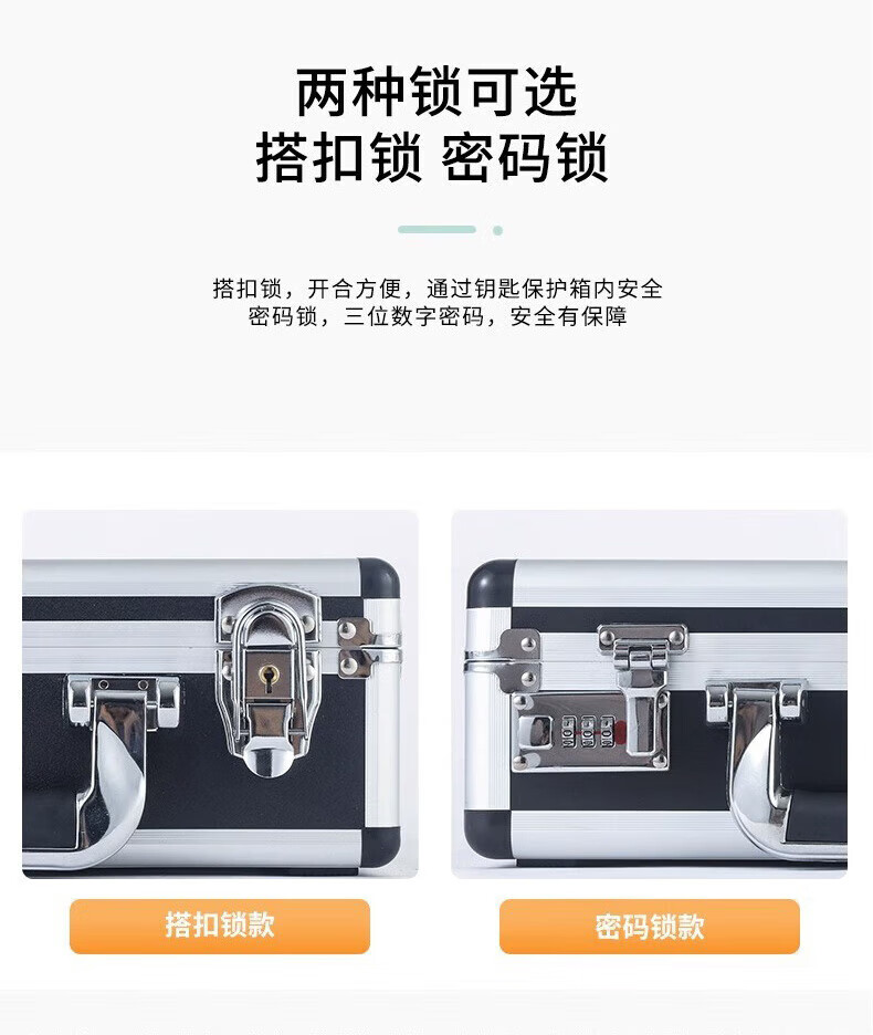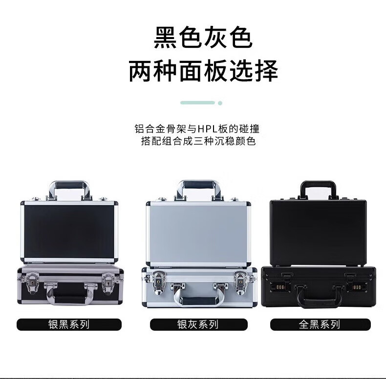 Haikedi all-black aluminum alloy portable password box, thickened with lock, multi-functional precision equipment storage box, tool box, document storage box, file safe storage box, password lock + grid cotton 480*395*155mm, supports customized size printing