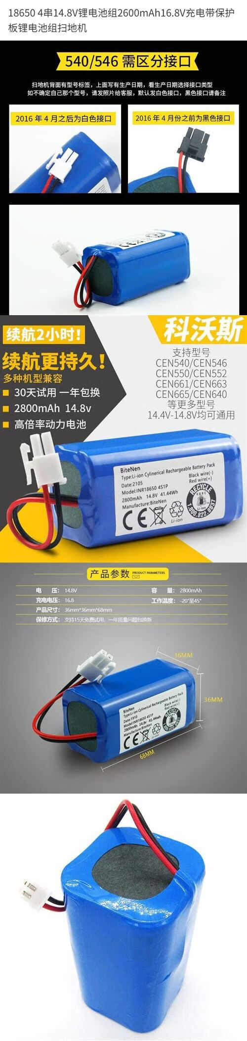 18650 4-string 14.8V lithium battery pack 2600mAh 16.8V charging with protection plate lithium battery sweeping robot white plug 14.8V2800
