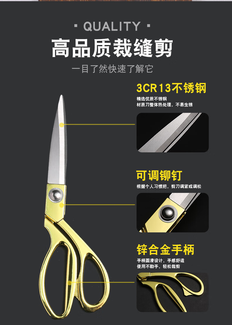 Xinshu stainless steel Japanese tailor scissors, special for clothing cutting and sewing, household cutting and sewing large scissors for cutting clothes, small size (silver)