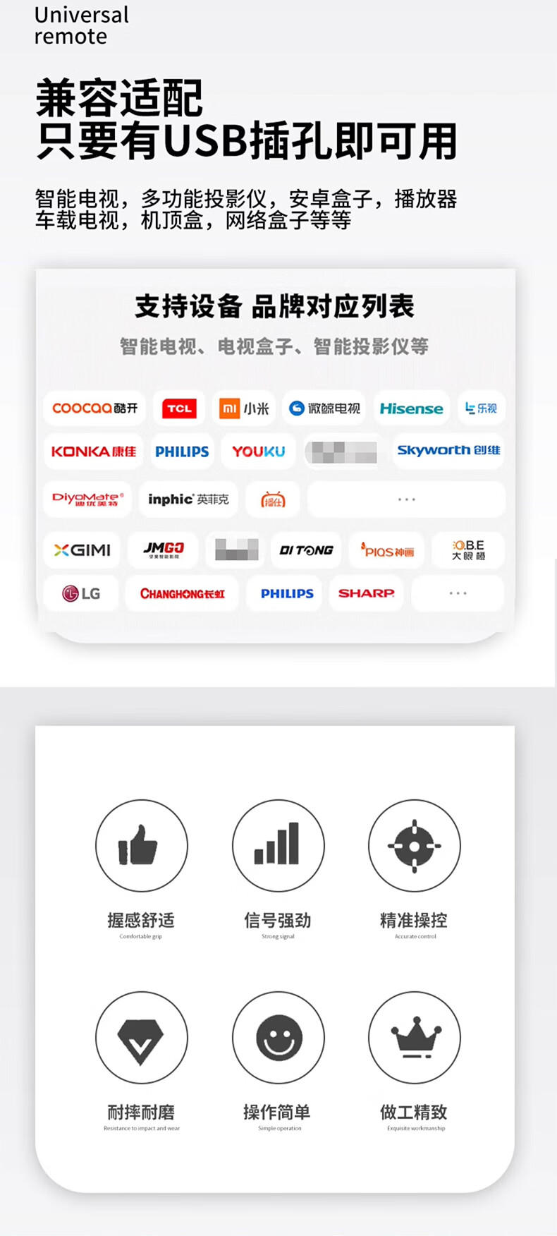 OMETTER Universal TV Remote Control LCD Smart Applicable Xiaomi Hisense TCL Changhong Skyworth Sharp Konka Haier Samsung Sony Philips LeTV LG Toshiba Panasonic Universal Universal (The device must have a USB interface/does not support switching on and off)