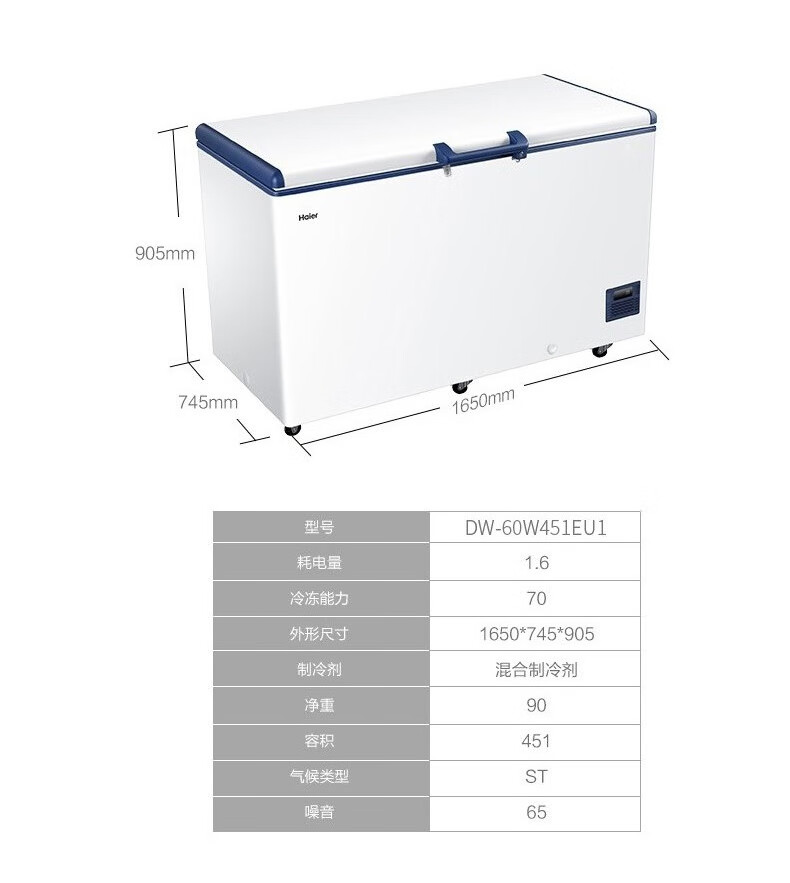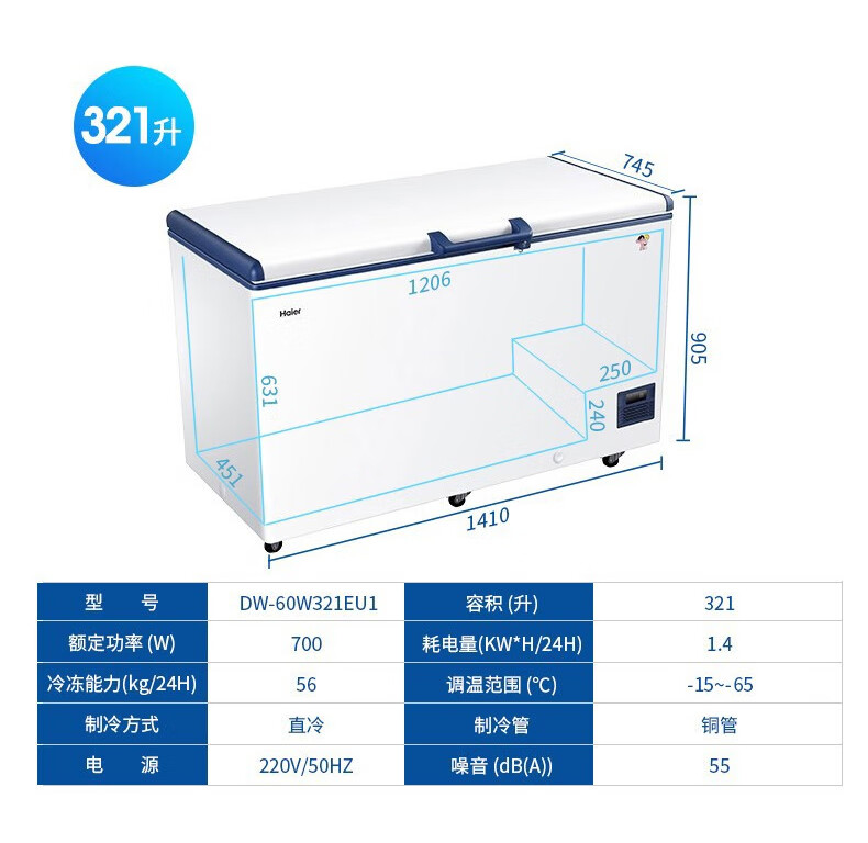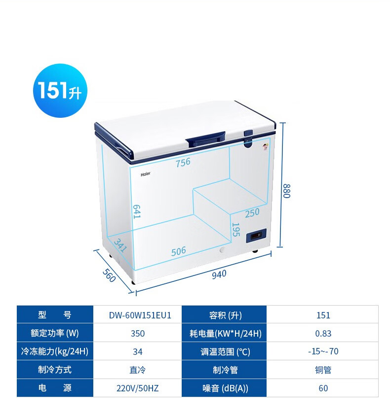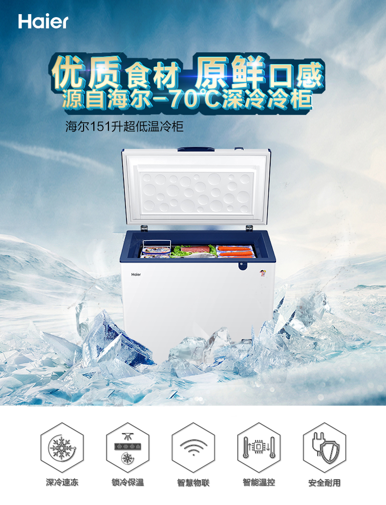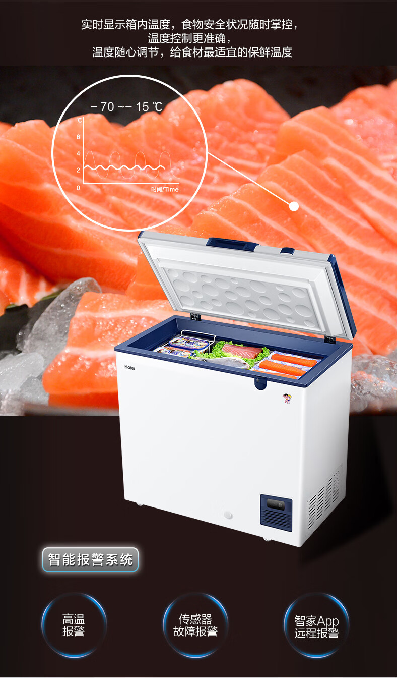 Haier ultra-low temperature freezer household minus -60/-70 degrees deep-freezing quick-freezing commercial large-capacity seafood freezer can freeze salmon gold -70丨high-end food preservation cabinet 151L