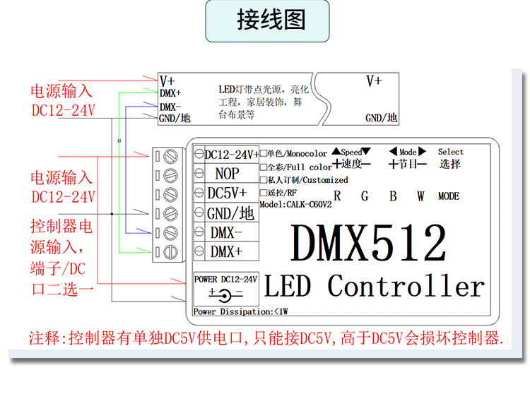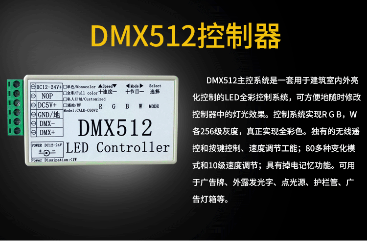 DMX512 light strip controller colorful full-color illusion lamp light box light string RGB amplification decoding remote control white