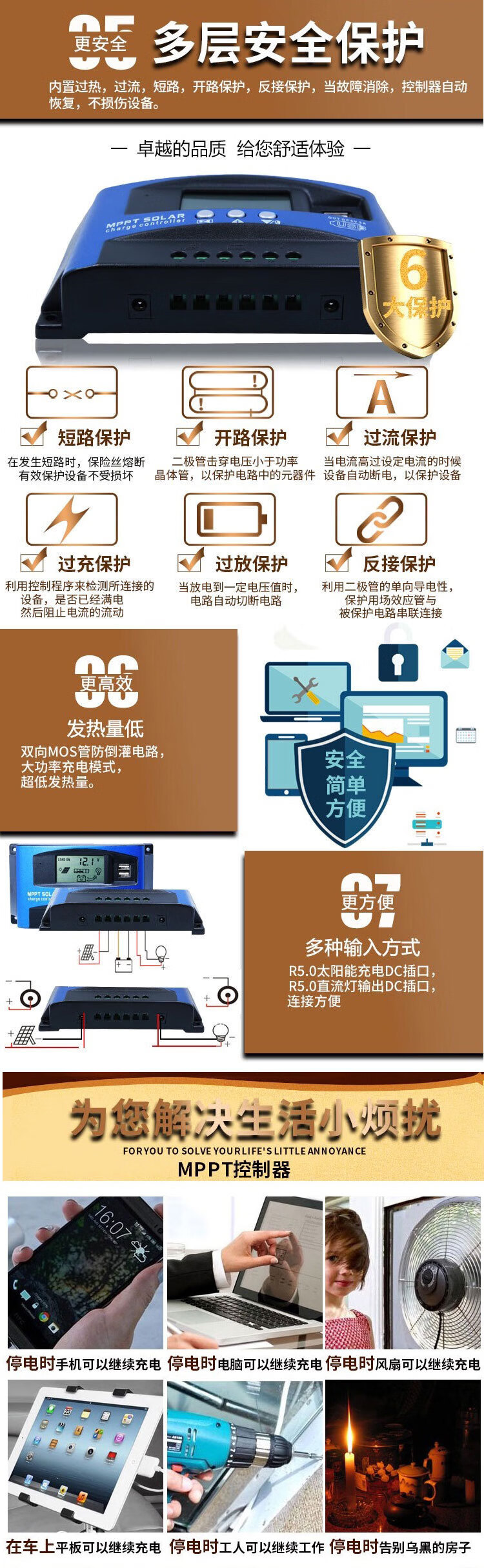 MPPT solar controller 30A100A fully automatic charge and discharge universal 12v24V36V48V60 photovoltaic generator MPPT 12V24V universal 30A