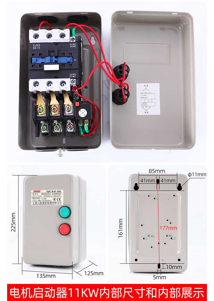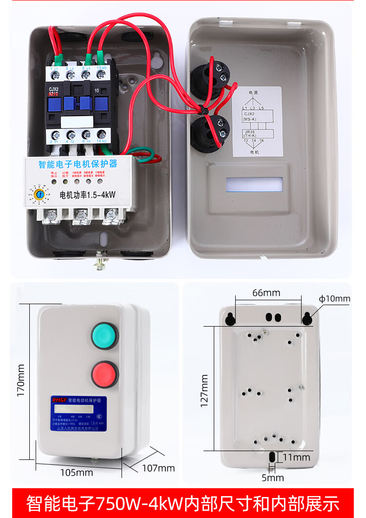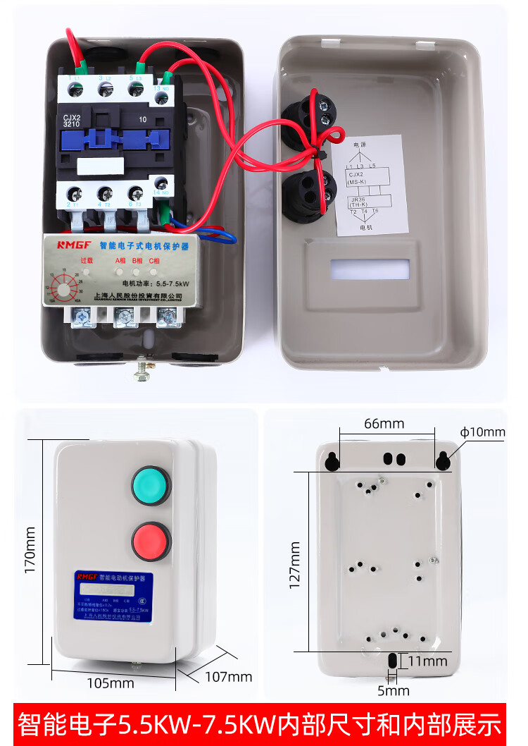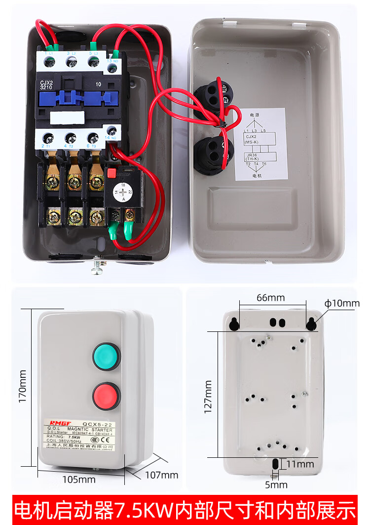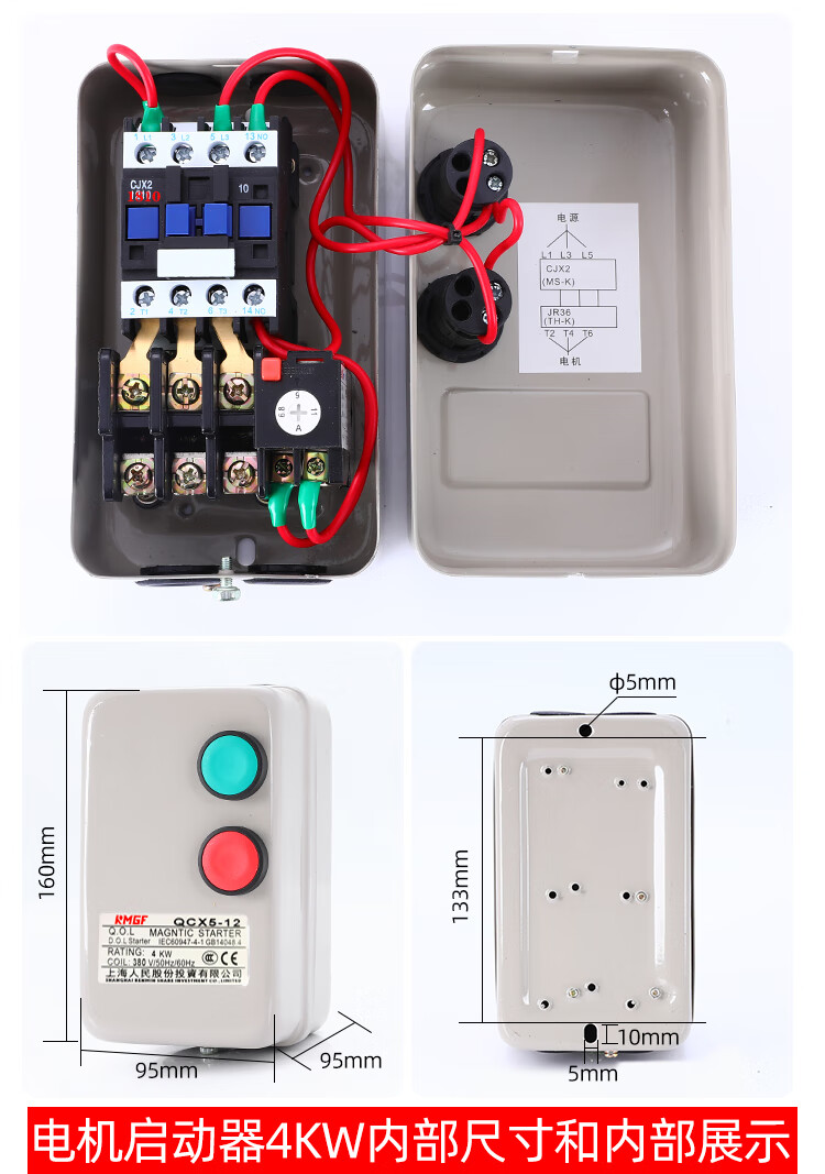 Magnetic starter switch 380v three-phase motor overload phase loss protector crusher fan water pump starting box mechanical with button-send waterproof cover overload protection 4KW 4KW 380V