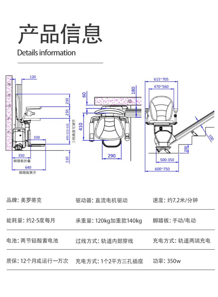 Merotic Beijing Corridor Seat Elevator Stairlift Villa Electric Intelligent Up and Down Stair Climbing Machine for the Elderly Construction Drawings