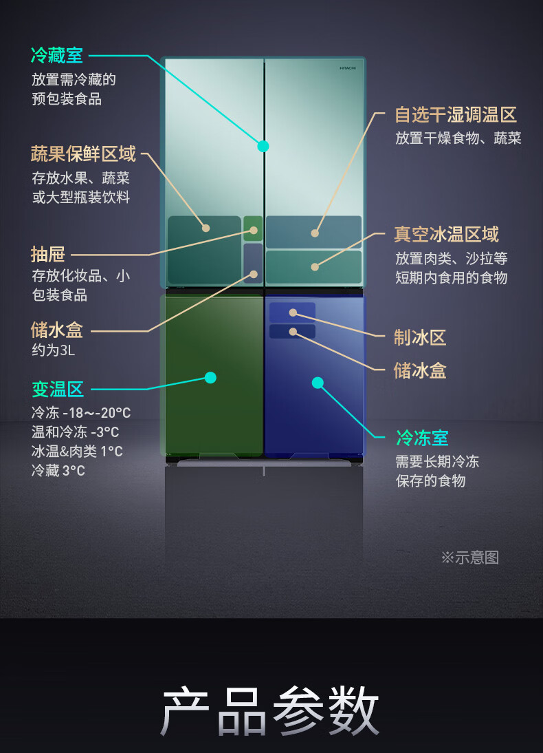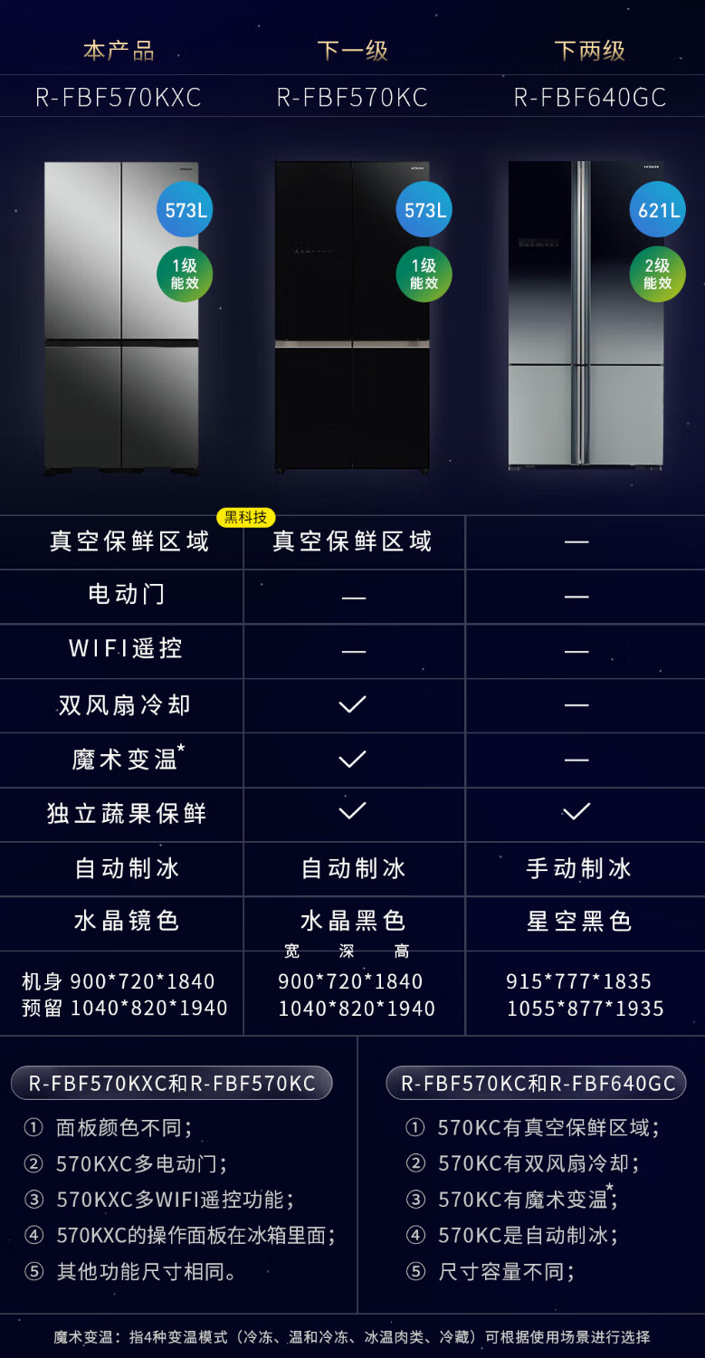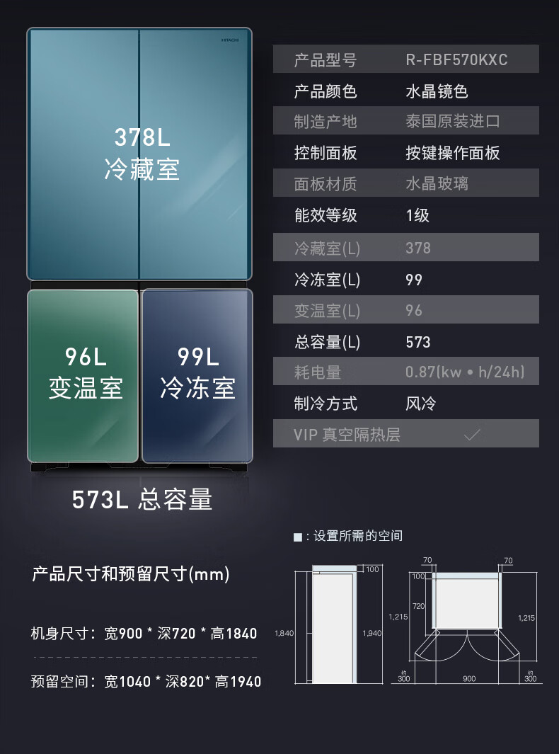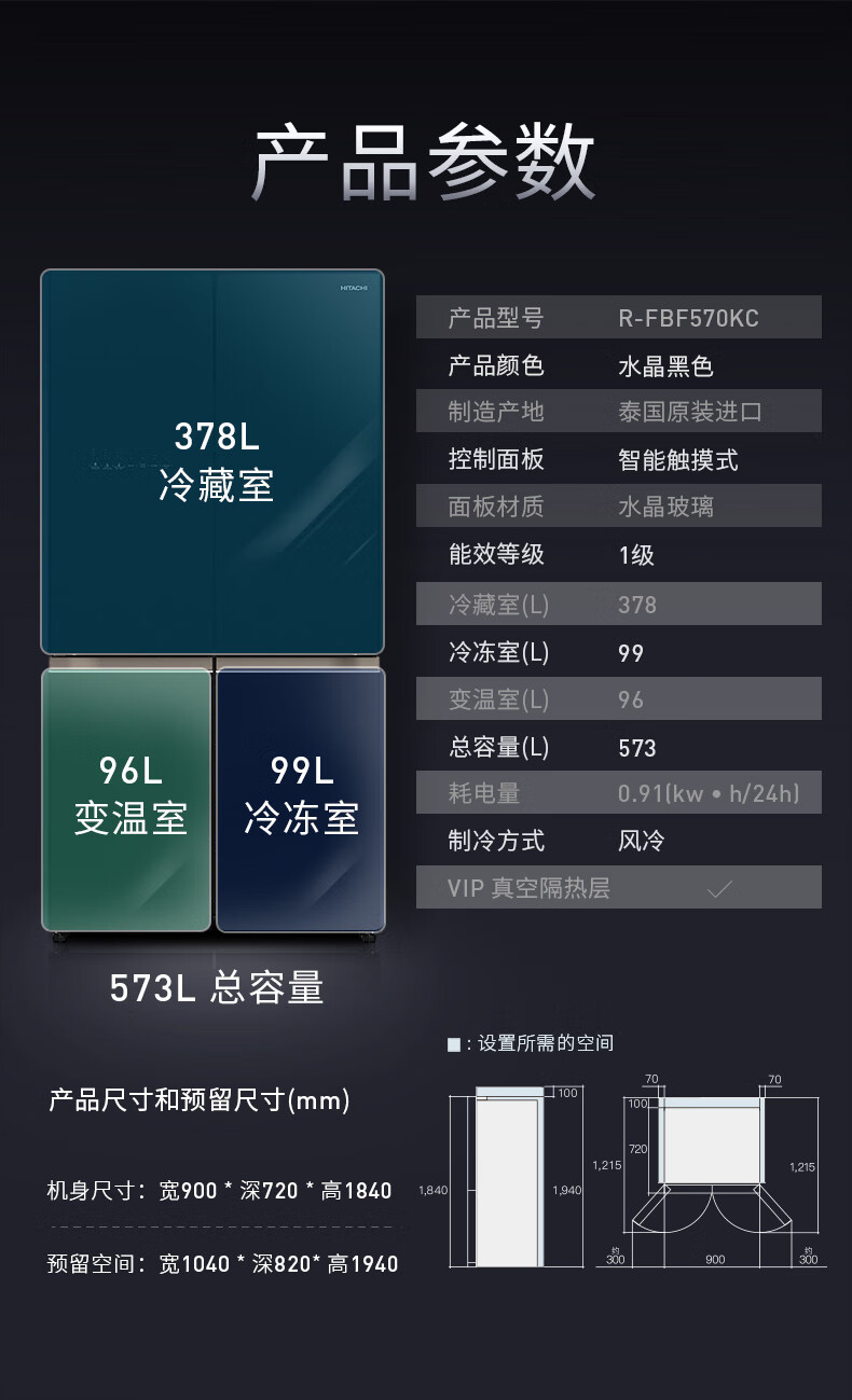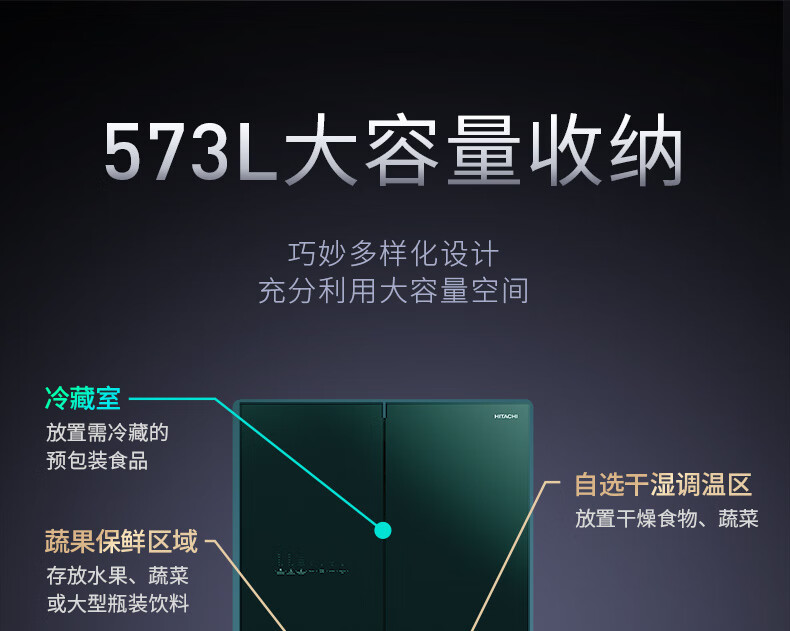 Hitachi (HITACHI) 573L original imported refrigerator R-FBF570KXC automatic ice making air-cooled frost-free frequency conversion glass mirror crystal black