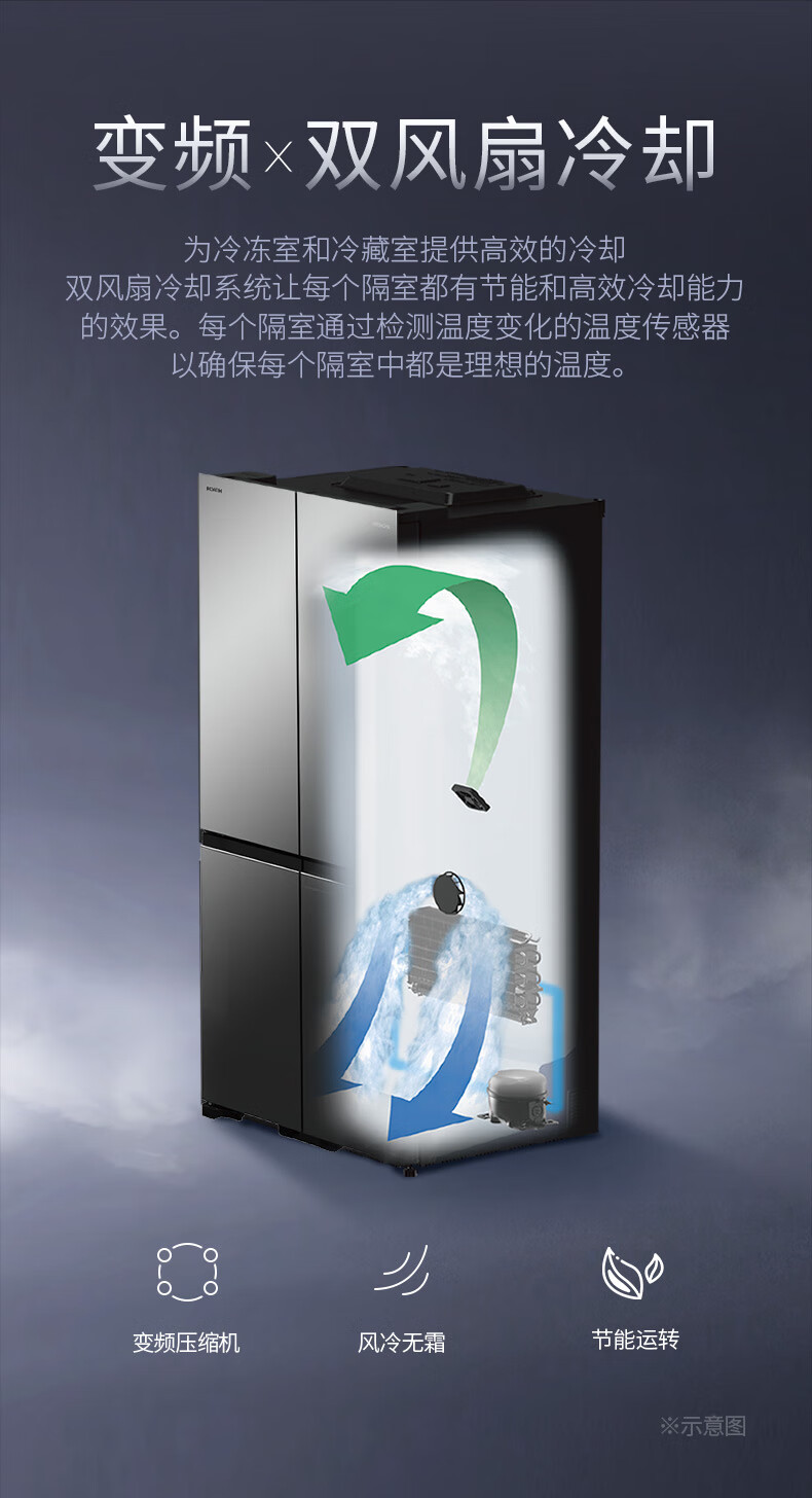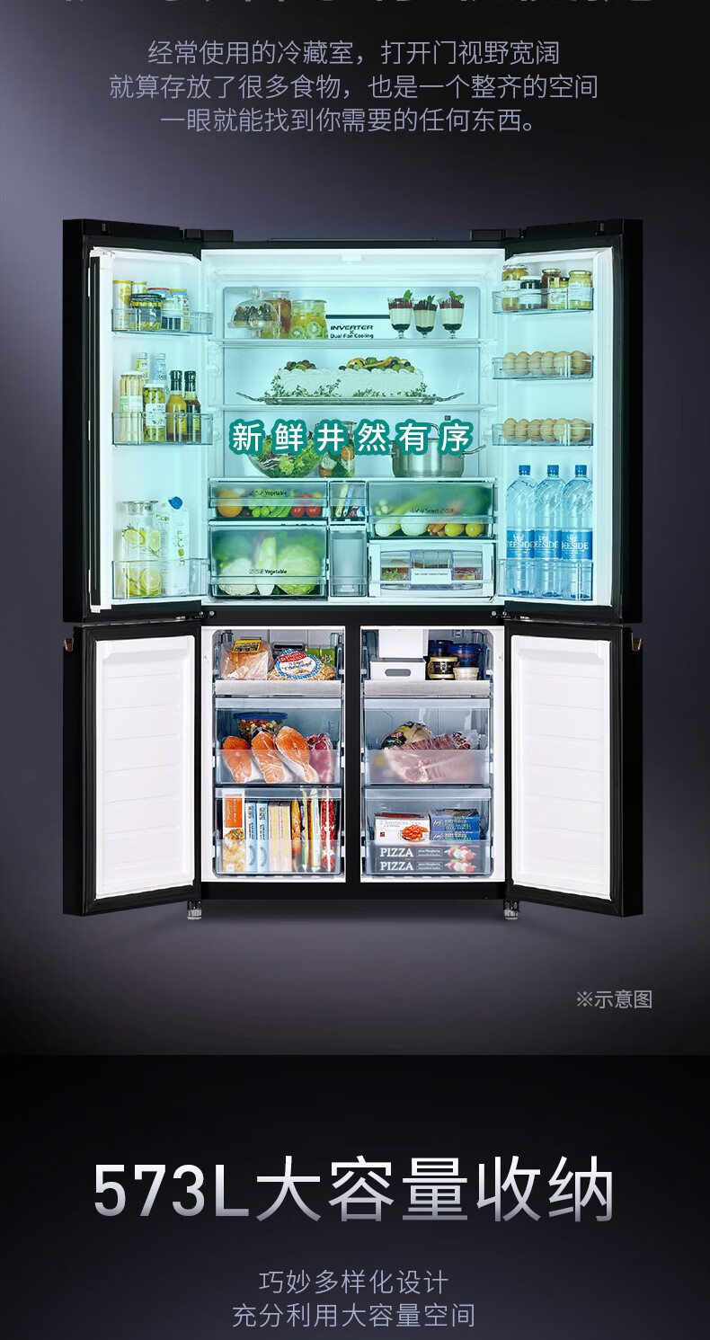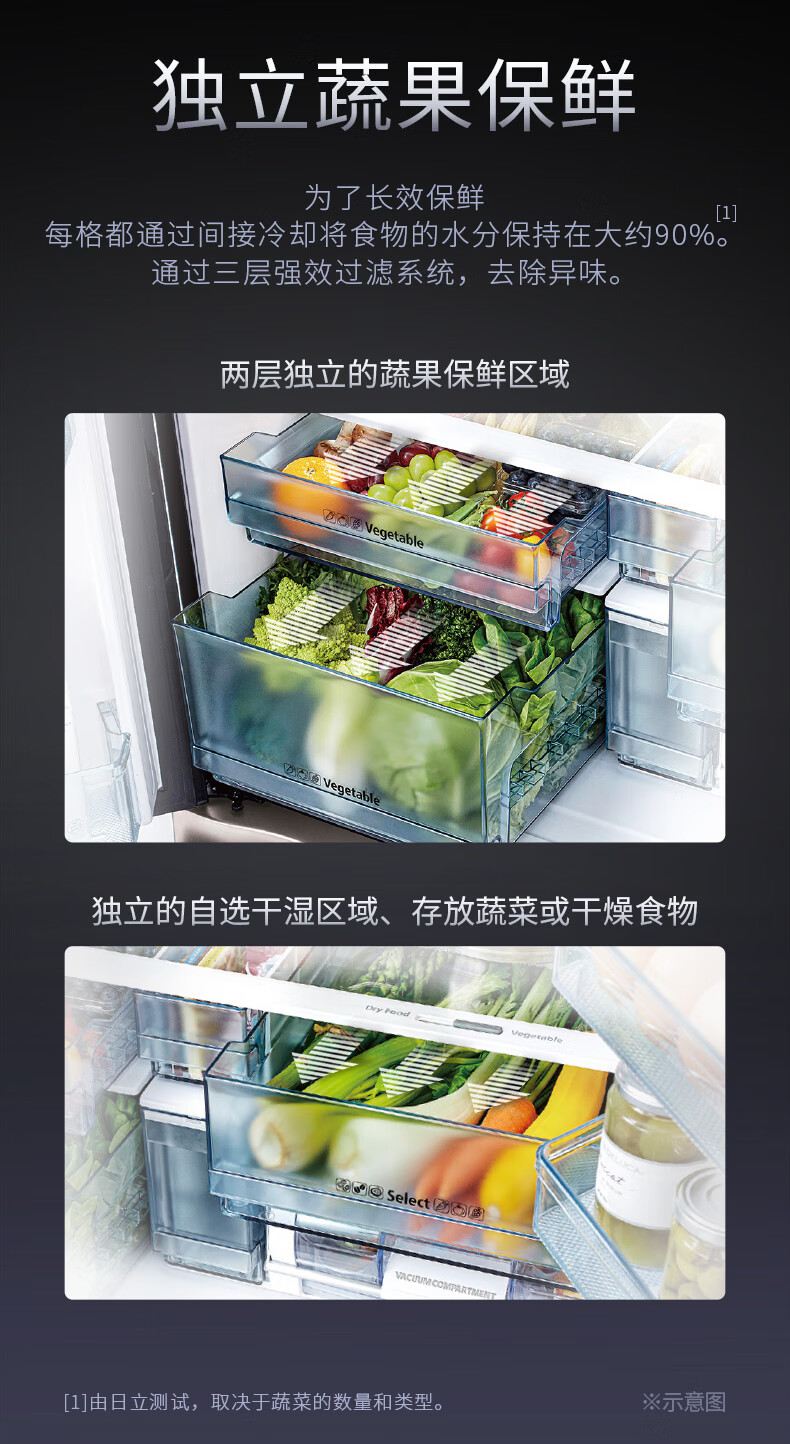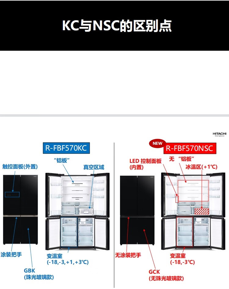 Hitachi (HITACHI) 573L original imported refrigerator R-FBF570KXC automatic ice making air-cooled frost-free frequency conversion glass mirror crystal black