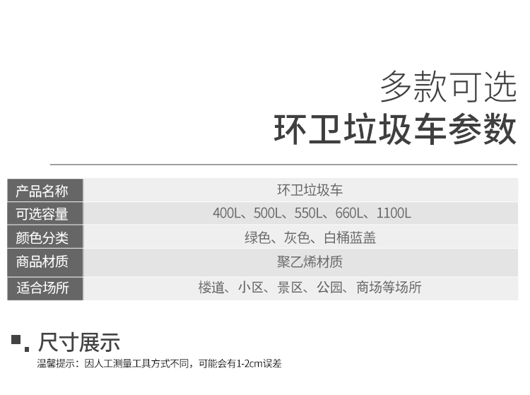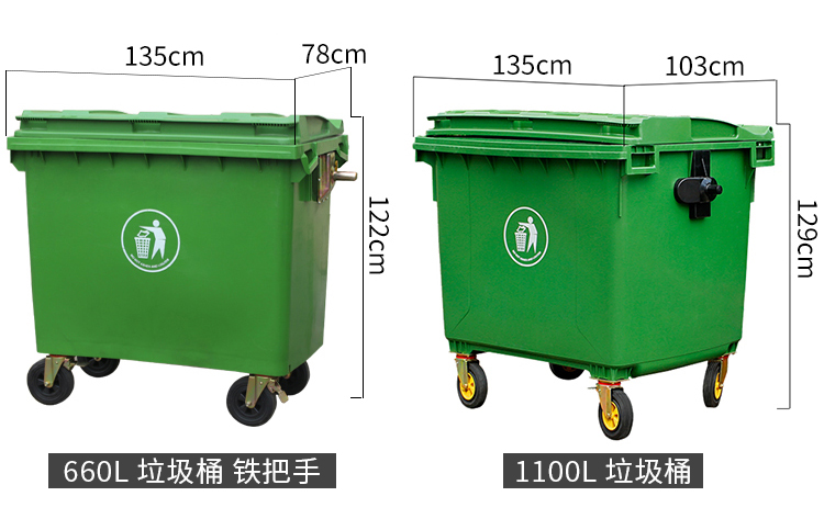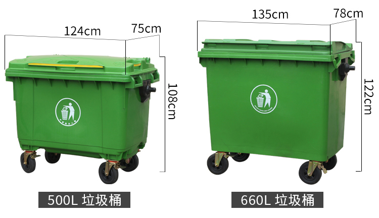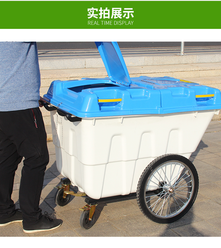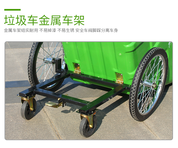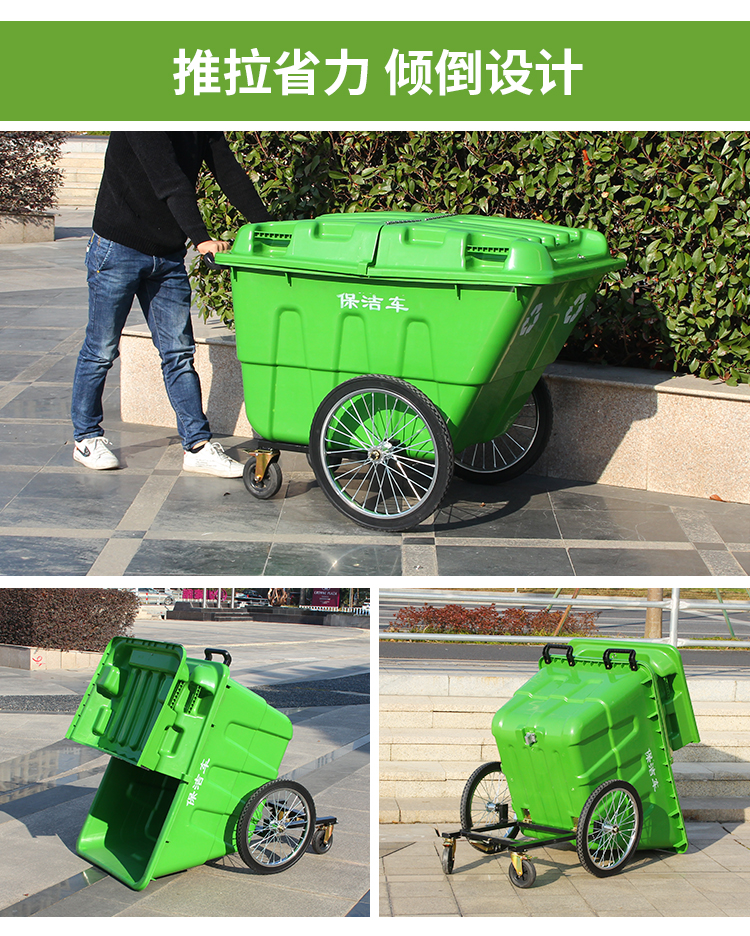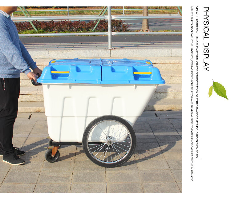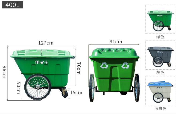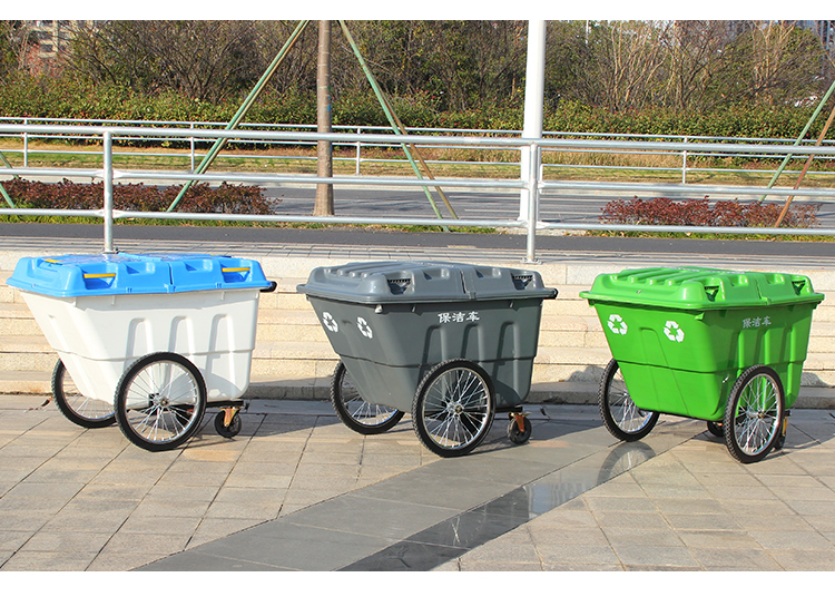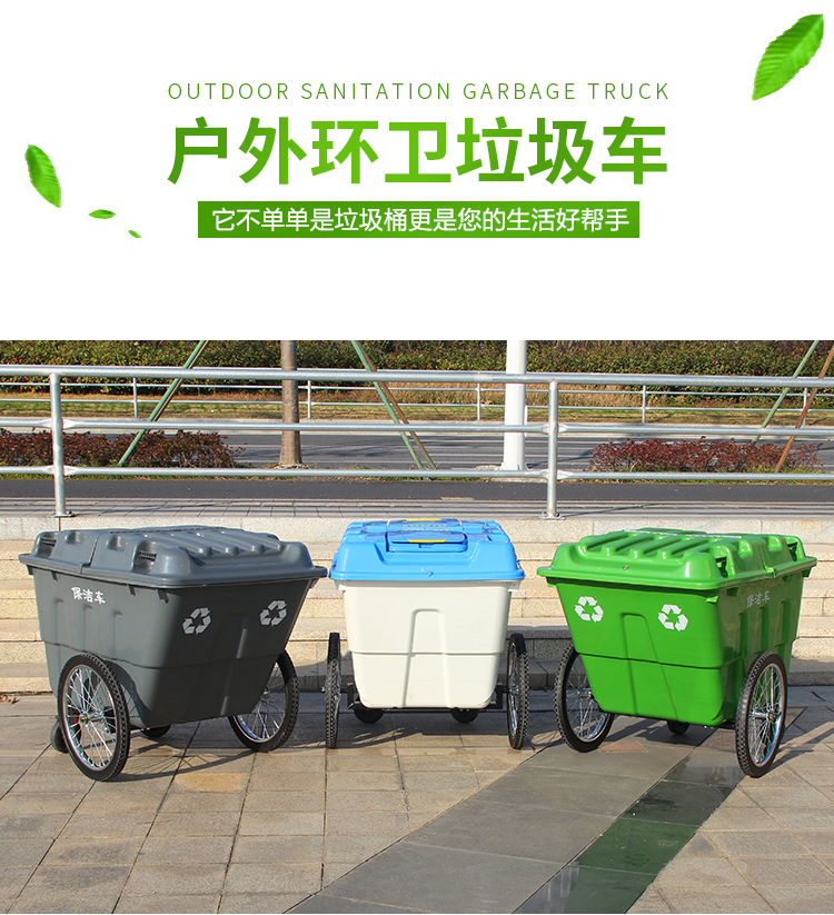 400L sanitation garbage truck trash can with cover and wheels cleaning truck large trolley mobile outdoor 400L garbage truck army green