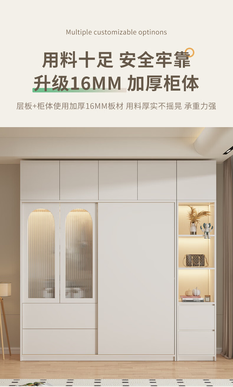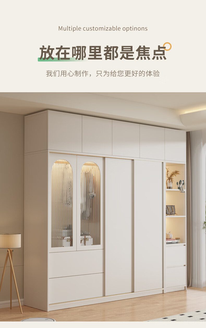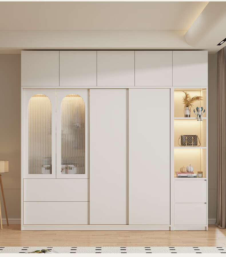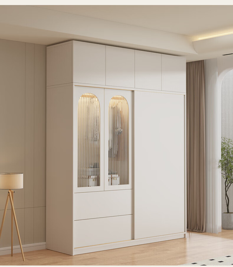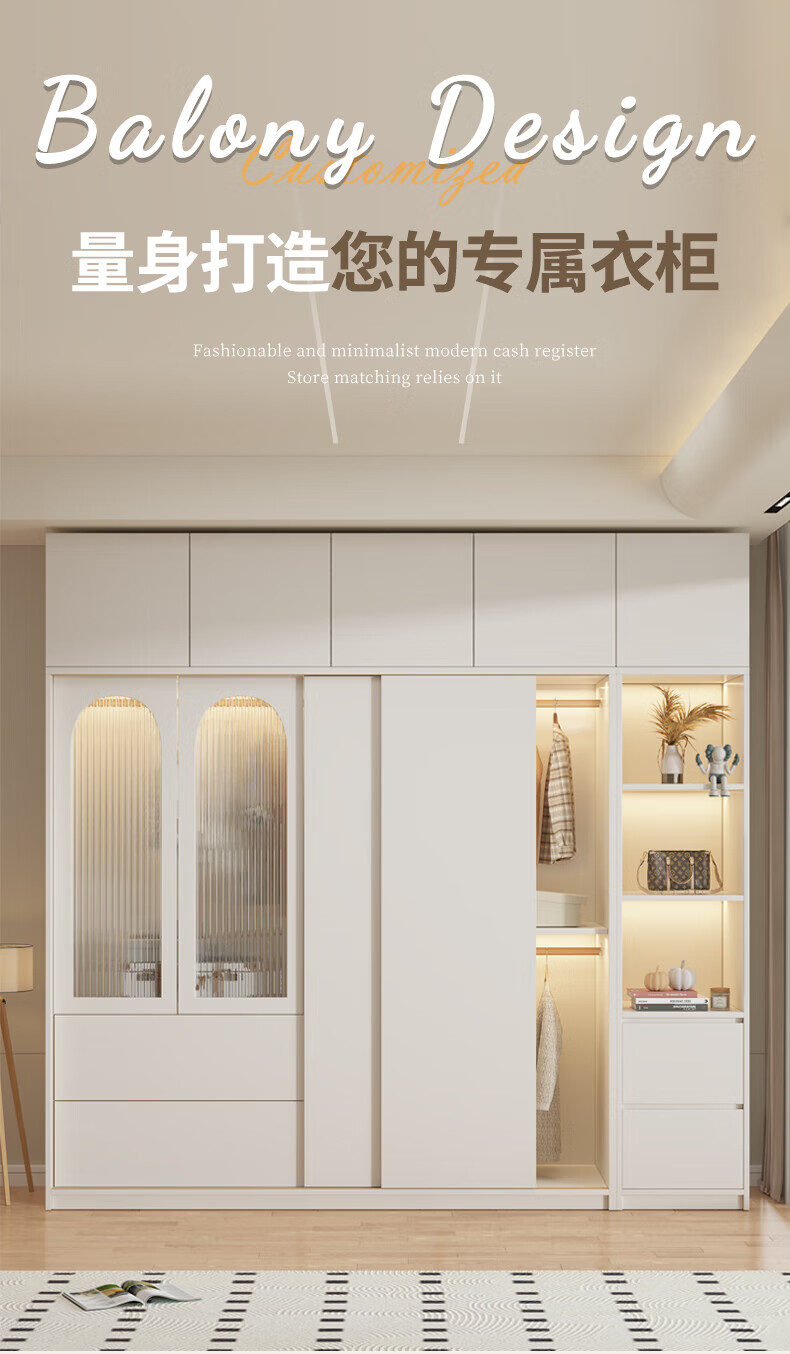 Shangxuan JD Yuncang Shining Wardrobe Bedroom Modern Simple Solid Wood Wardrobe Rental Sliding Door Large Wardrobe Wardrobe Solid Wood 1.6 Meter Wardrobe