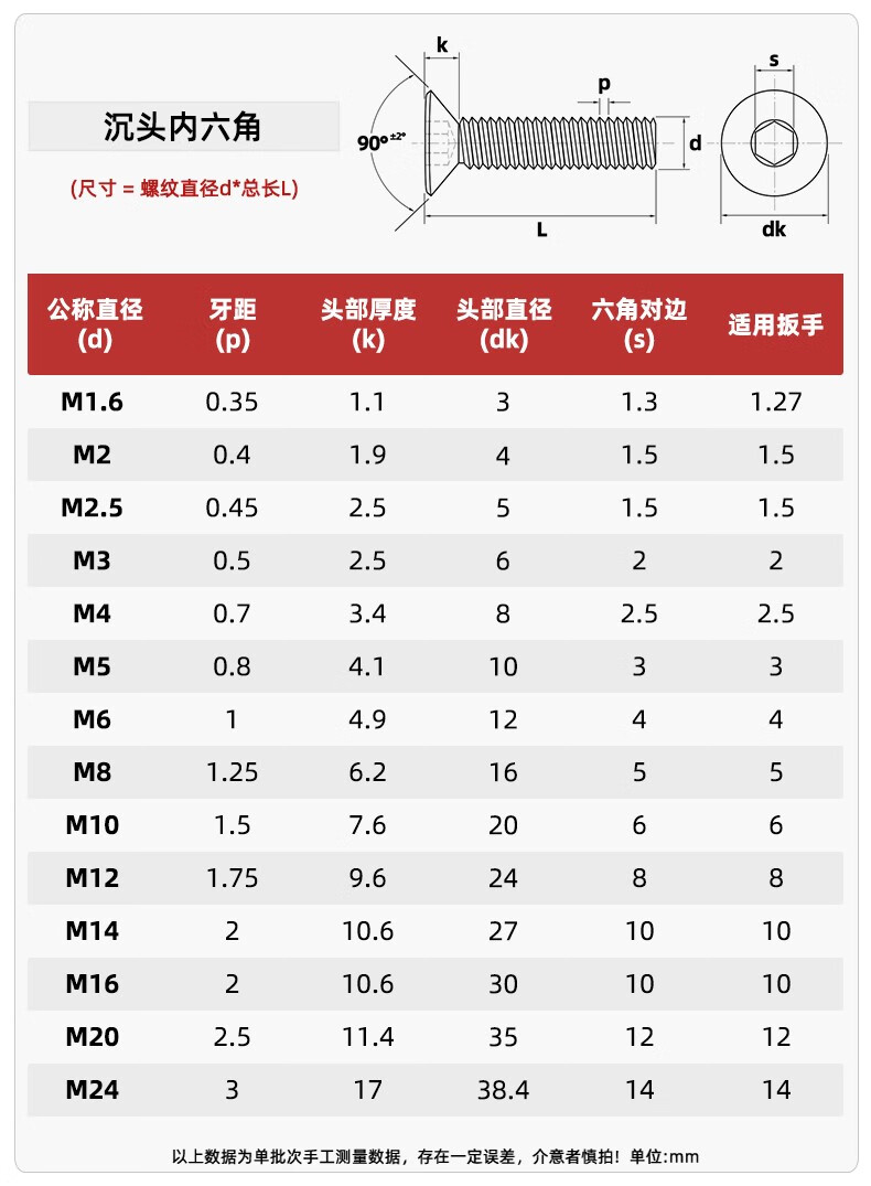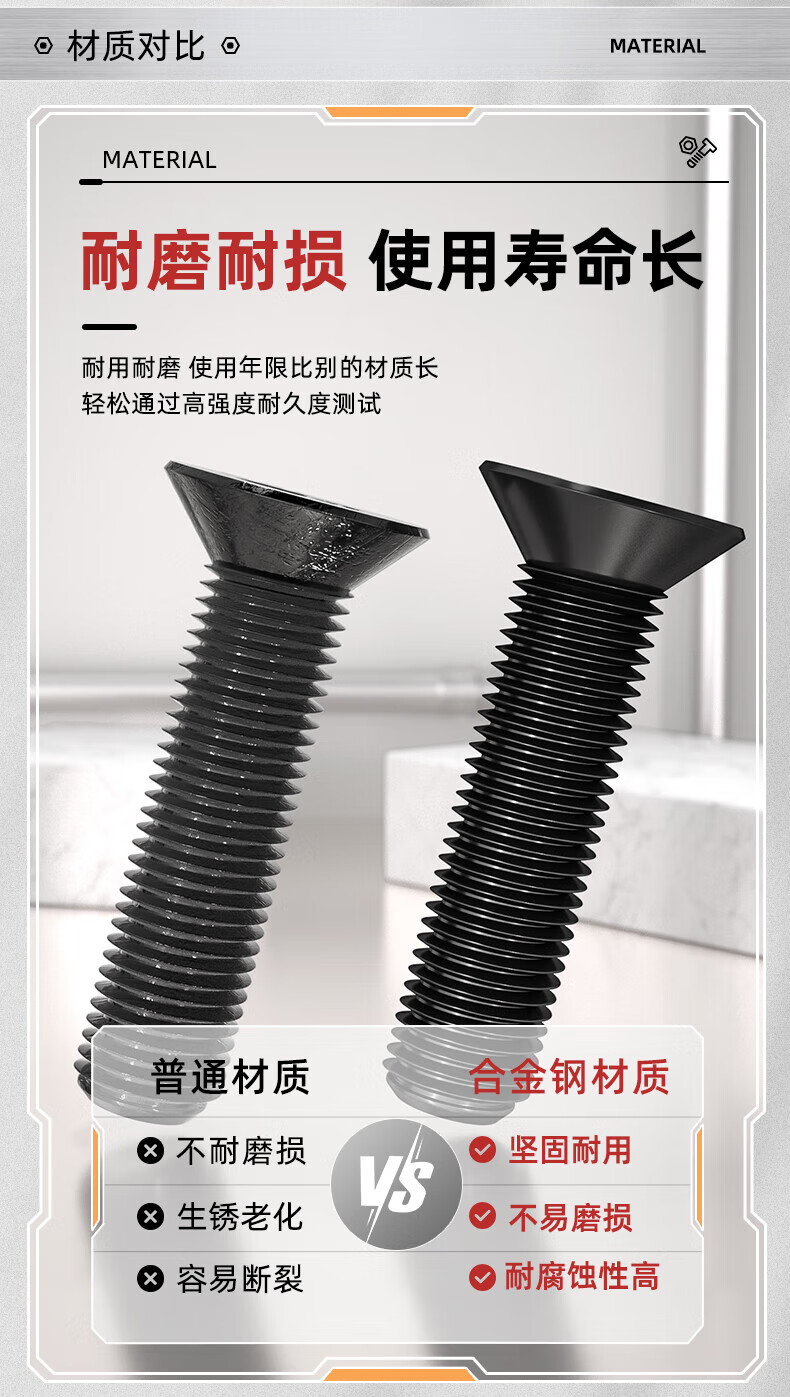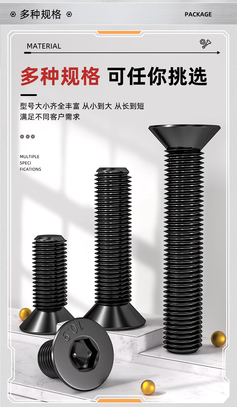 Tianzhuo Hardware Grade 10.9 Black Countersunk Head Hexagonal Screws Flat Head Screws Flat Cup Bolts M2M3M4M5M6M8M10M12-M20 M8*110-5 only