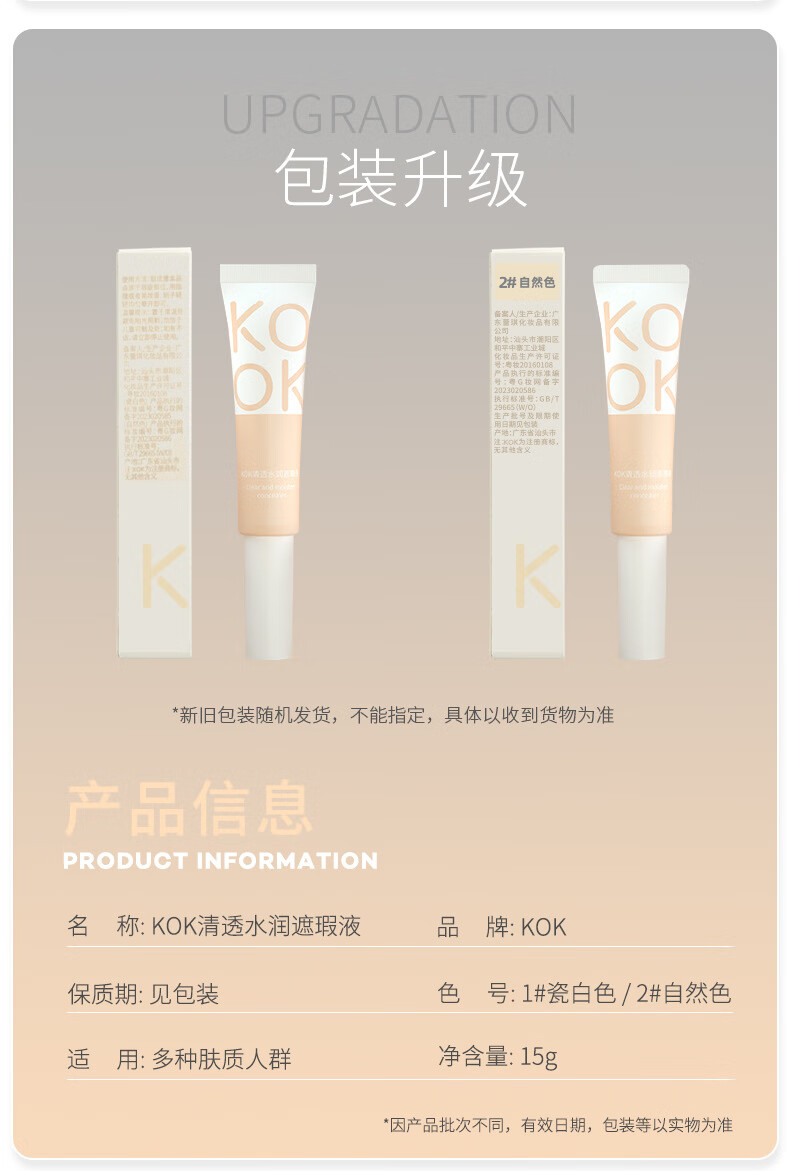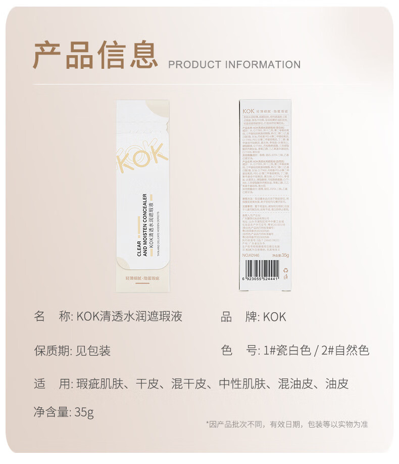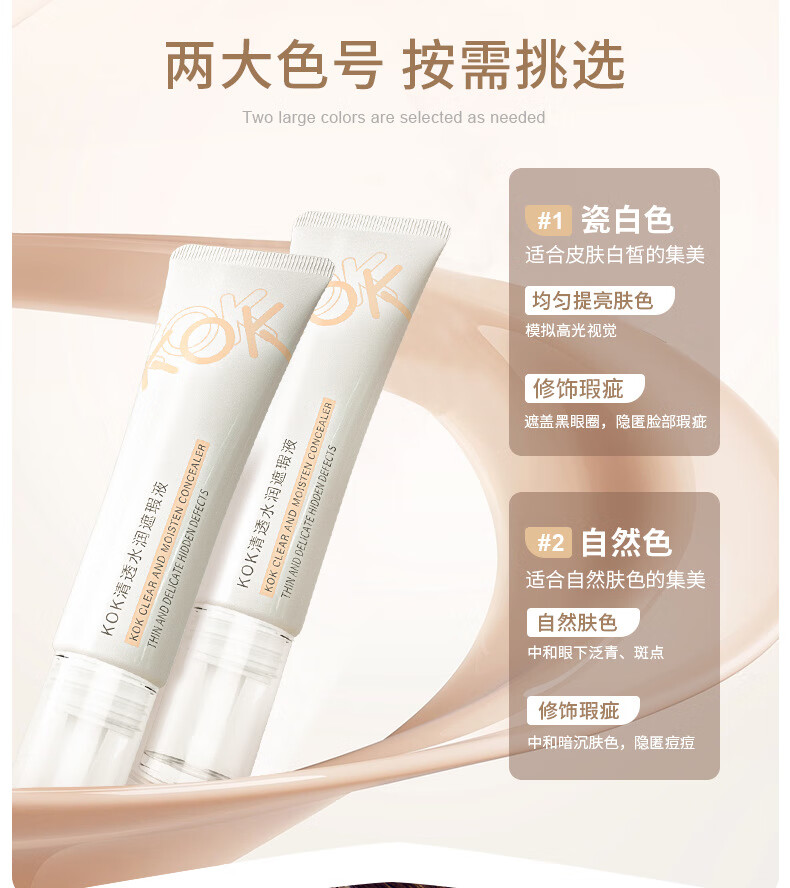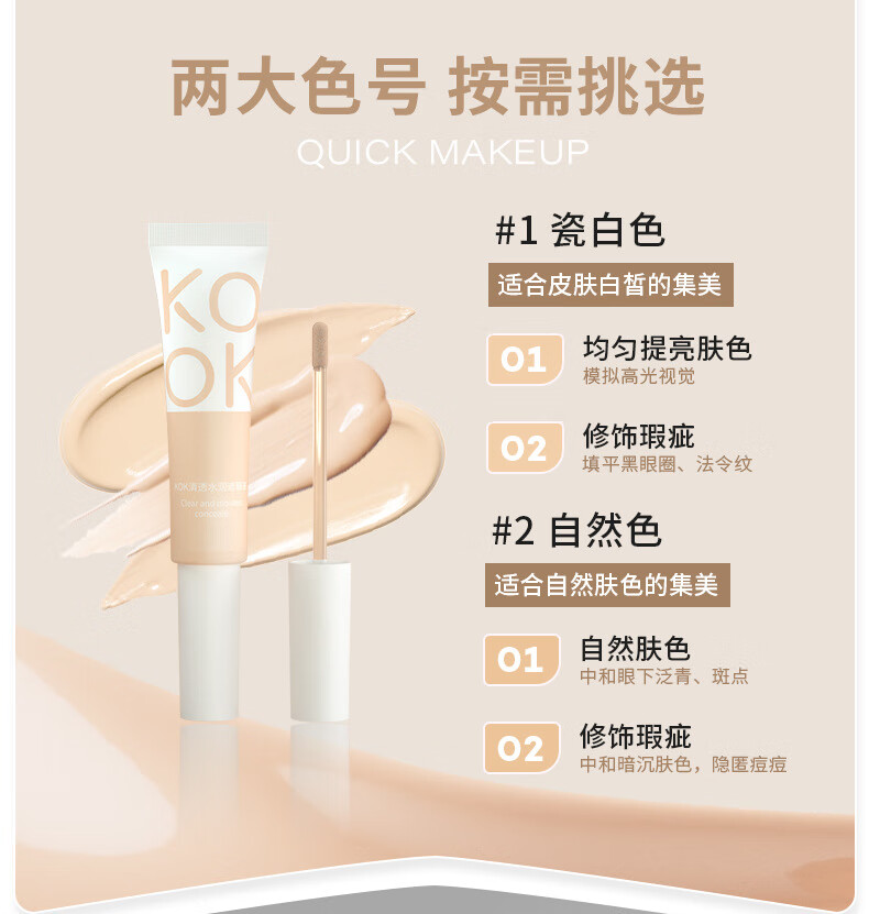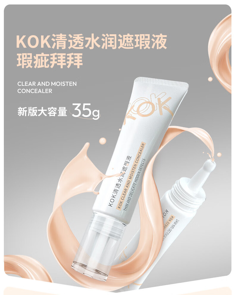 KOK Clear Moisturizing Concealer Liquid Waterproof and Sweatproof Not Easy to Take Off Makeup Foundation Lasts Makeup Naturally Facially Fits Primer Highlights Concealer Liquid 1# Porcelain White 35g g