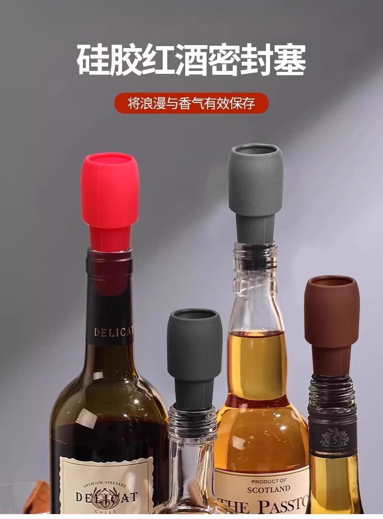 Shouli silicone red wine sealing stopper universal champagne stopper household creative simple fresh-keeping anti-leak stopper wine bottle sealing stopper red 2 pieces