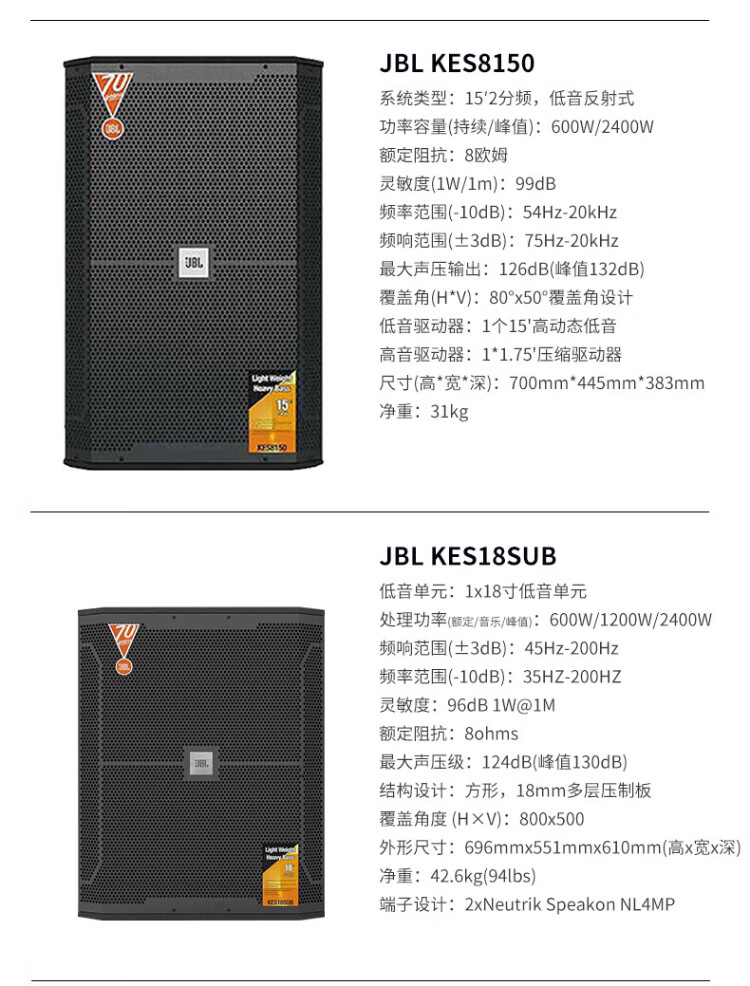 JBL KES8120MKIII karaoke complete stage equipment karaoke speaker ktv open-air concert system professional customized banquet conference room audio karaoke machine high-end version KES8150 2.1 set (18-inch gun)