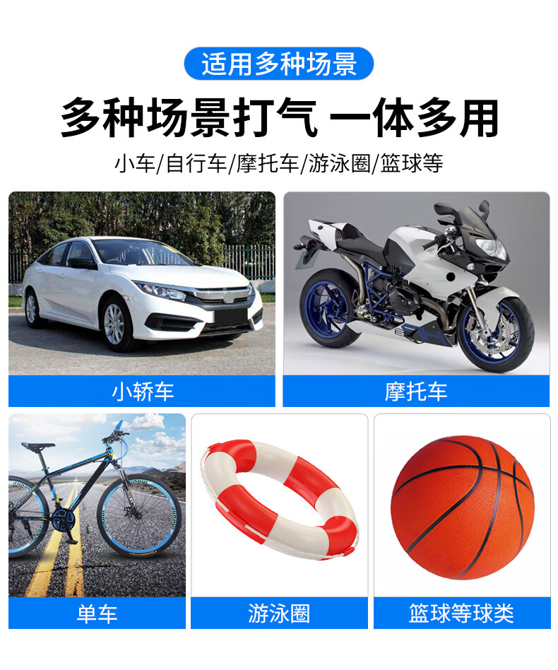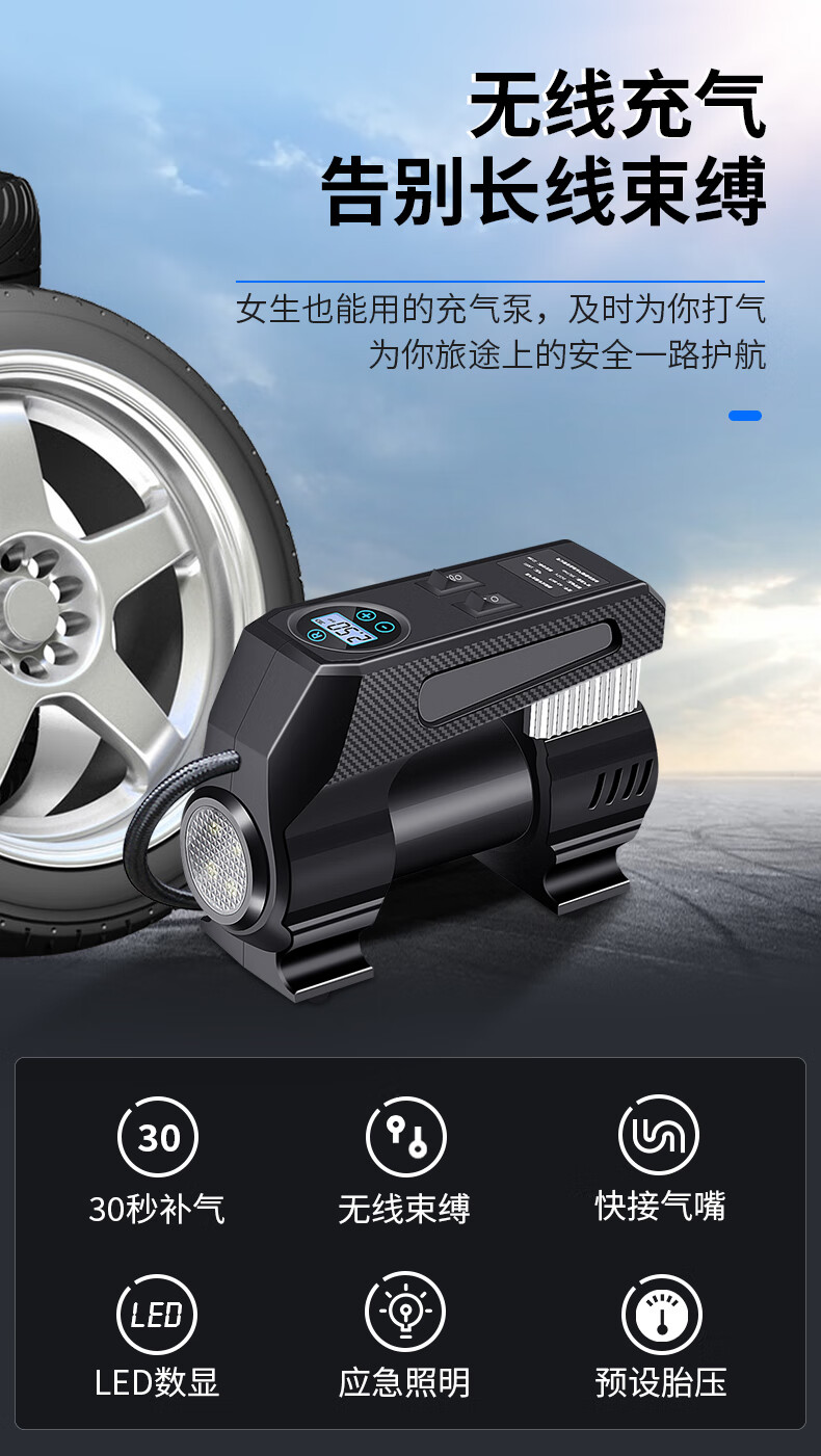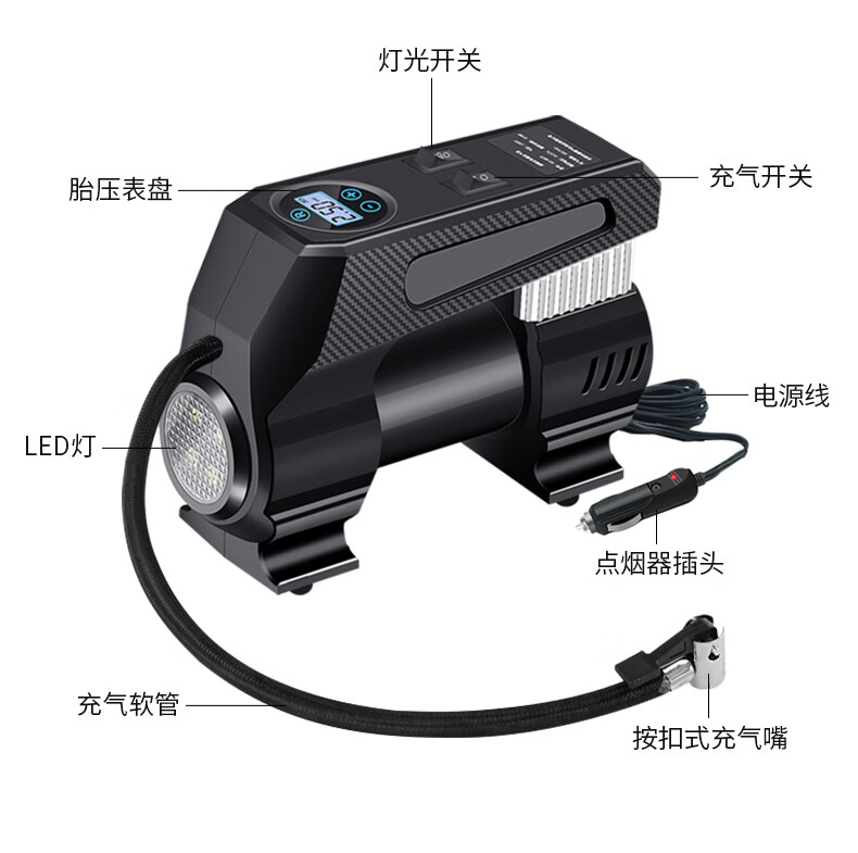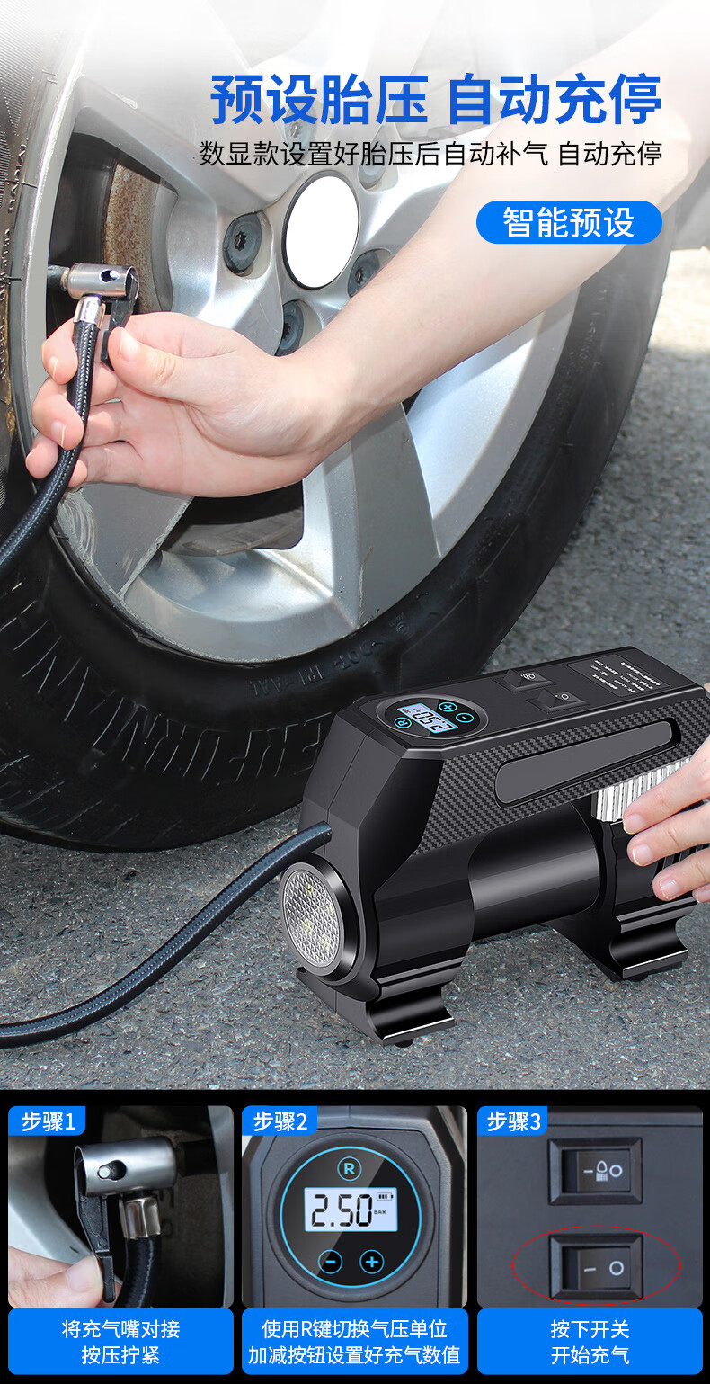 Jumu car air pump, car air pump, tire electric air pump, car air pump with tire pressure measurement cable, car air pump, cigarette lighter and power supply, package + full tool box