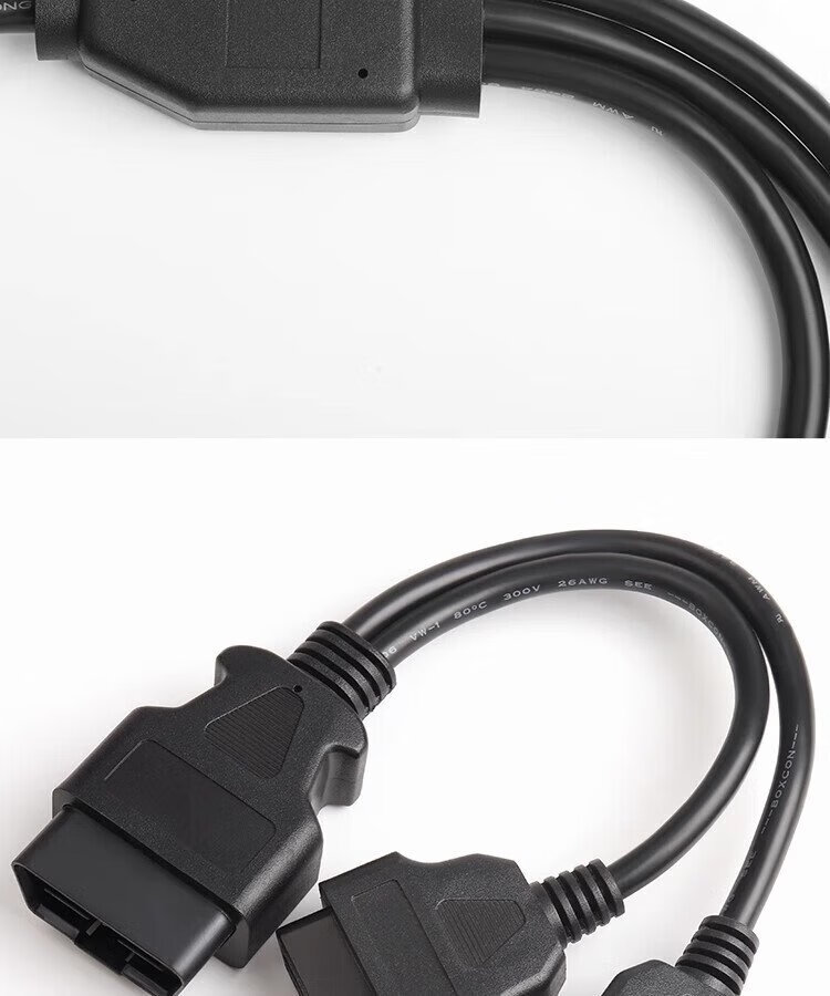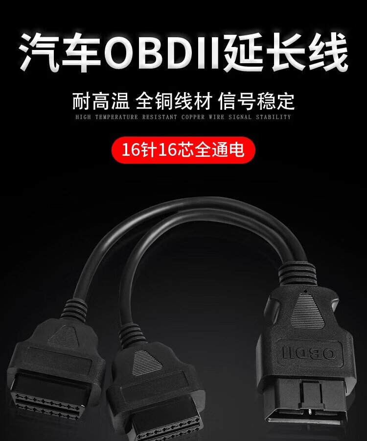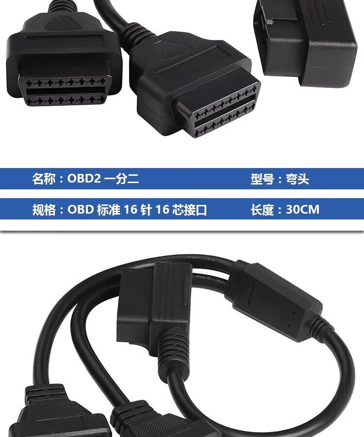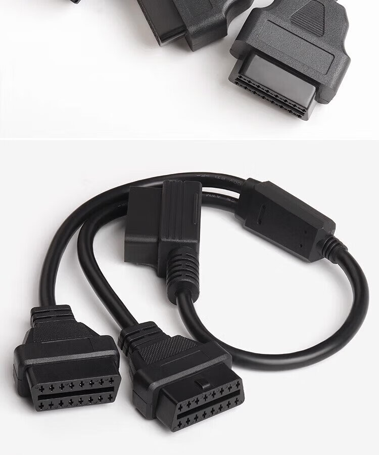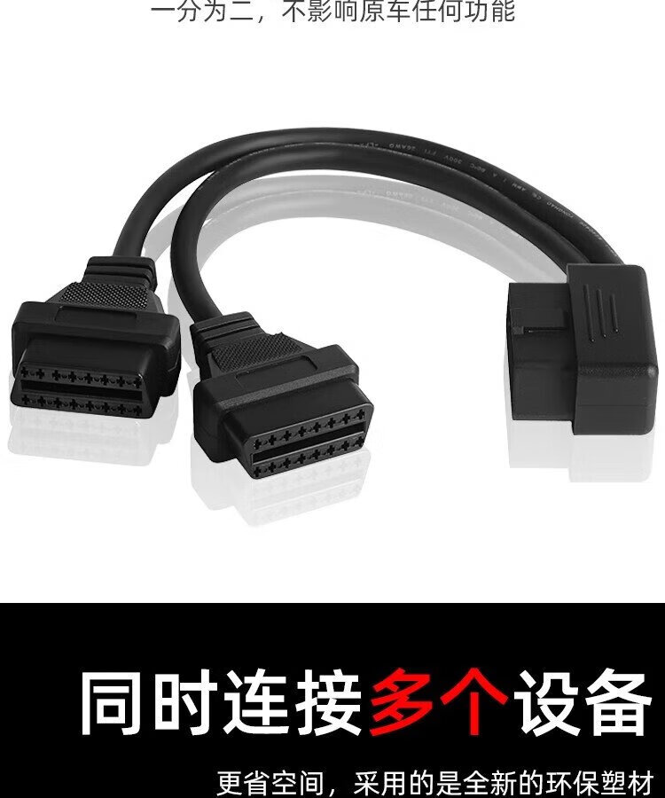 Jingge OBD one-to-two transfer cable extension cord plug car universal extension 16-pin core copper OBD one-to-three connection cable OBD2 elbow one-to-two transfer cable 0.3 m 16-pin 16-core