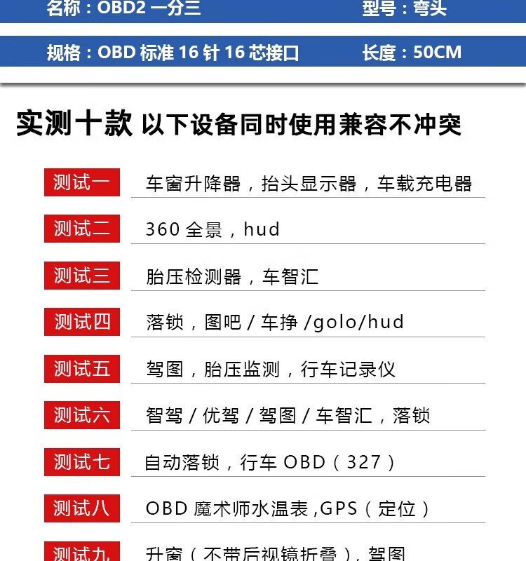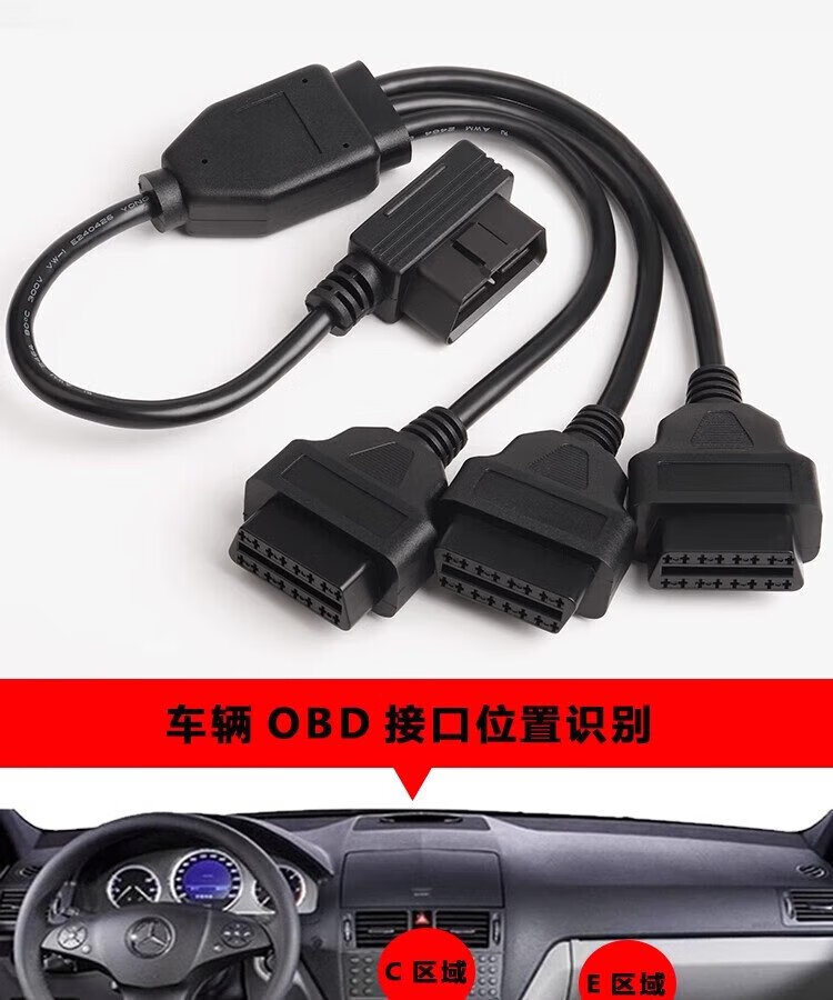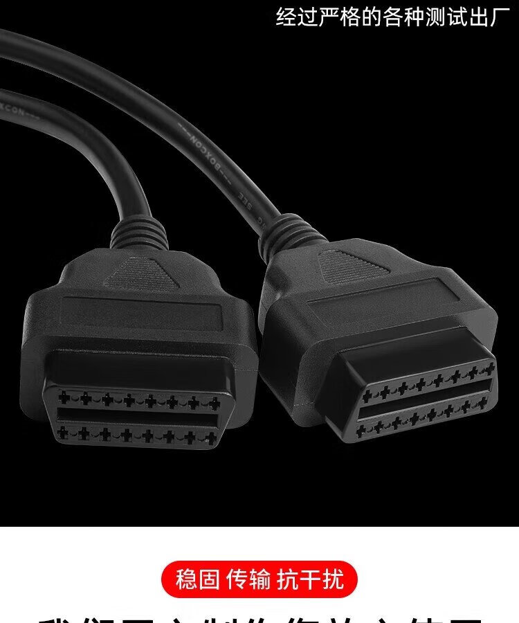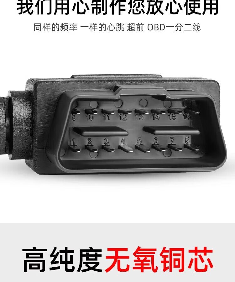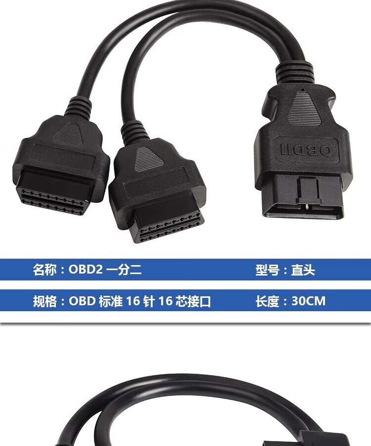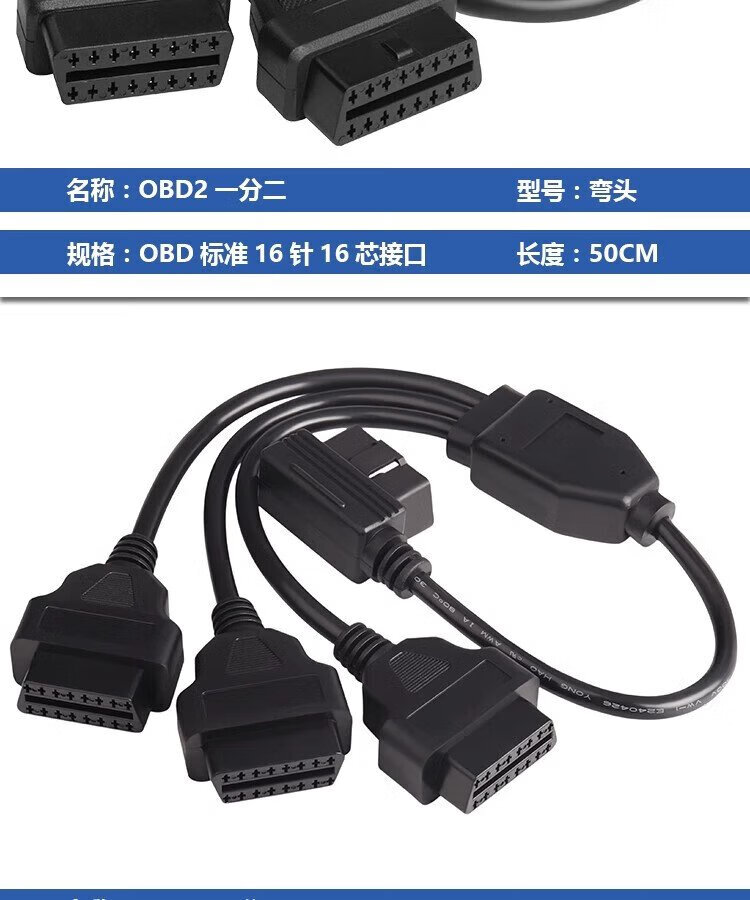 Jingge OBD one-to-two transfer cable extension cord plug car universal extension 16-pin core copper OBD one-to-three connection cable OBD2 elbow one-to-two transfer cable 0.3 m 16-pin 16-core