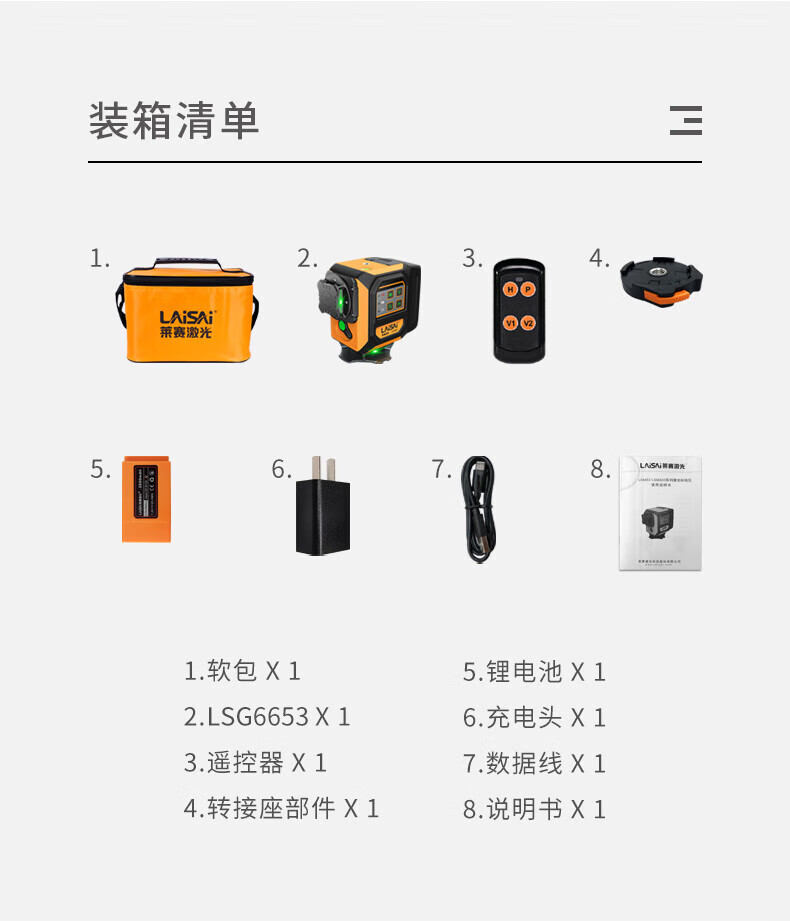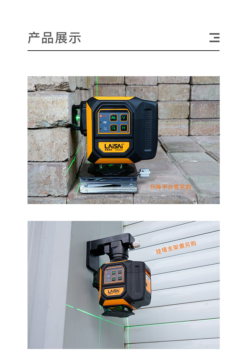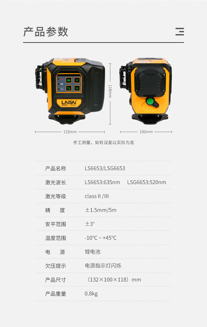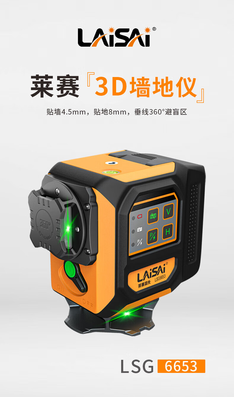 Laisai laser level green light 12-line new LSG6653 wall-mounted all-in-one machine strong light outdoor high-precision infrared 12-line green light LSG6653 dual battery