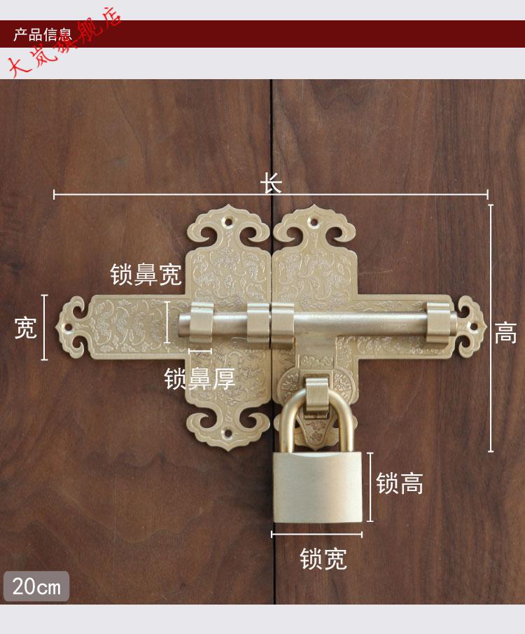 Chengzhong style copper thickened latch old wooden door lock garden ancient building courtyard door latch antique door buckle copper door bolt plain 25cm antique copper