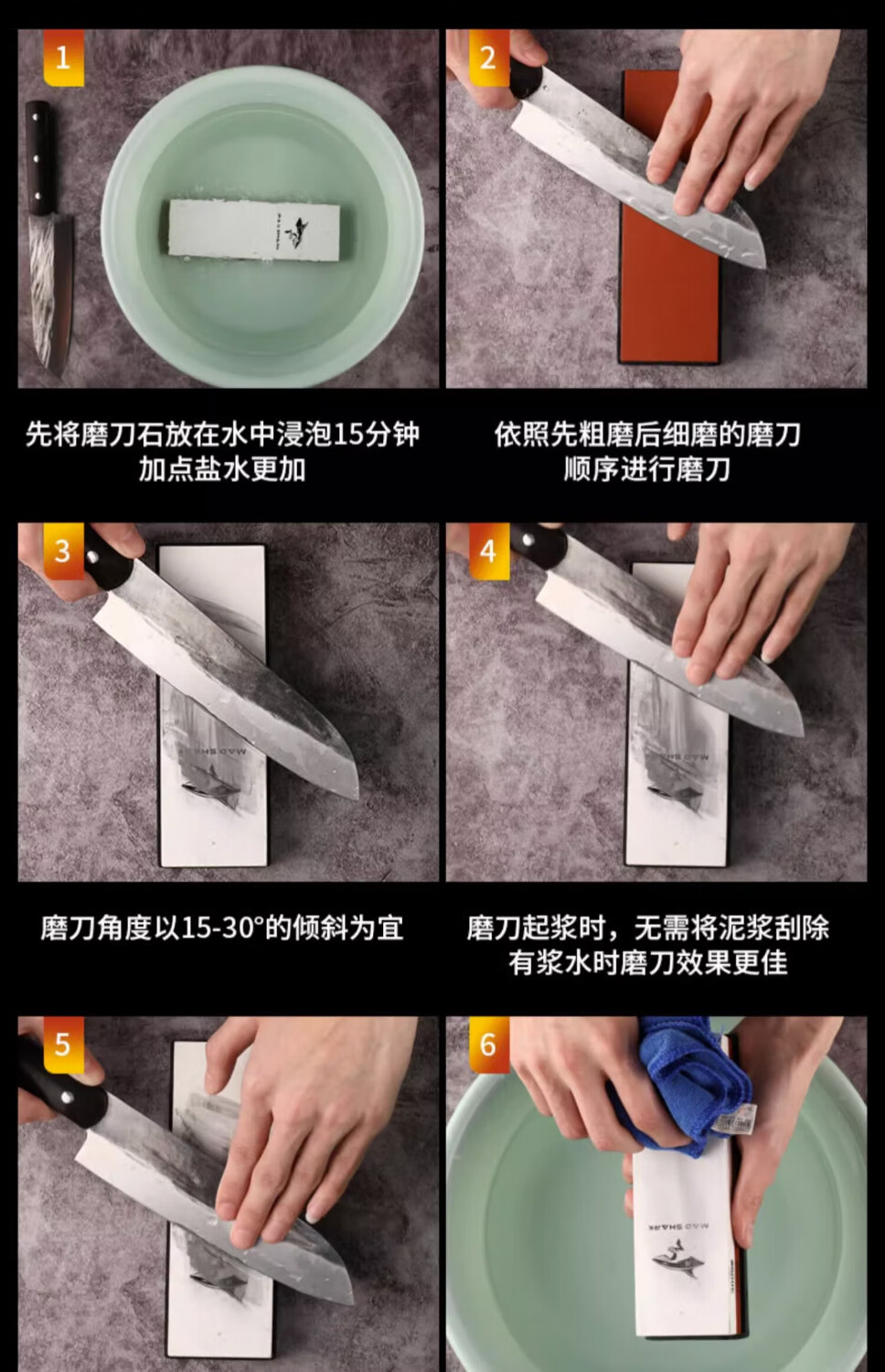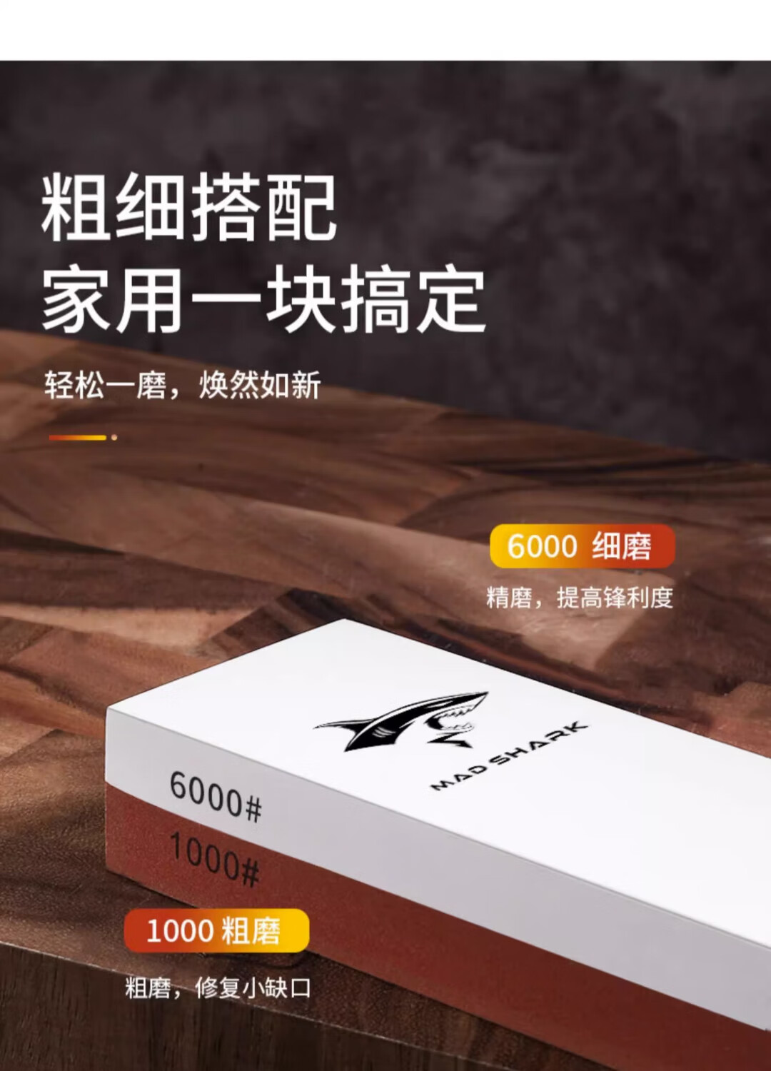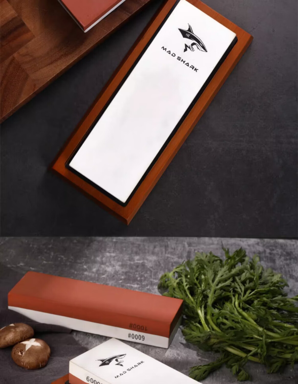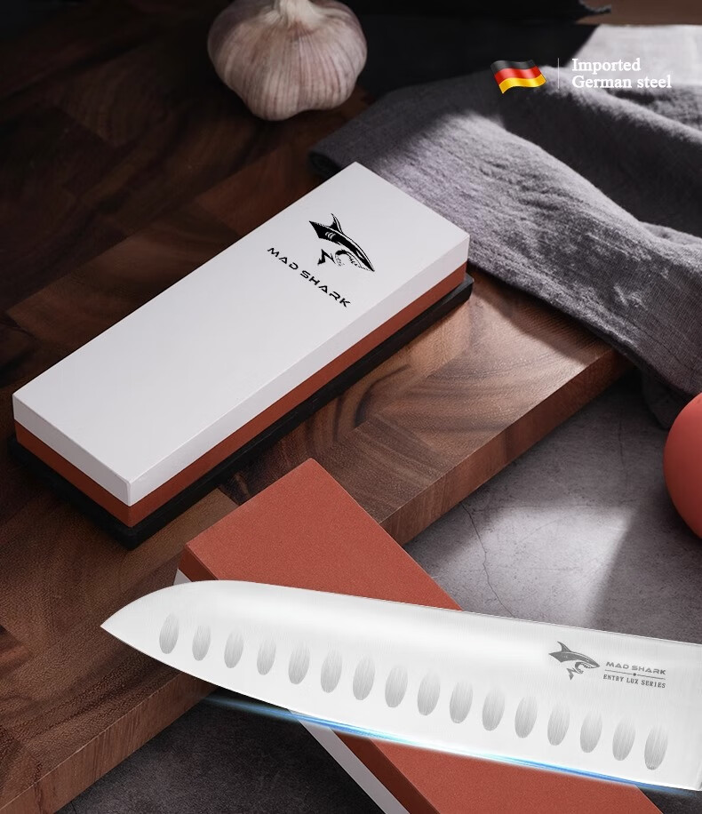 MAD SHARK German imported crazy shark whetstone household kitchen knife blade double-sided thickness oil stone kitchen artifact emery whetstone whetstone + bamboo base