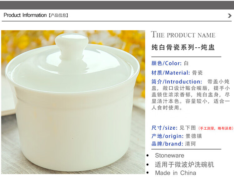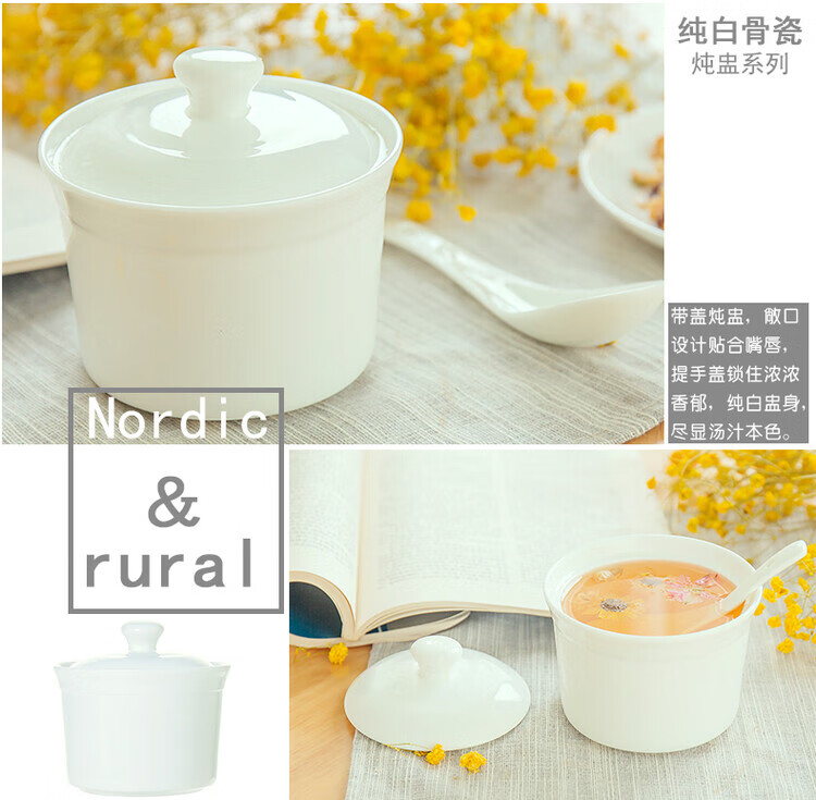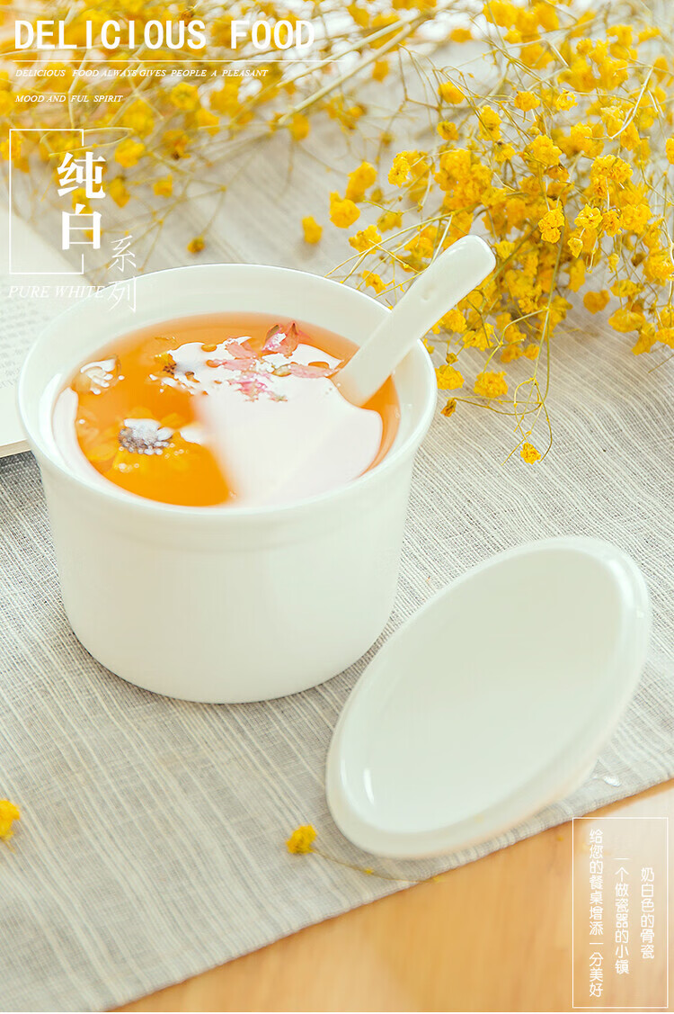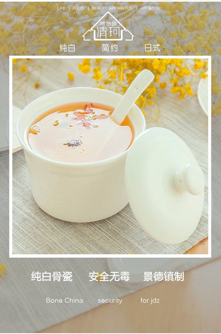 Qingke Jingdezhen water-proof bone china white covered underglaze color ceramic stew cup bird's nest soup cup children's steamed egg bowl household stew cup