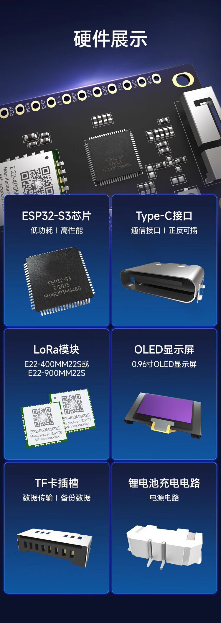 Ebyte Open Source Development Board LoRa Spread Spectrum WiFi Bluetooth BLE Test Board ESP32-S3 Chip SX1268/SX1262 400 Band Kit EoRa-S3-400TB