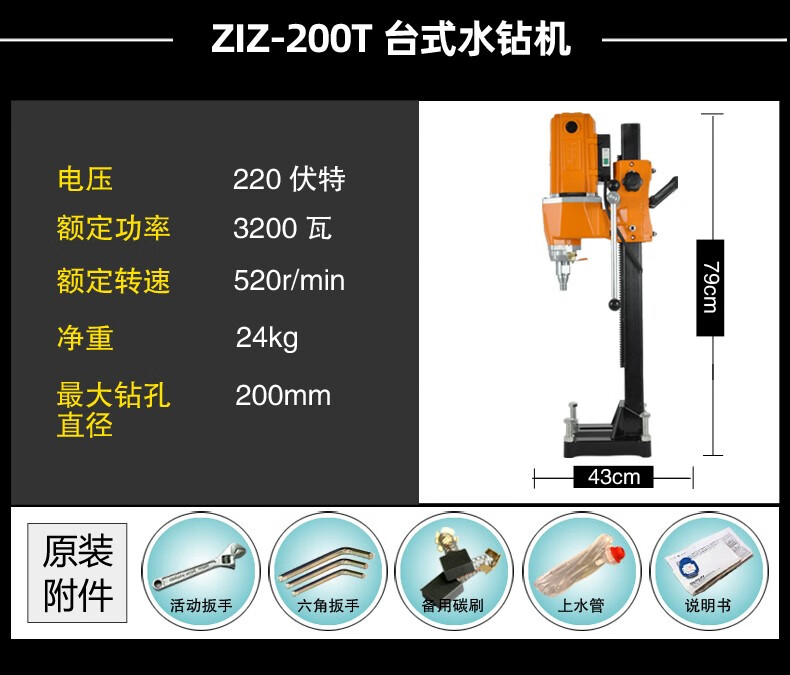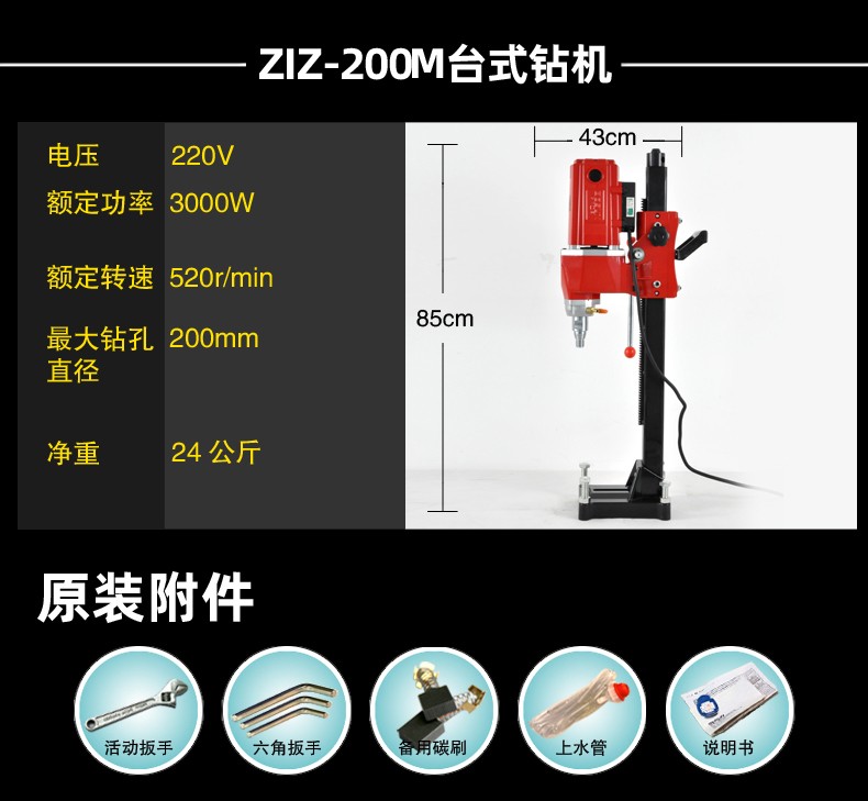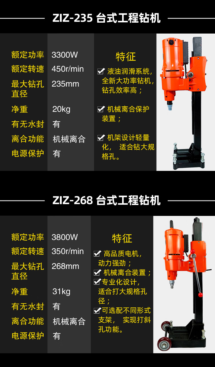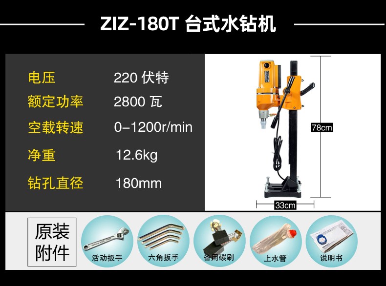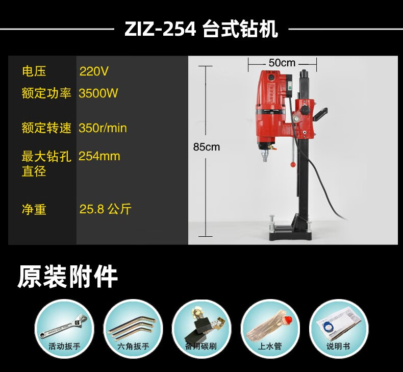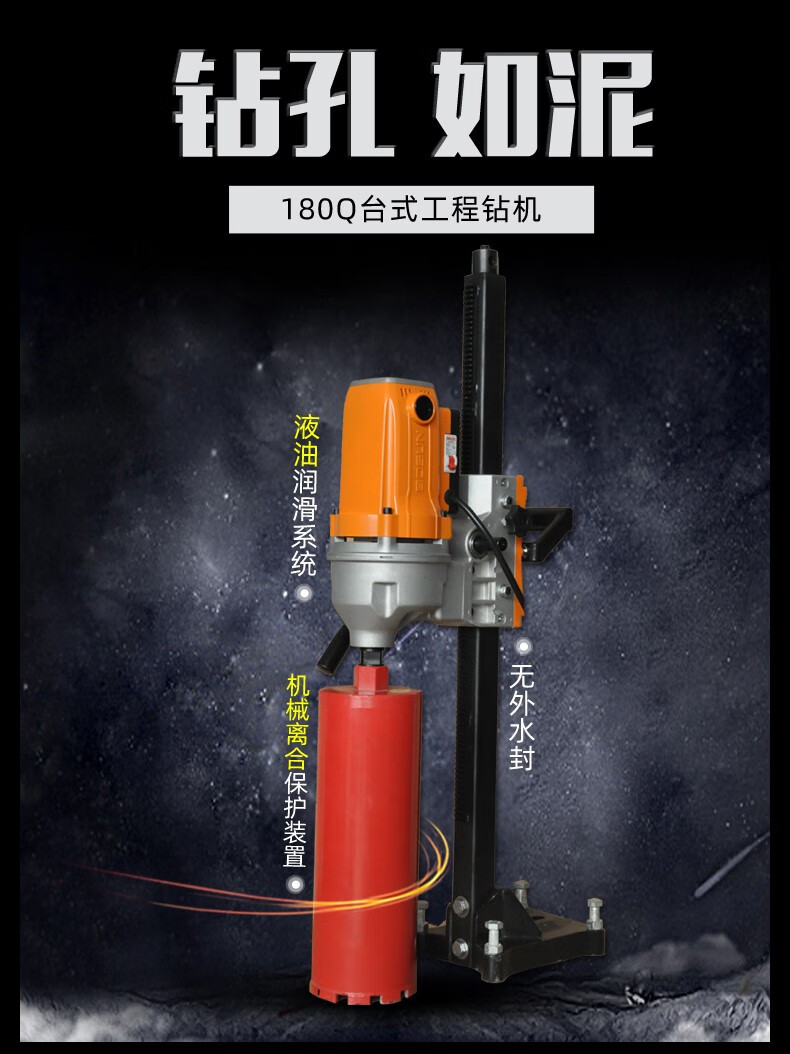 Bosun Tools (Bosun) Water Drilling Rig Desktop Waterless Sealing High Power Drilling Machine Stand Concrete Air Conditioning Drilling Machine Water Rotating Head New 180Q1 Roller Sleeve Drilling Rig