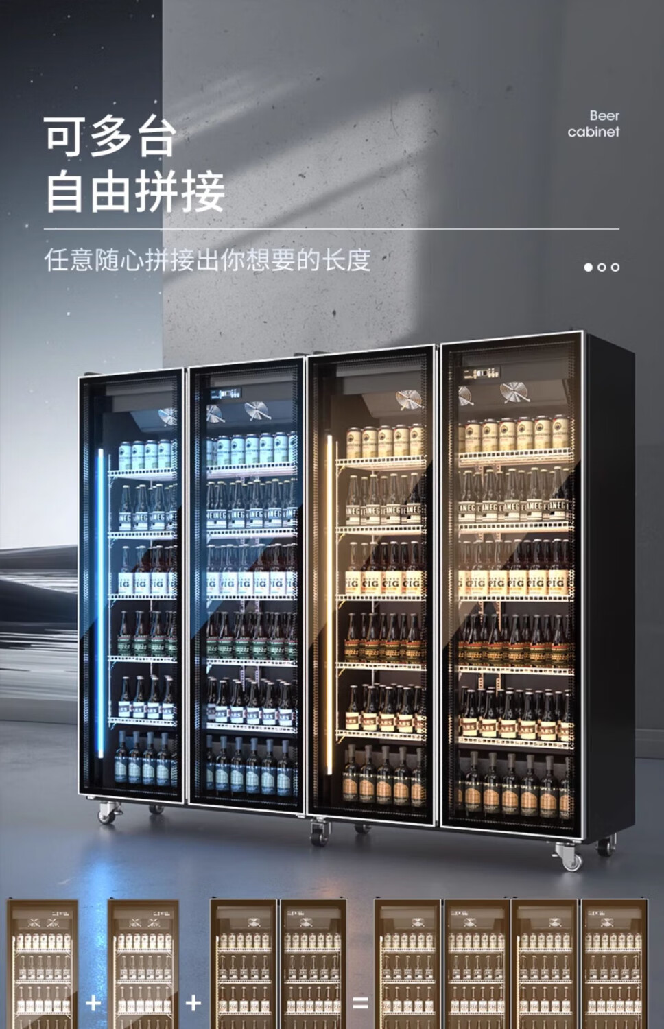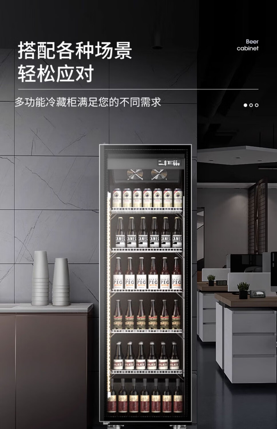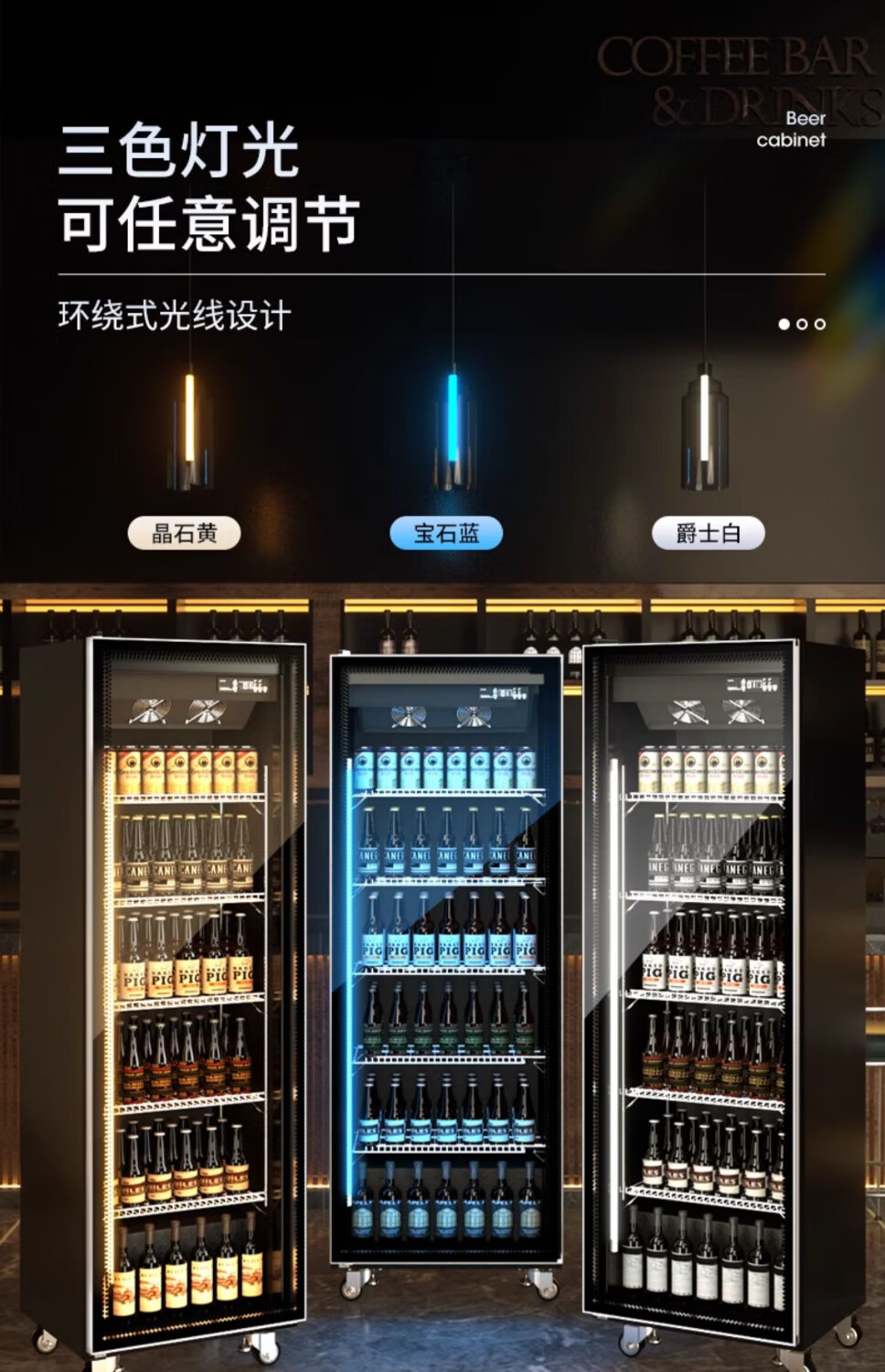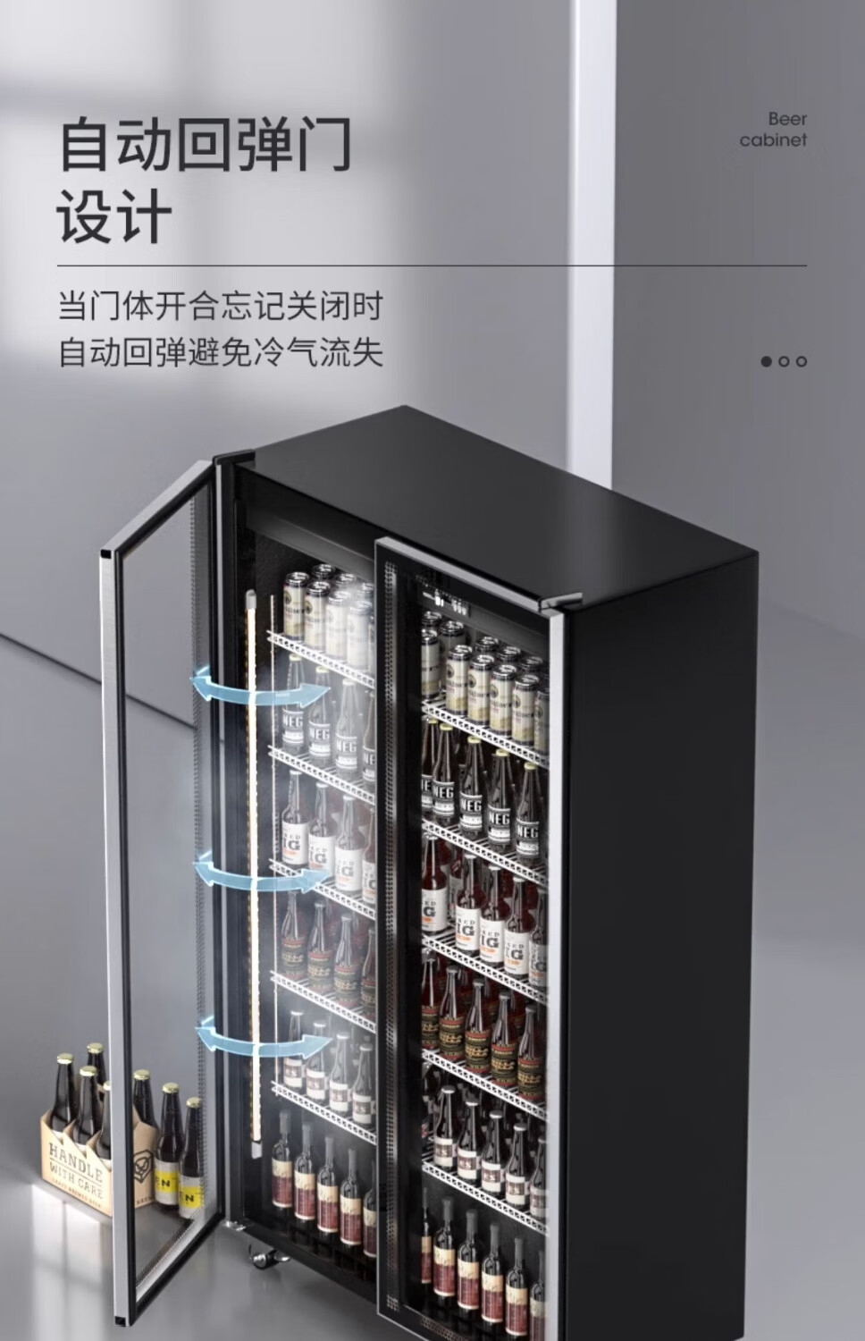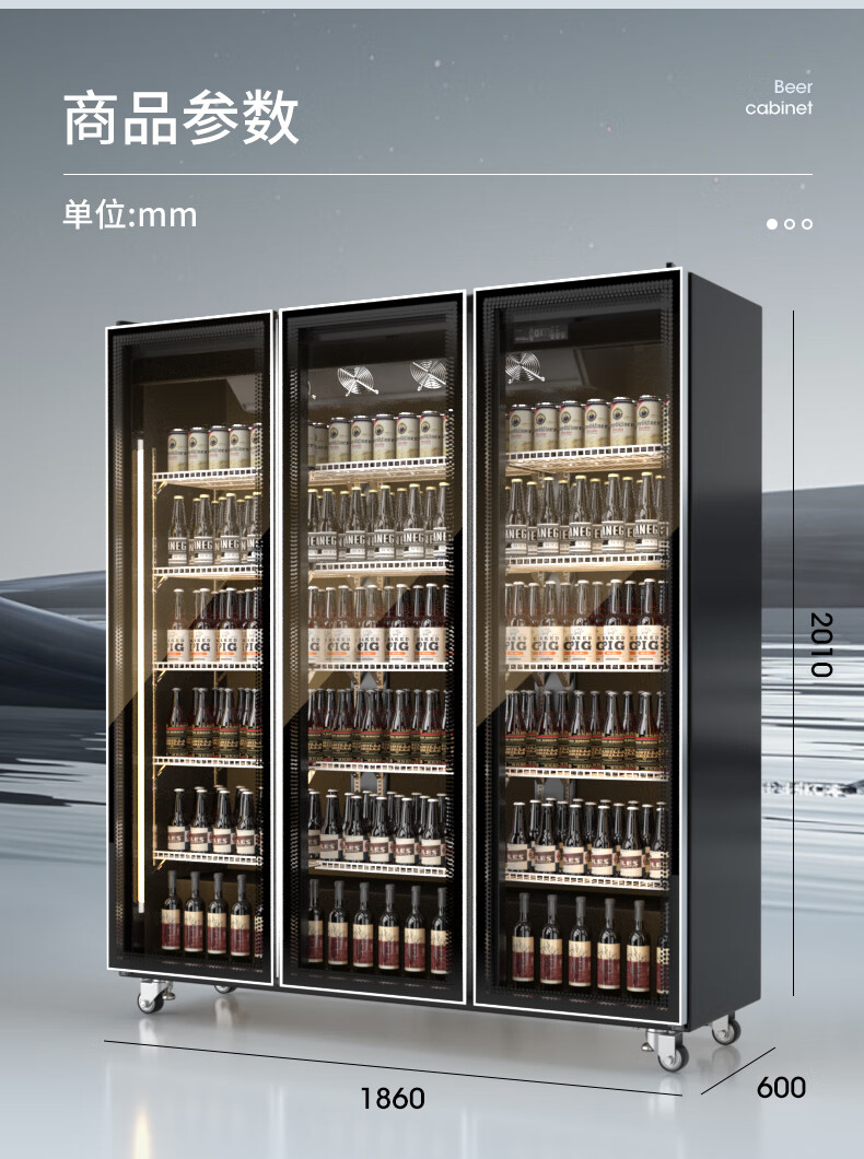 Melanka display cabinet refrigerated Internet celebrity beer cabinet supermarket convenience store refrigerator freezer commercial bar wine preservation cabinet full-screen cold drink cabinet rebound door beverage cabinet air-cooled and frost-free single door 620*600*1830 three-color light high-definition anti-fog style