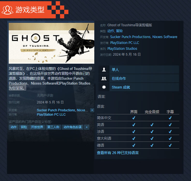 Steam game Ghost of Tsushima DIRECTOR S CUT national activation code CDK spot standard version of Ghost of Tsushima director's cut