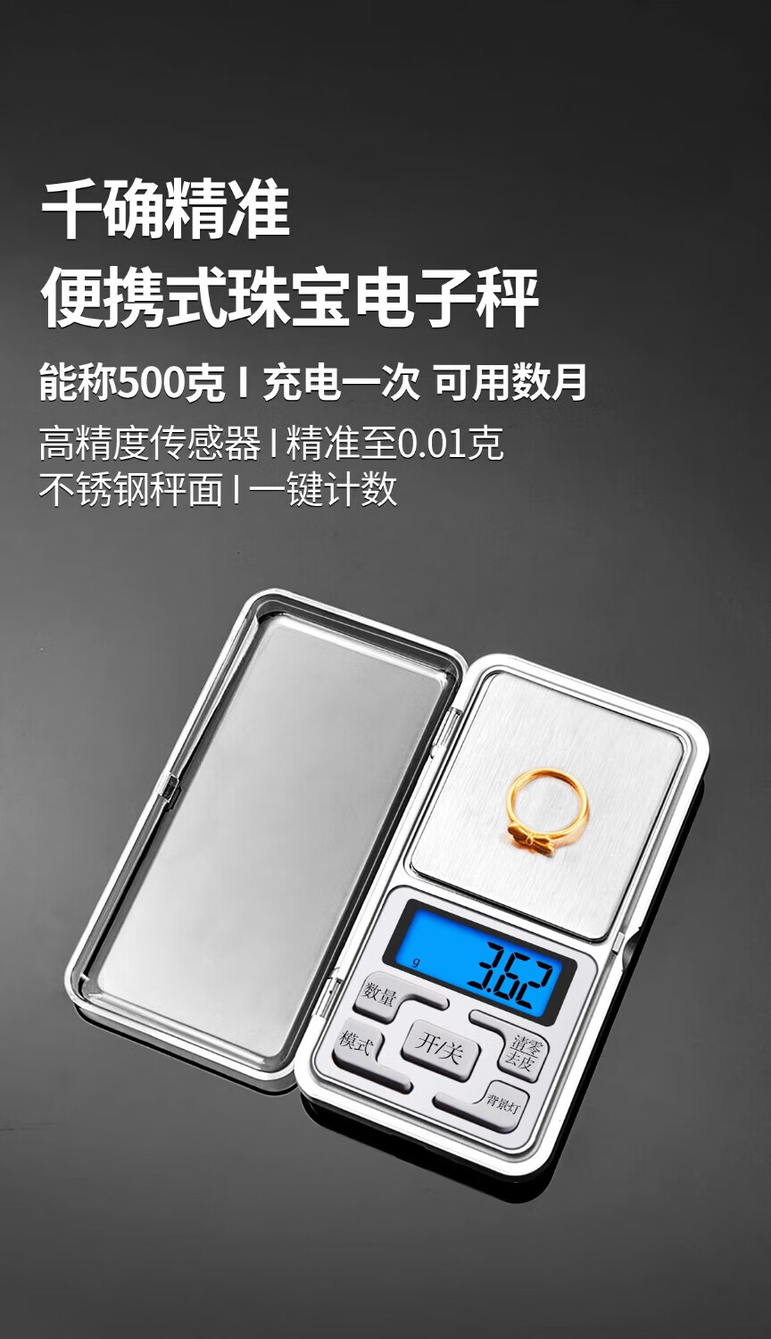 KTRUE high-precision electronic scale balance gold weighing scale jewelry small household precision special tea weighing scale battery model 100g/0.01g