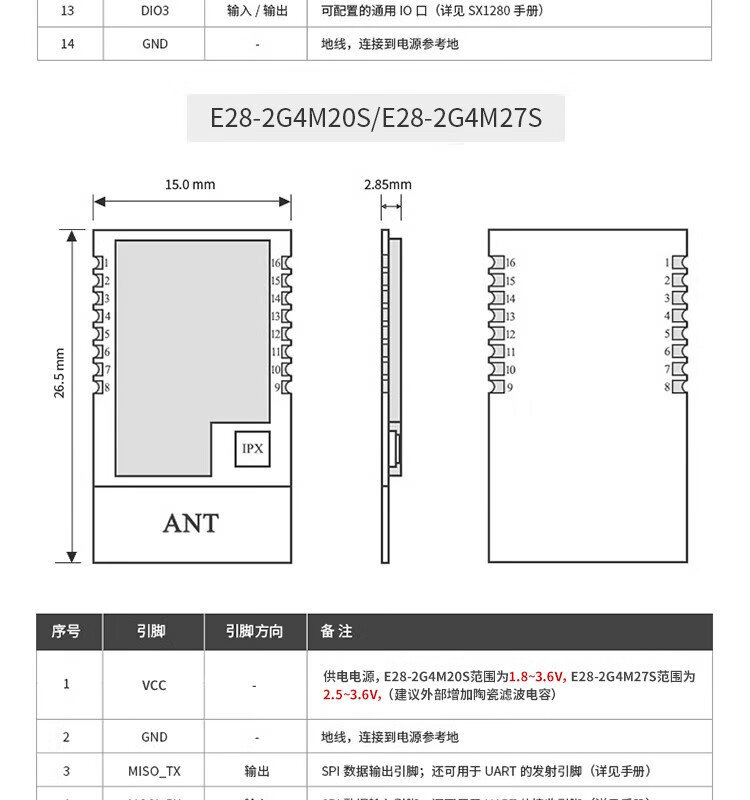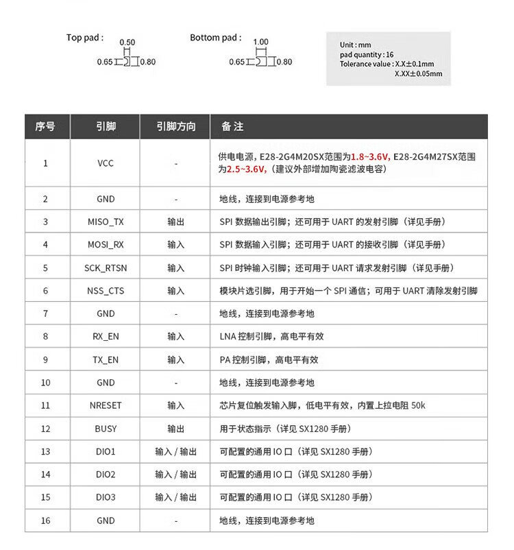 Ebyte LoRa spread spectrum 2.4G module SX1280/SX1281 long-distance communication BLE ranging requires your own antenna E28-2G4M12SX