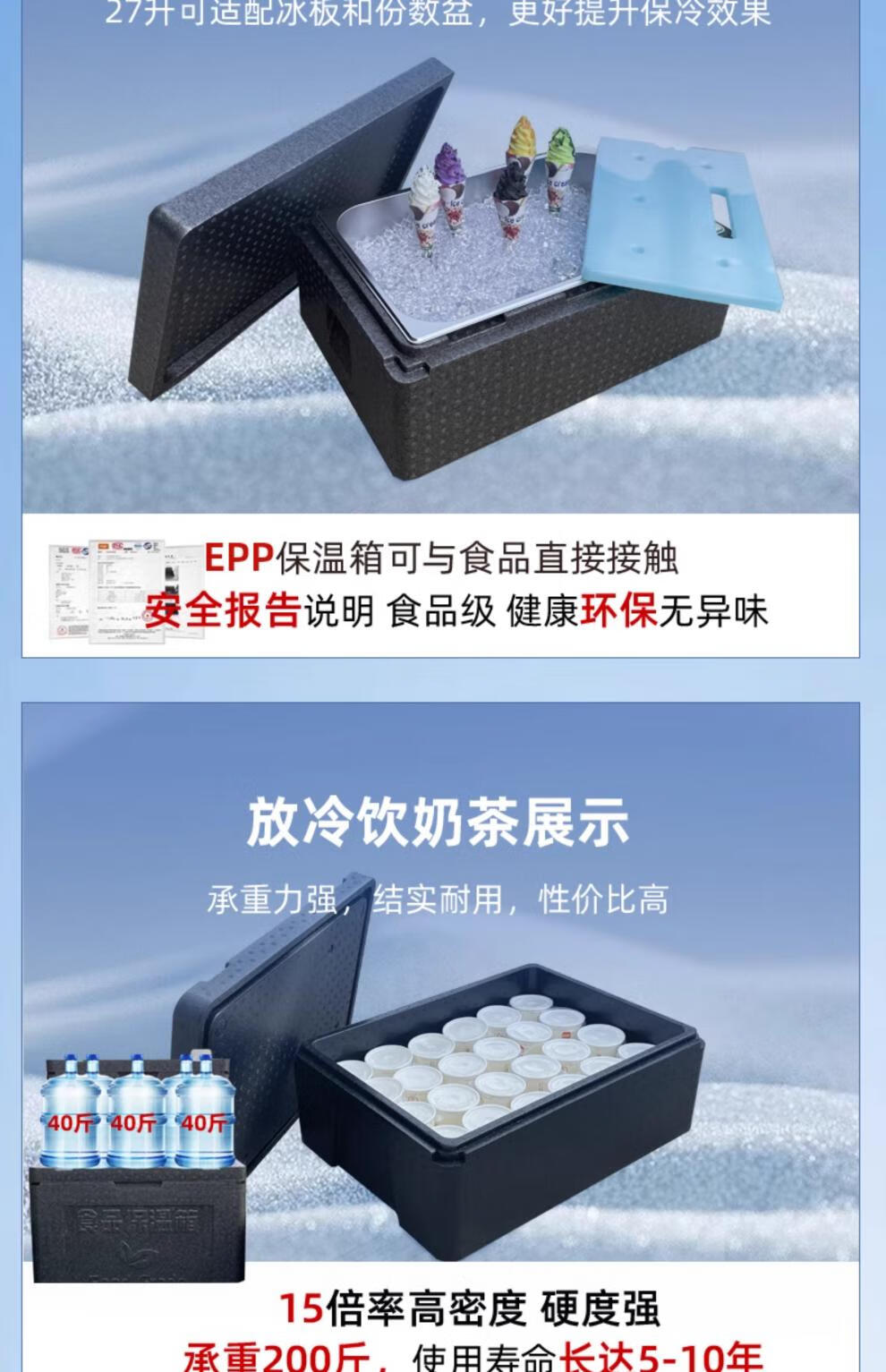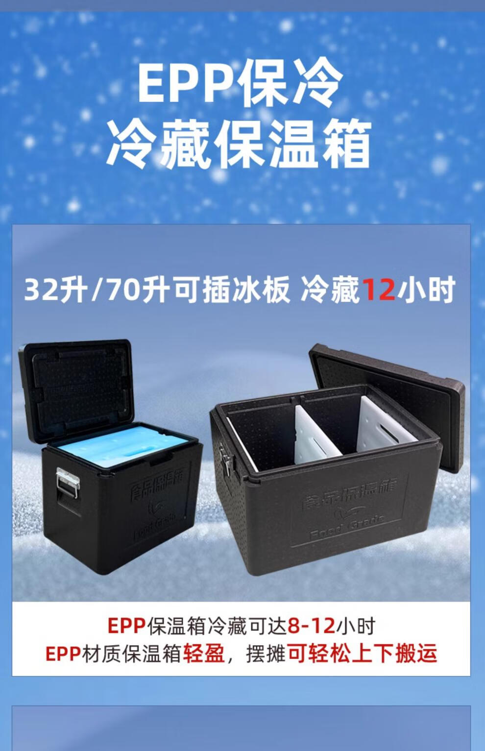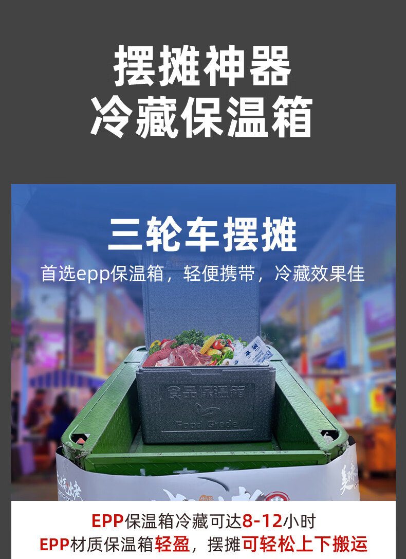 Gongma epp insulated box commercial large stall takeout delivery outdoor food grade refrigerated box hot and cold foam box black 108L box (with hinge + handle + lock)