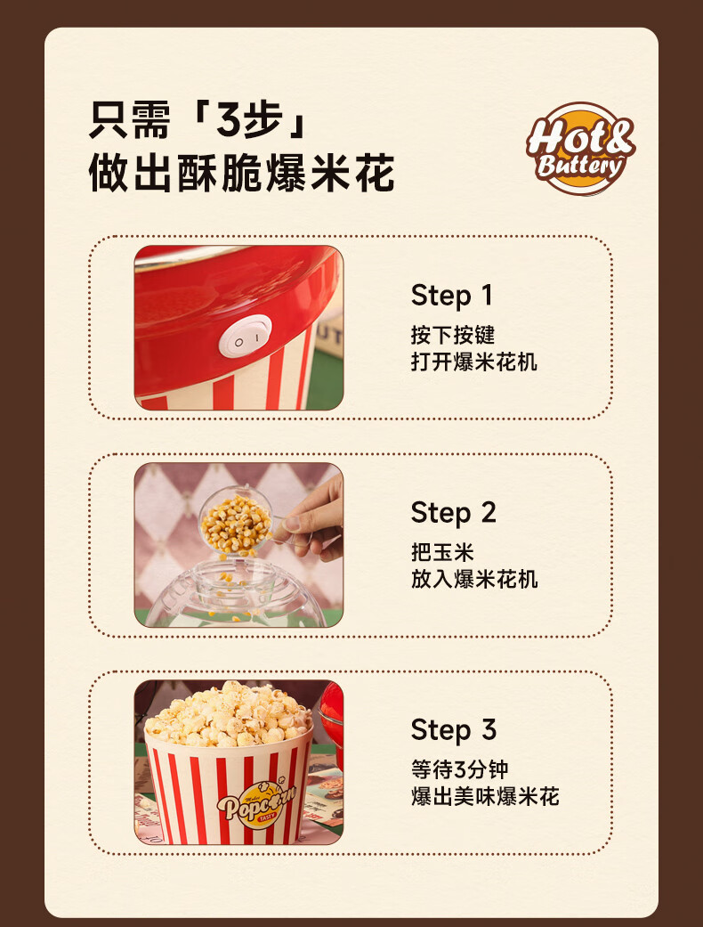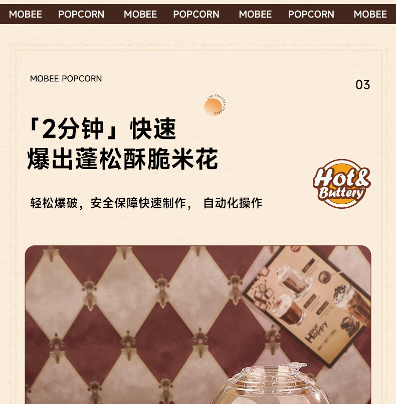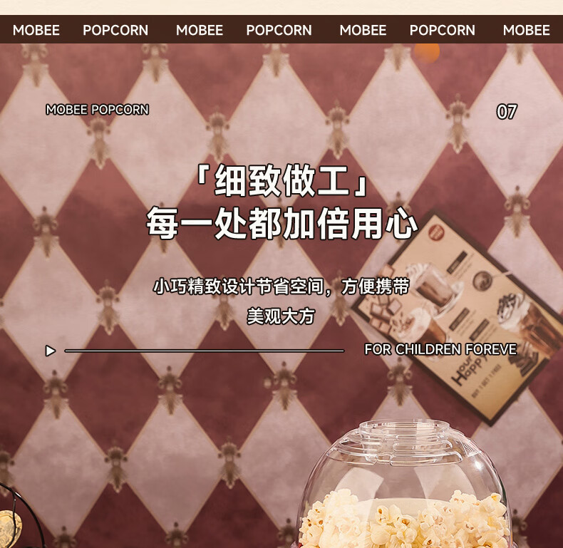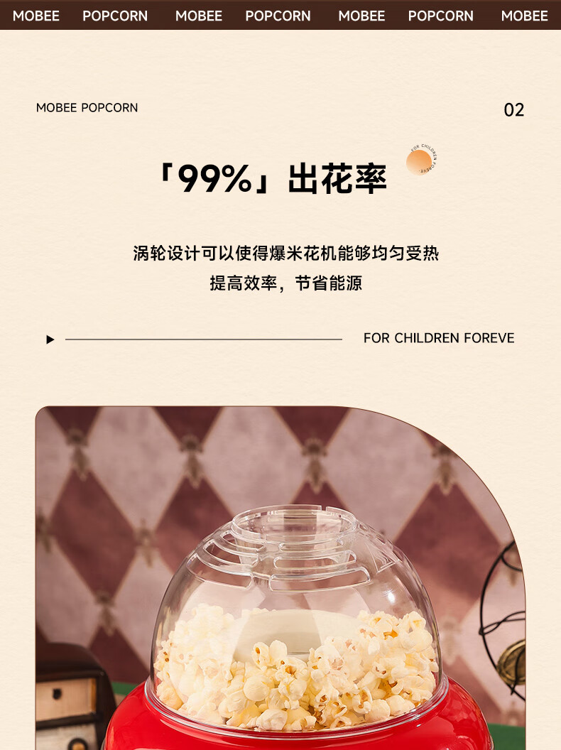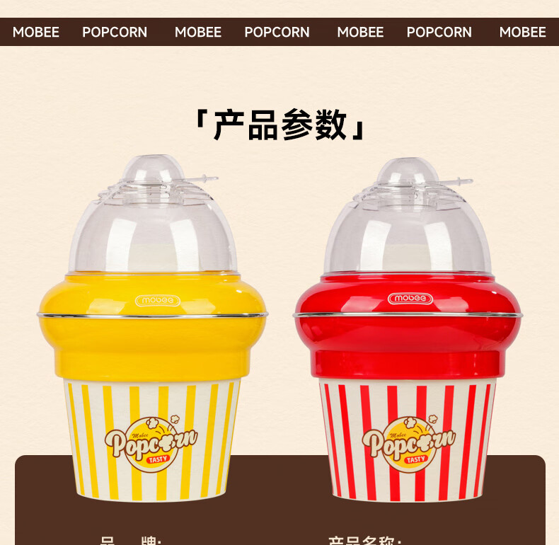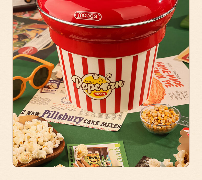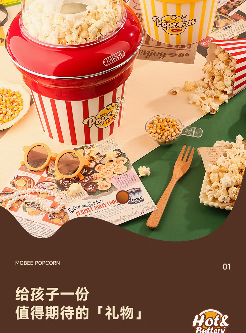Mobee popcorn machine household fully automatic mini small Coca-Cola popcorn machine electric boys and girls cream corn kernels homemade popcorn machine children's toys birthday gift trendy popcorn machine red