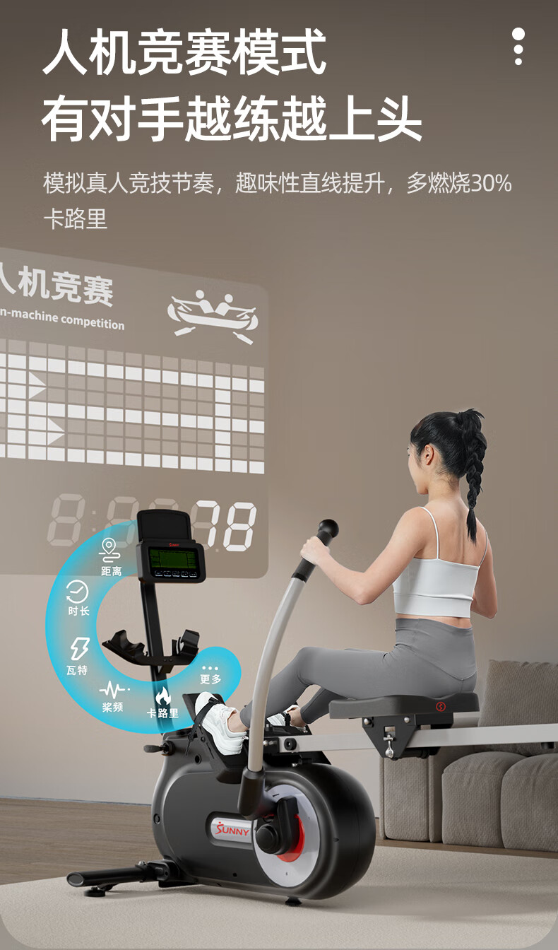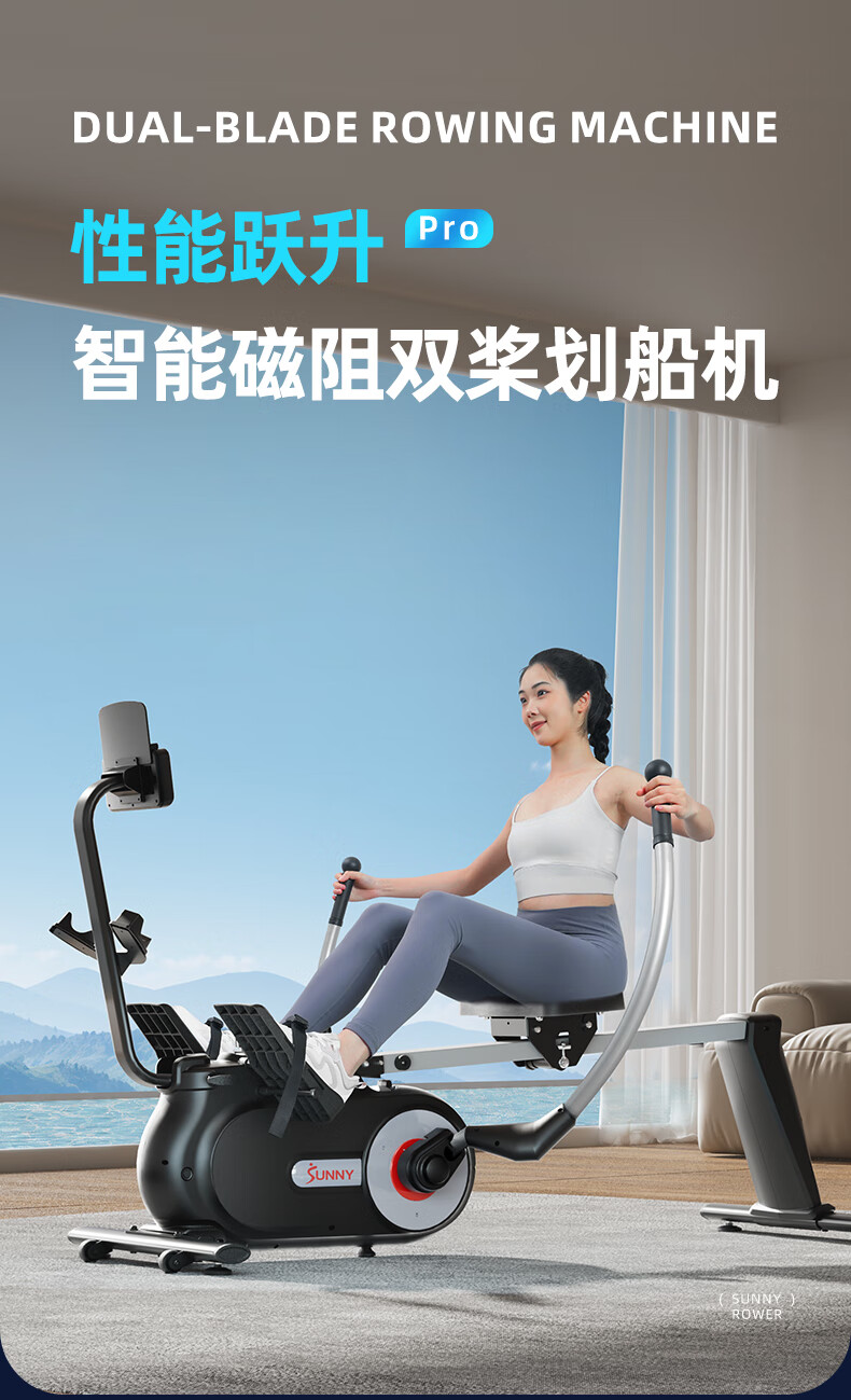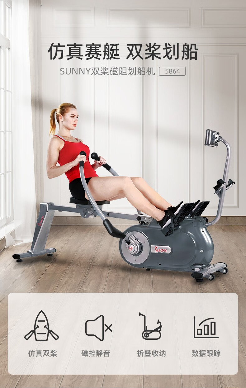 SUNNY American sculls rowing machine home magnetically controlled foldable rowing machine indoor sports fitness equipment rowing machine elegant white 16 levels of resistance | shoulder training | self-installation