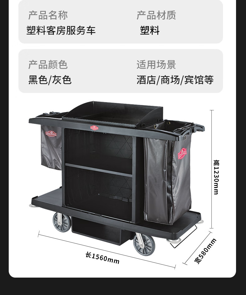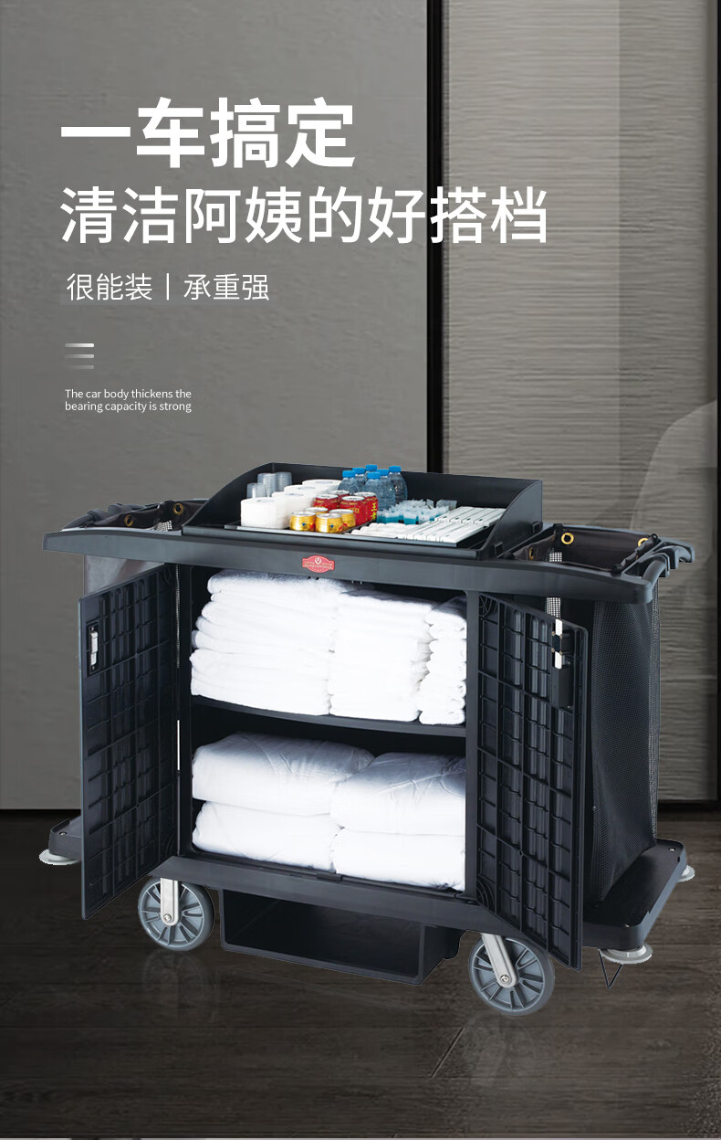 According to legend, hotel linen cart, guest room service cart, multi-functional cleaning cart, utility cart, cleaning tool cart, hotel work linen cart, room entrance cart, single-sided and double-sided linen cart SFC-G01 black, car cover