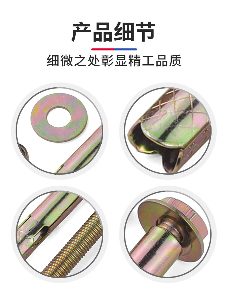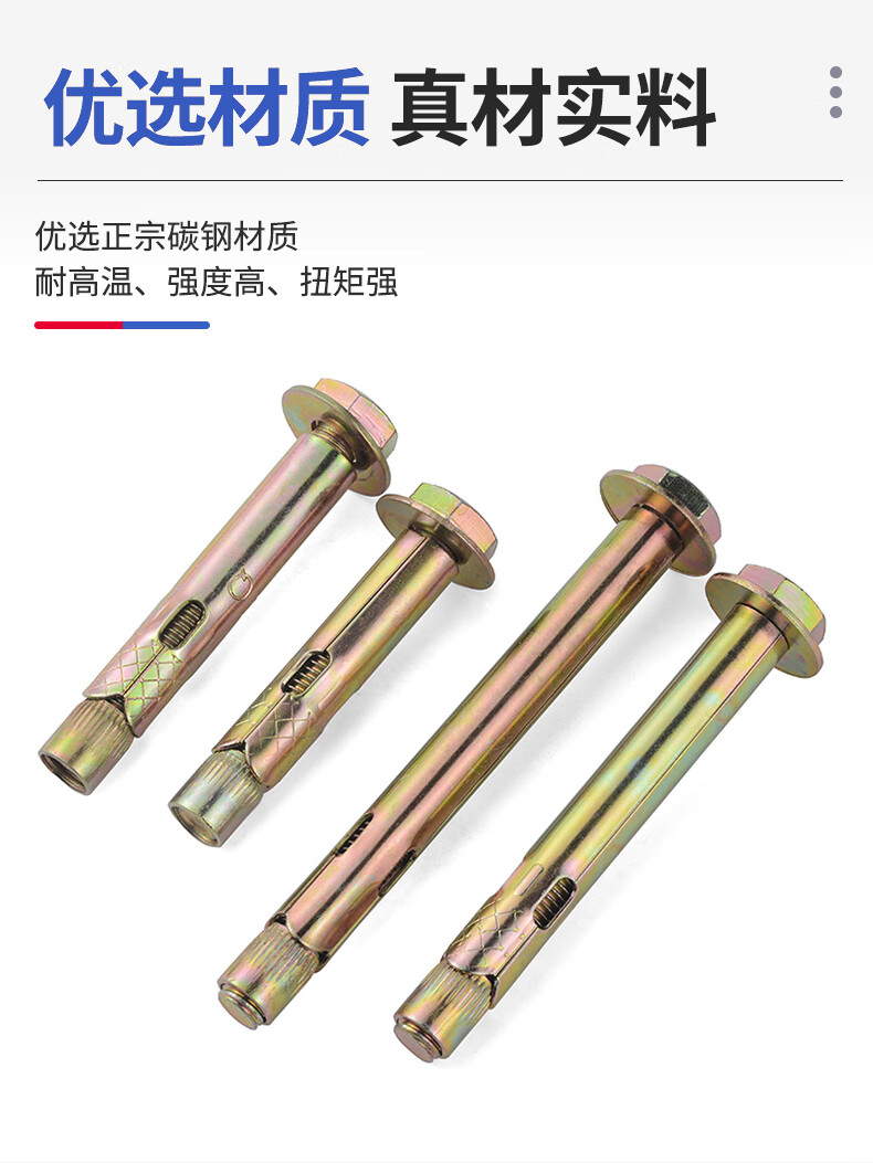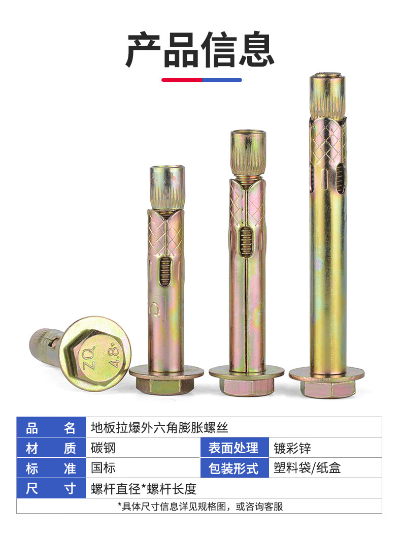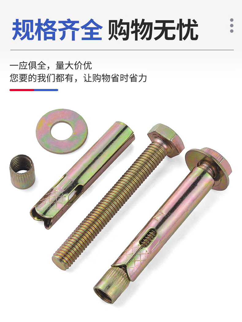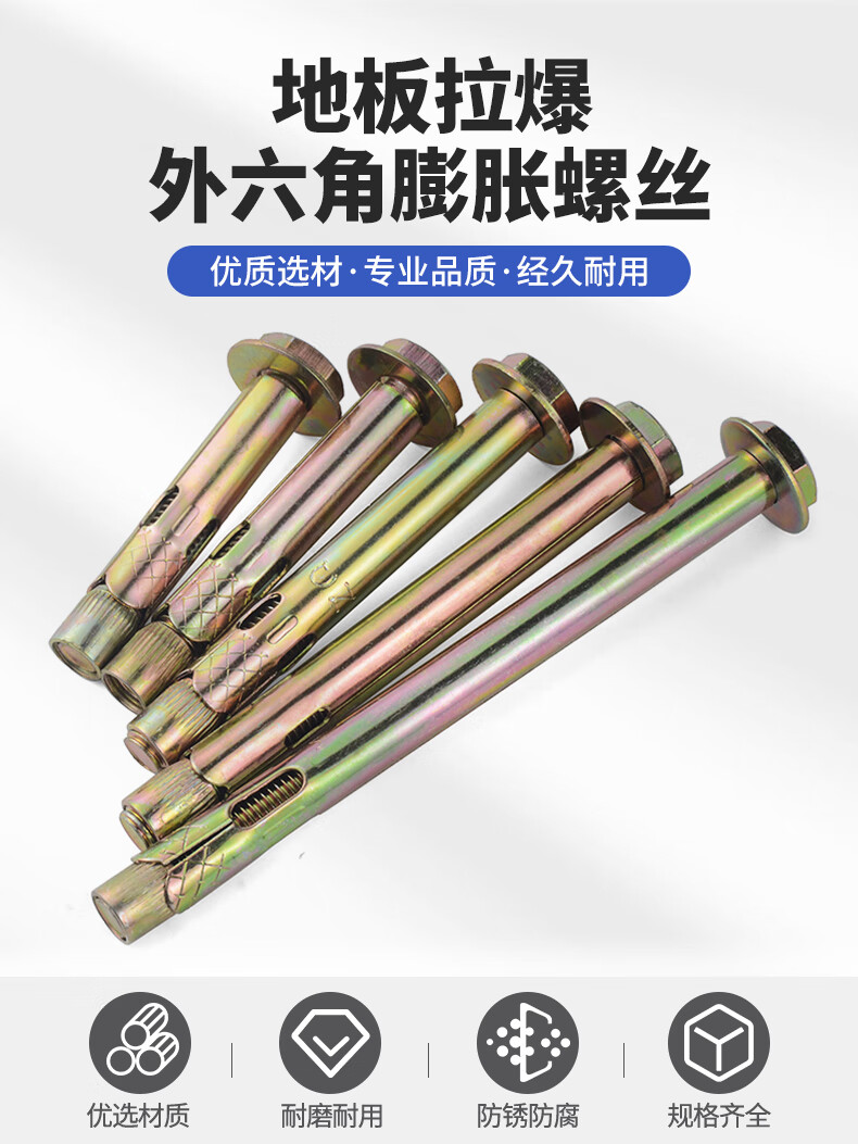 JINGGONG National Standard External Hexagonal Internal Expansion Screws Complete Collection Extended Built-in Explosive Floor Exploding Bolts Boxed M6*50 (100 pieces) 8mm punched